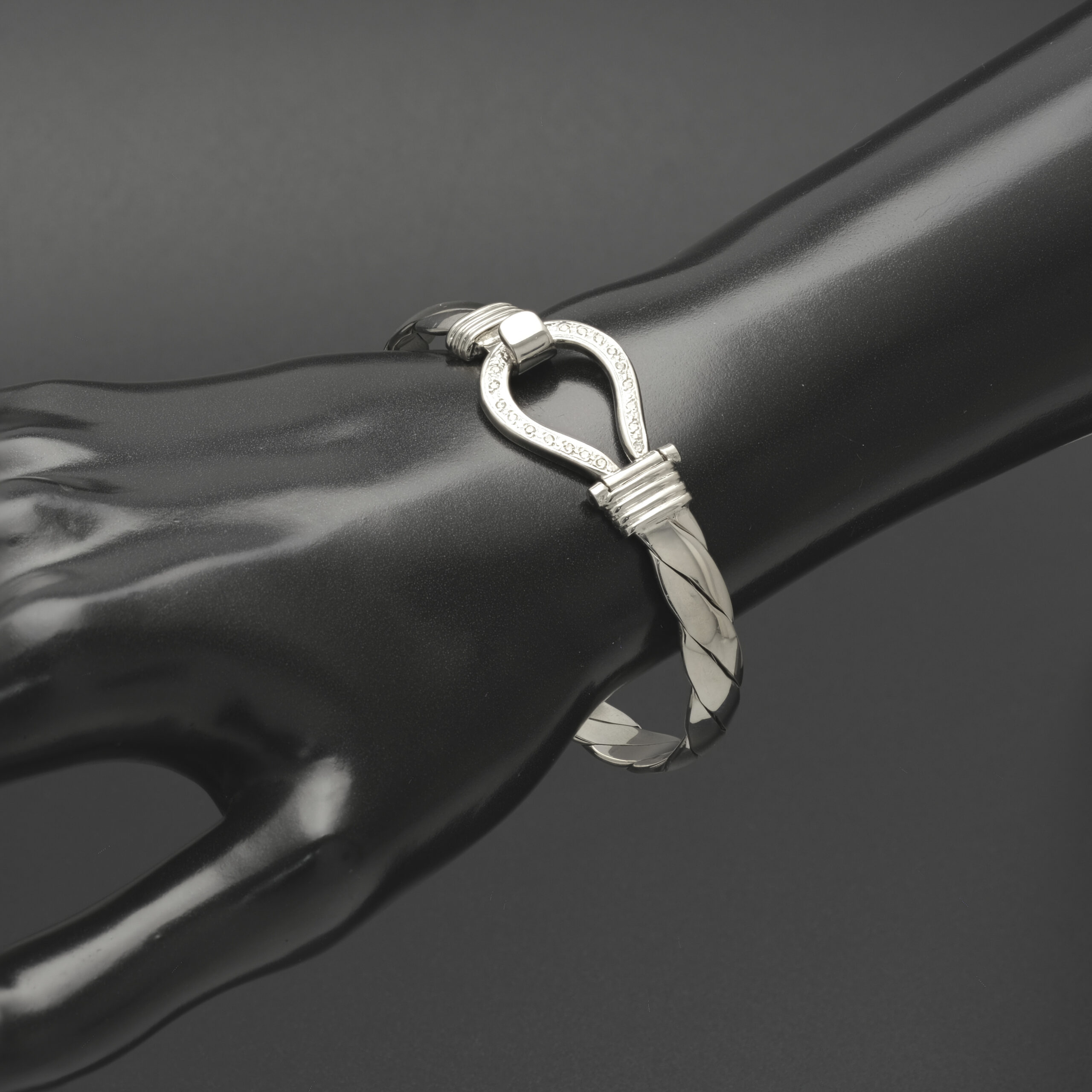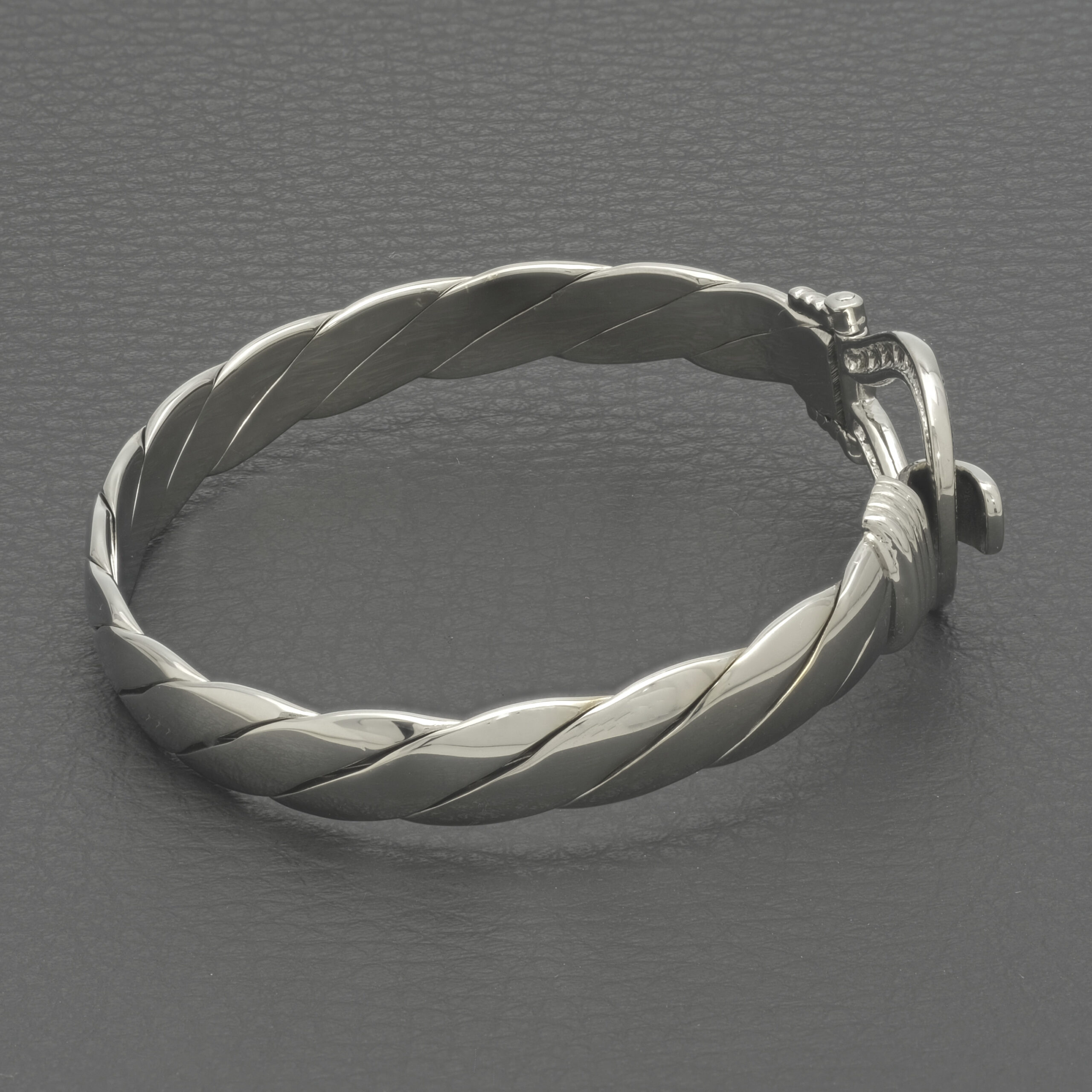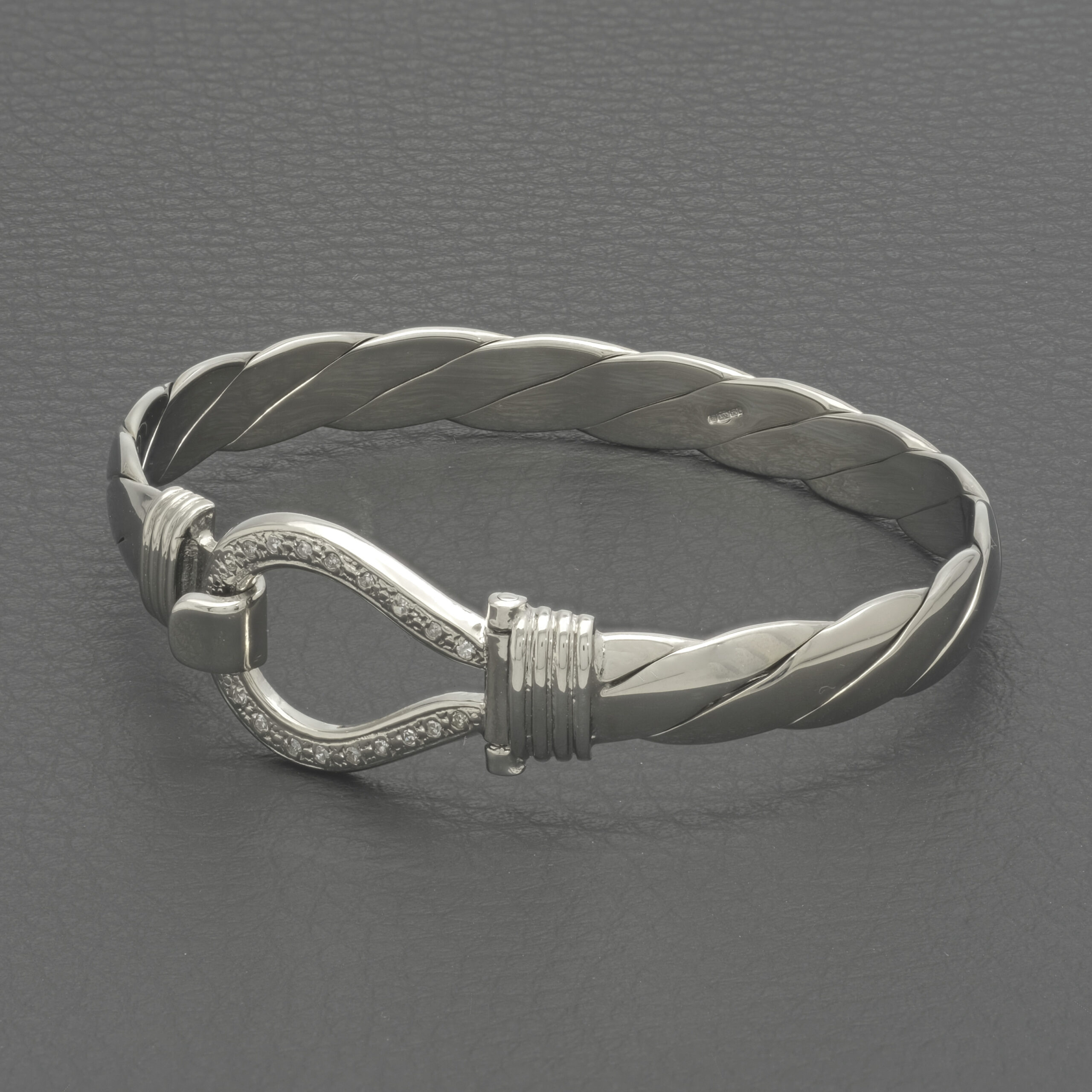 A beautiful solid pre-owned 9ct white gold diamond single loop bangle measuring 60mm in width and an 7mm thickness. This bangle has a weight of 30.2g. Perfect for occasional or everyday wear.