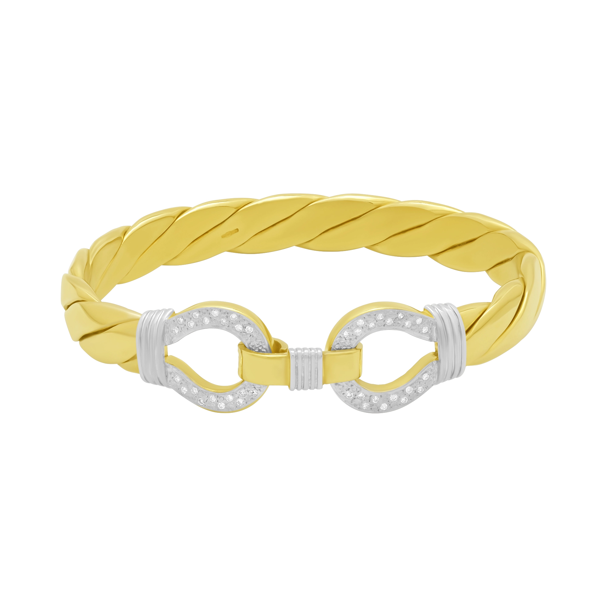 A beautiful solid pre-owned 9ct yellow 0.20ct gold diamond loop bangle measuring 65mm in width and an 10mm thickness. This bangle has a weight of 61.4g. Perfect for occasional or everyday wear.
