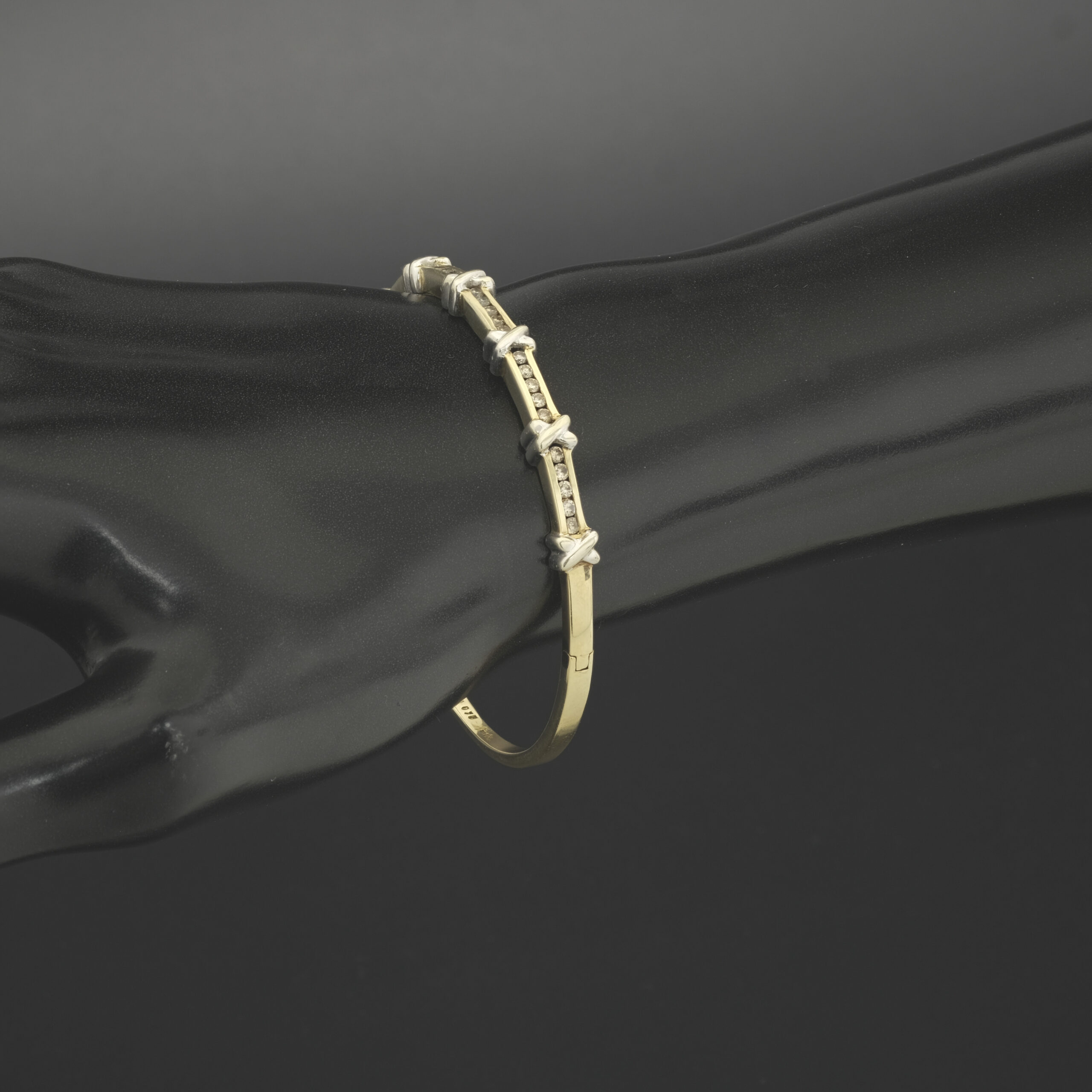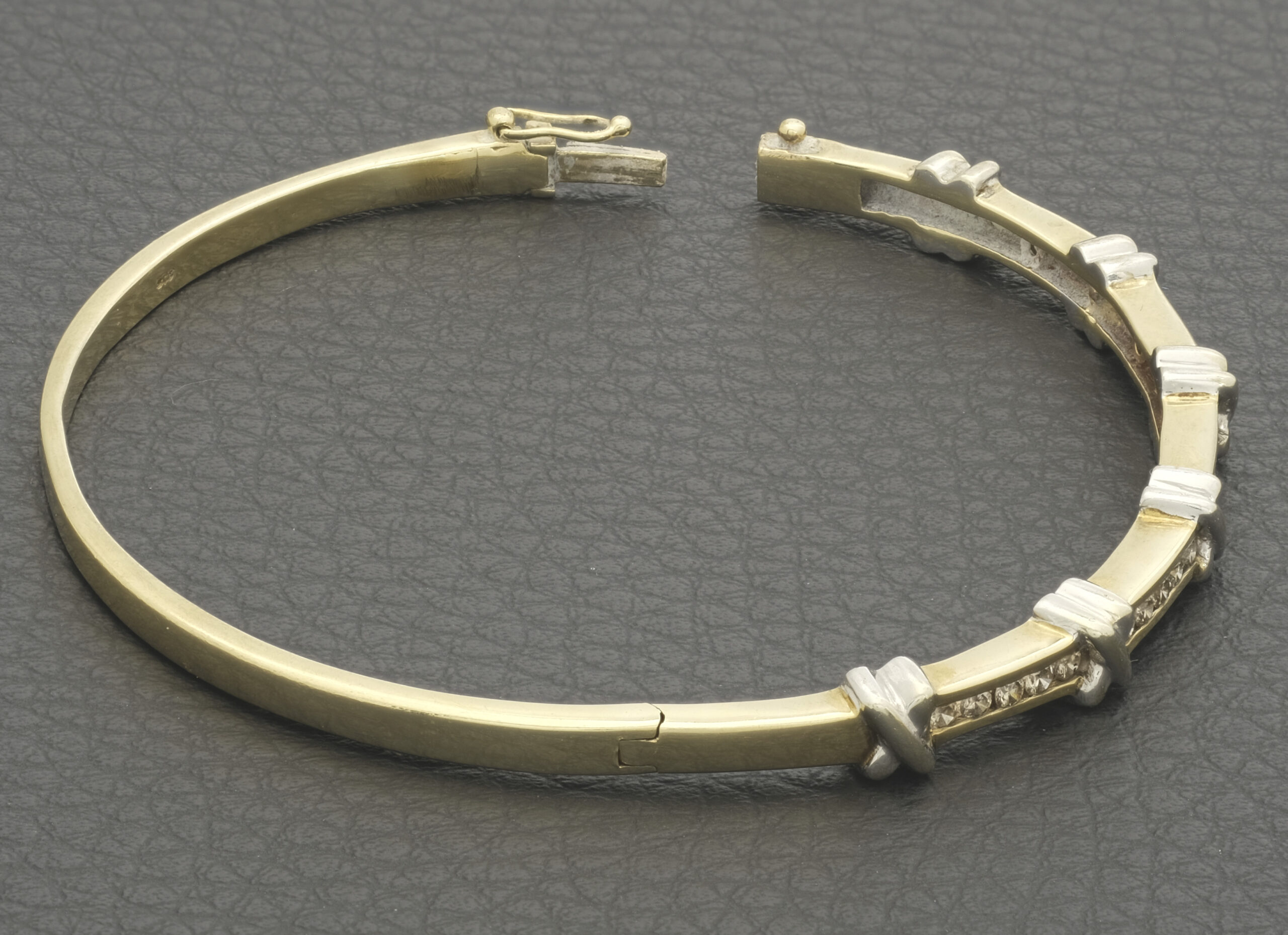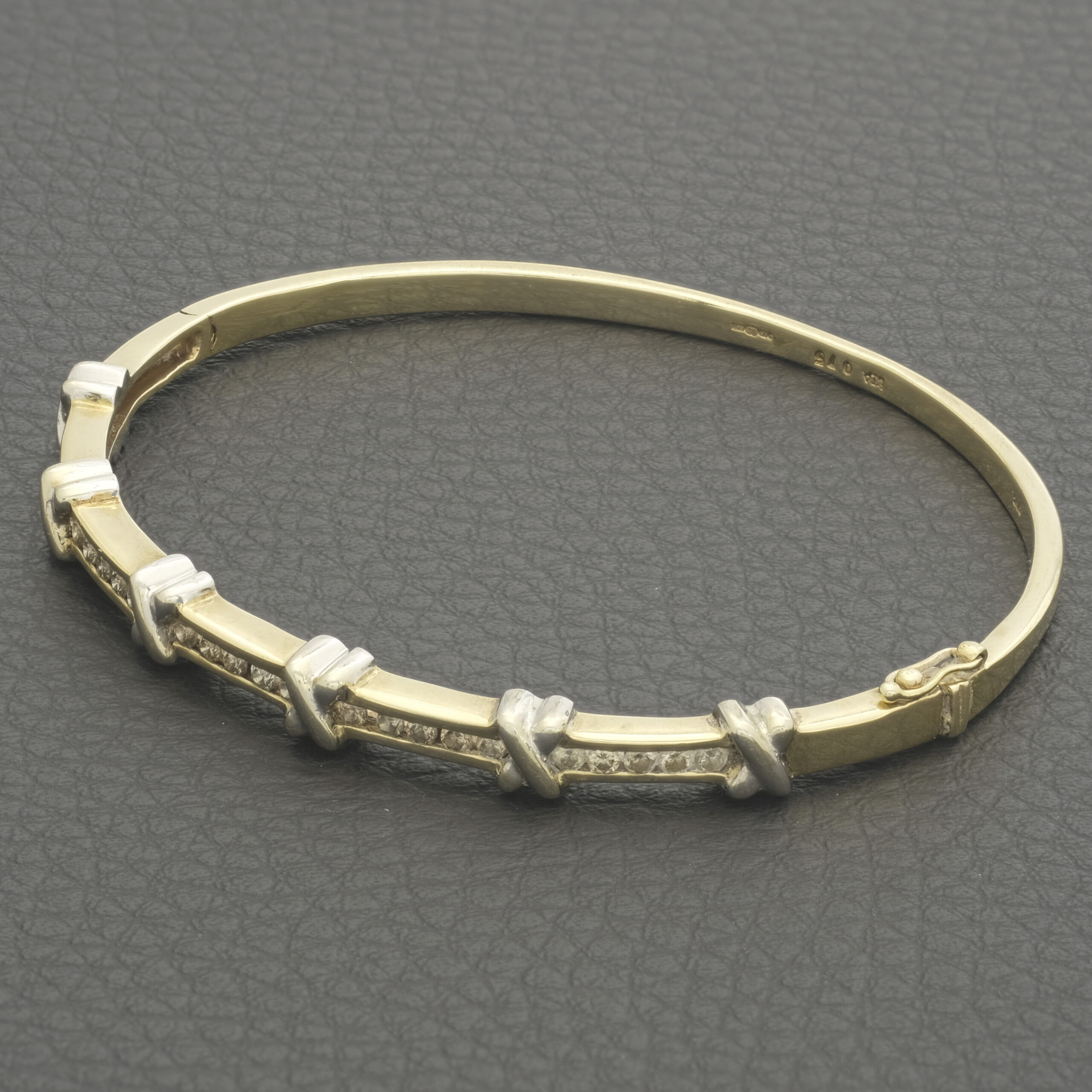 This pre-owned gold diamond bangle is the epitome of timeless elegance and sophistication. Crafted from 9ct yellow gold, this exquisite piece exudes warmth and luxury. The bangle is adorned with dazzling diamonds, meticulously set to catch the light from every angle, creating a mesmerizing sparkle. Its sleek and polished design makes it versatile enough to complement both everyday outfits and formal attire. These diamonds have a total carat weight of 0.75ct, with a colour of J-K and a clarity of SI1-SI2. This bangle has a internal width of 57mm and a thickness of 3.3mm. Whether worn solo for a minimalist statement or stacked with other bracelets for a layered look, this yellow gold diamond bangle is a stunning accessory that adds a touch of glamour to any ensemble. Perfect as a gift or a personal indulgence, it’s a true symbol of refined style and enduring beauty.