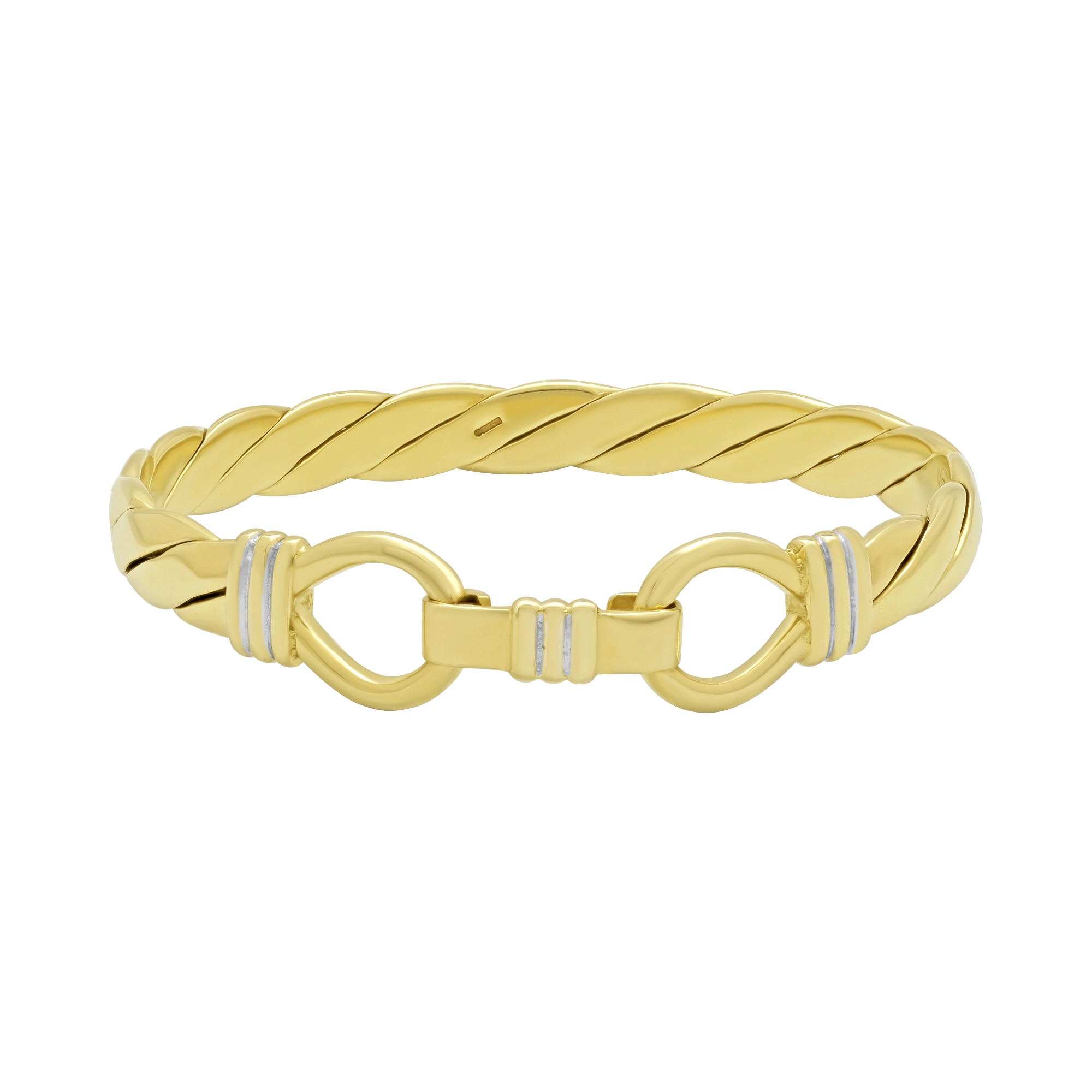 A beautiful solid pre-owned 9ct yellow gold double loop bangle measuring 60mm in width and an 7.5mm thickness. This bangle has a weight of 31.1g. Perfect for occasional or everyday wear.