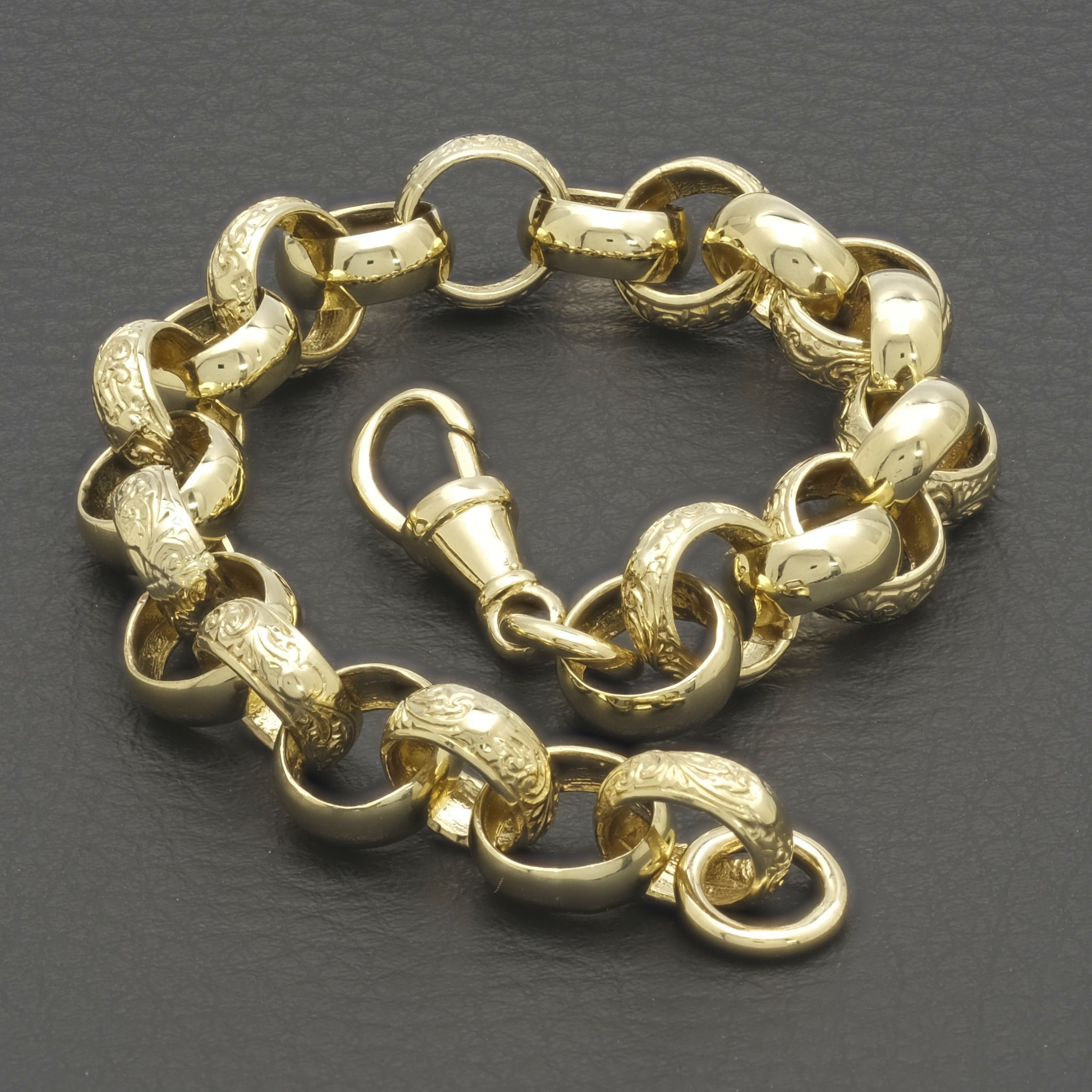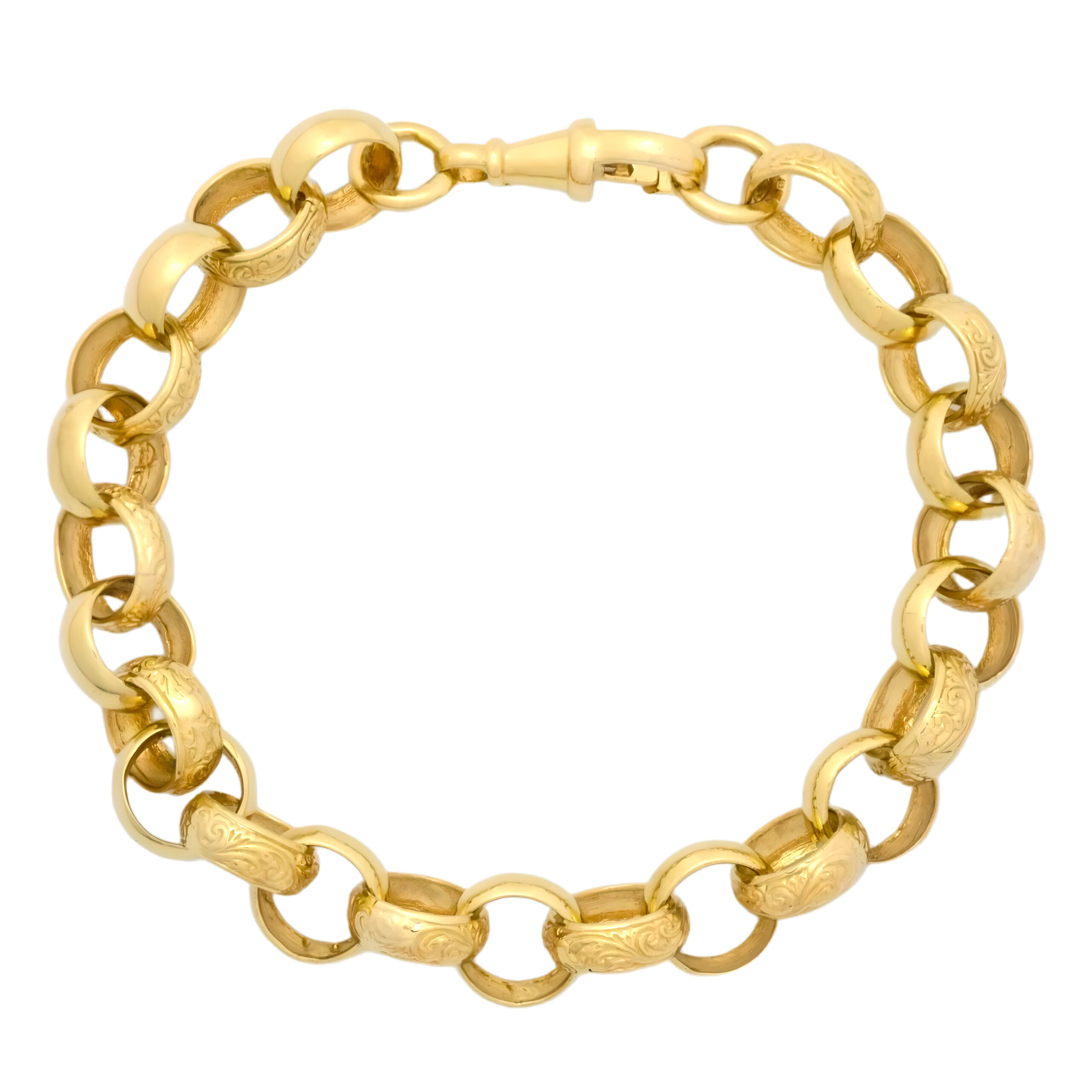 Made from solid 9ct yellow gold, this pre owned belcher is perfect for occasional or everyday wear. This 8.5 inch belcher features 10.5mm patterned and plain alternating links giving a classic look. Fastening with an Albert clasp this is a perfect gift.