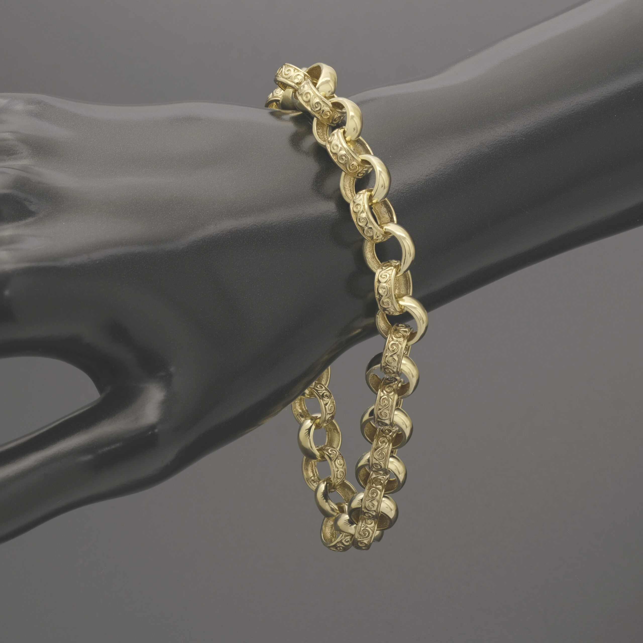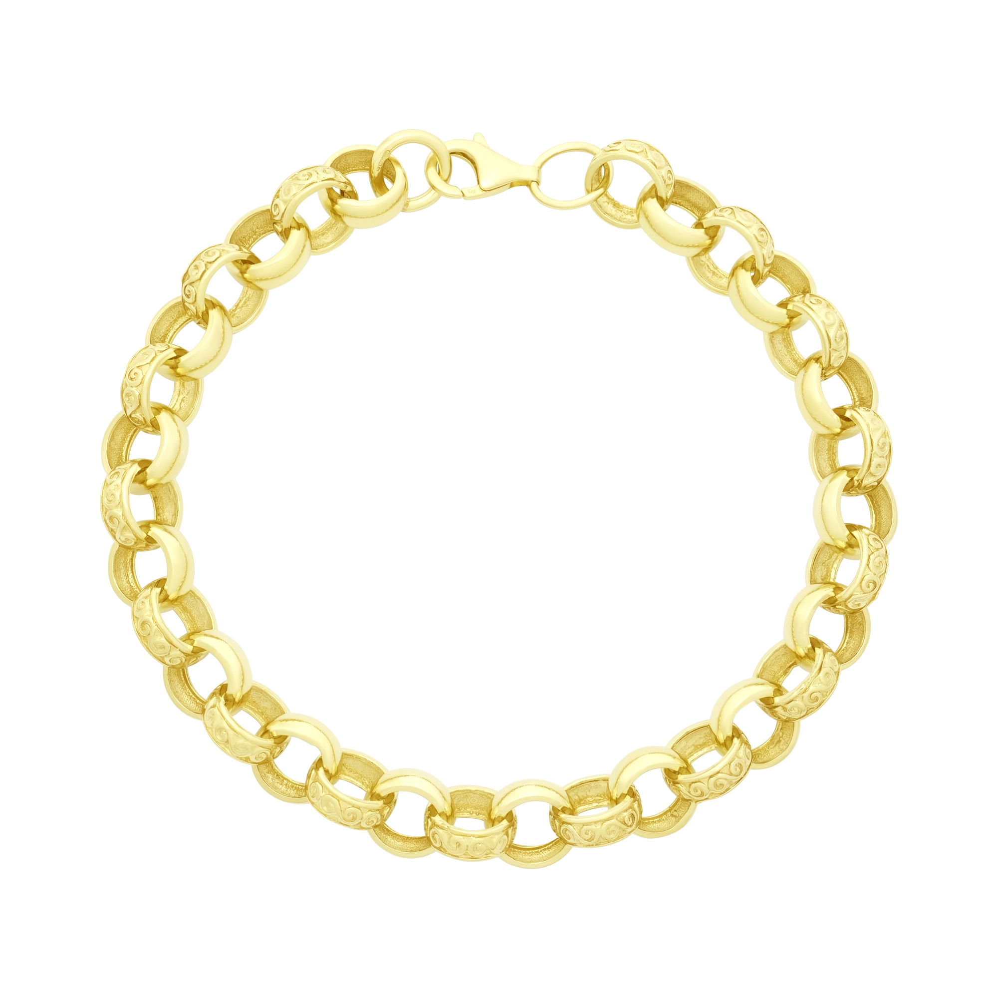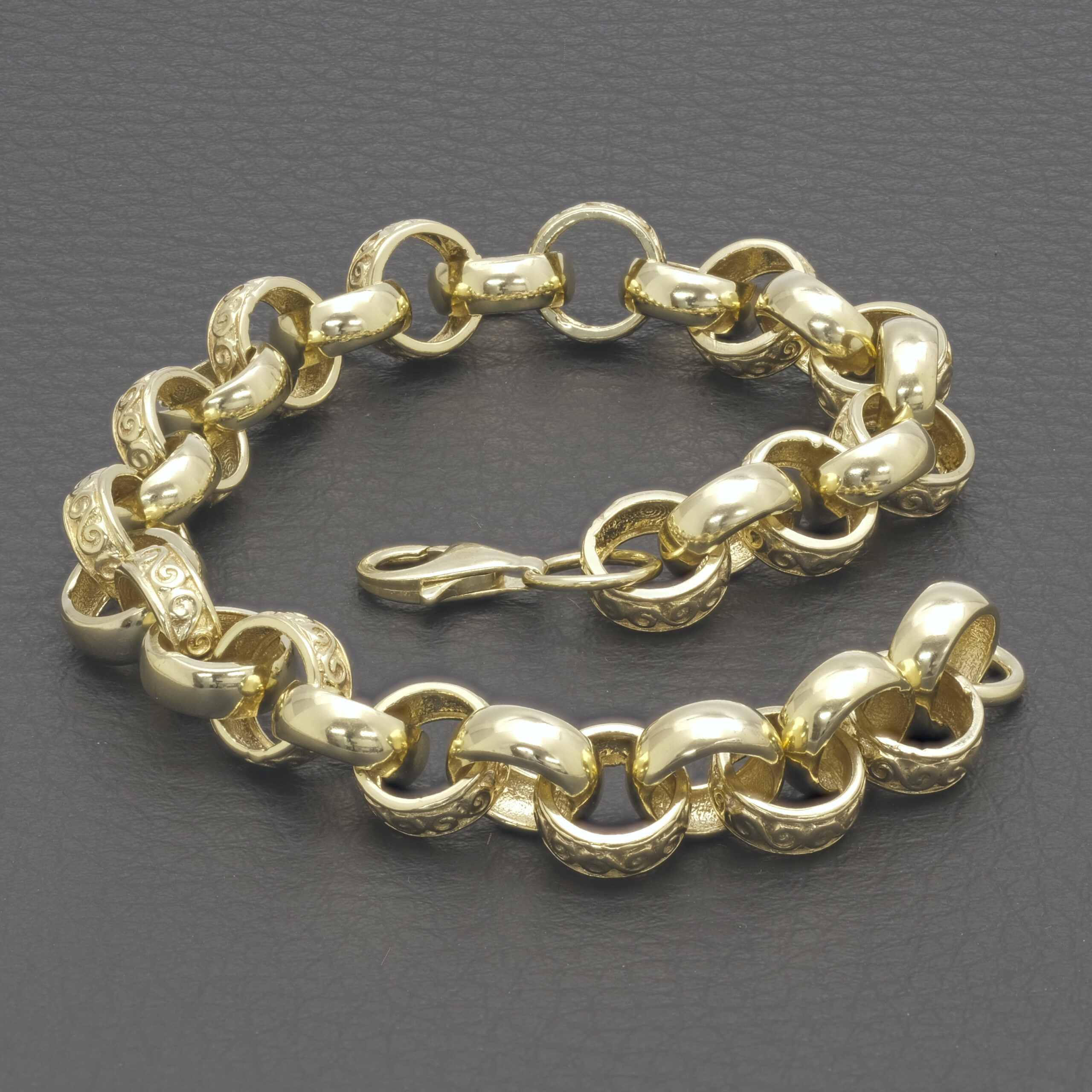Made from solid 9ct yellow gold, this pre owned belcher is perfect for occasional or everyday wear. This 9-inch belcher features 10mm patterned and plain alternating links giving a classic look. Fastening with an lobster claw clasp this is a perfect gift.