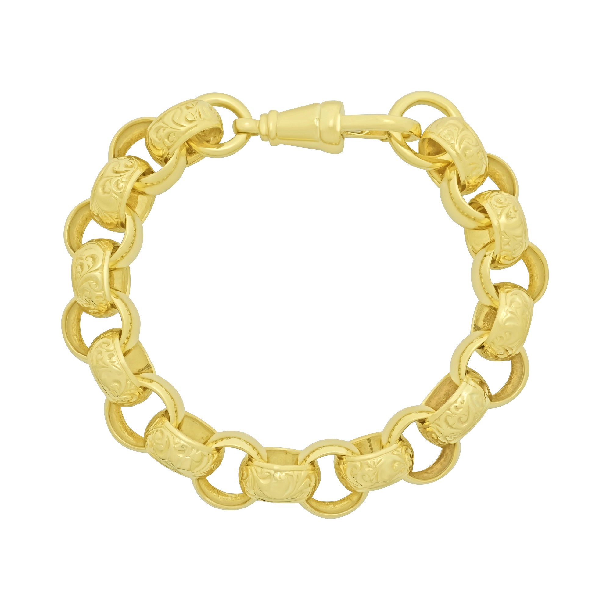 Made from solid 9ct yellow gold, this pre owned belcher is perfect for occasional or everyday wear. This 9 inch belcher features 13.5mm patterned and plain alternating links giving a classic look. Fastening with an albert clasp, this is a perfect gift.