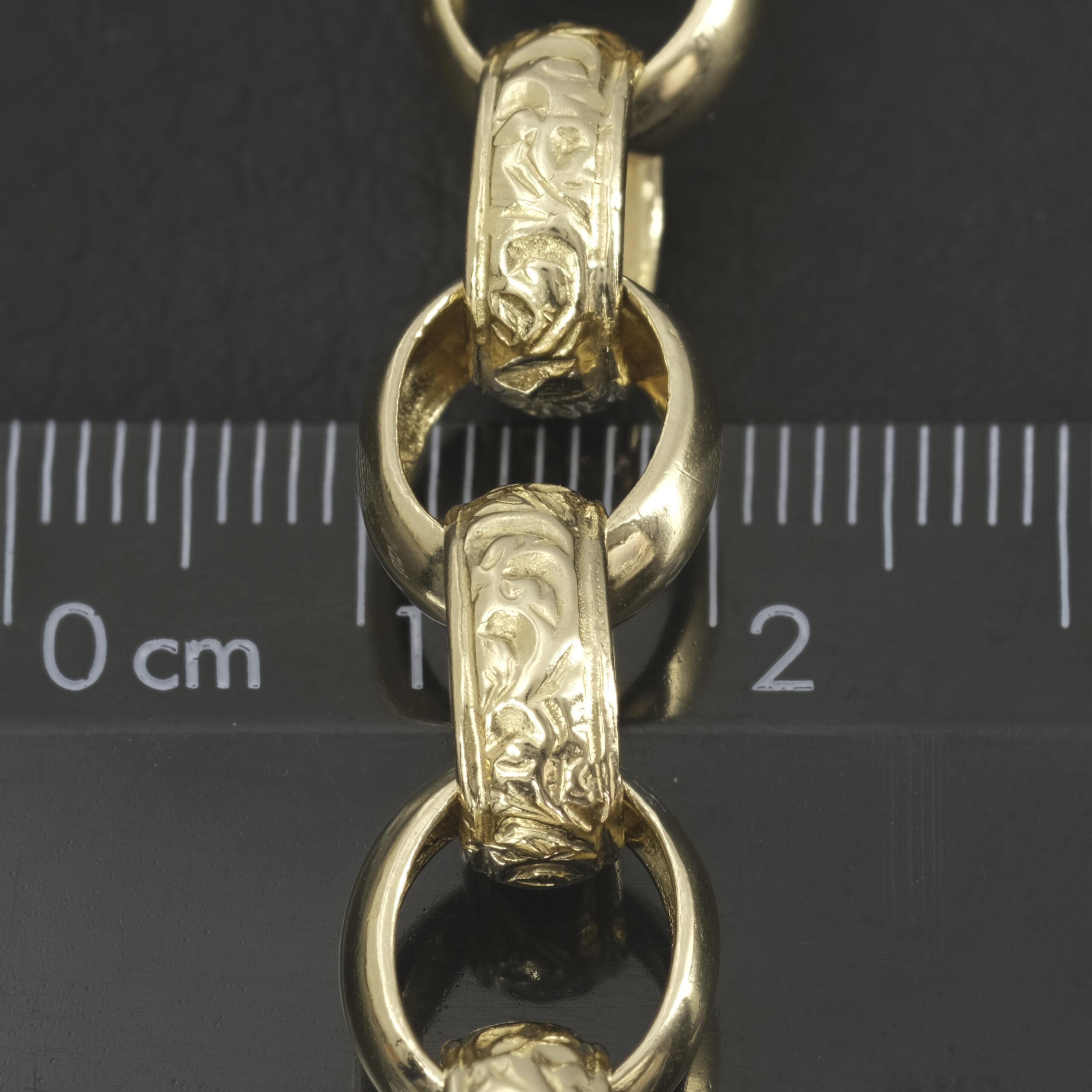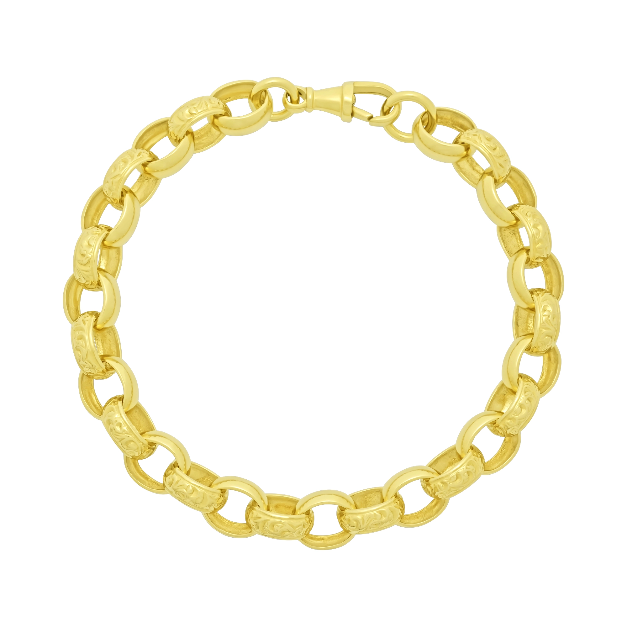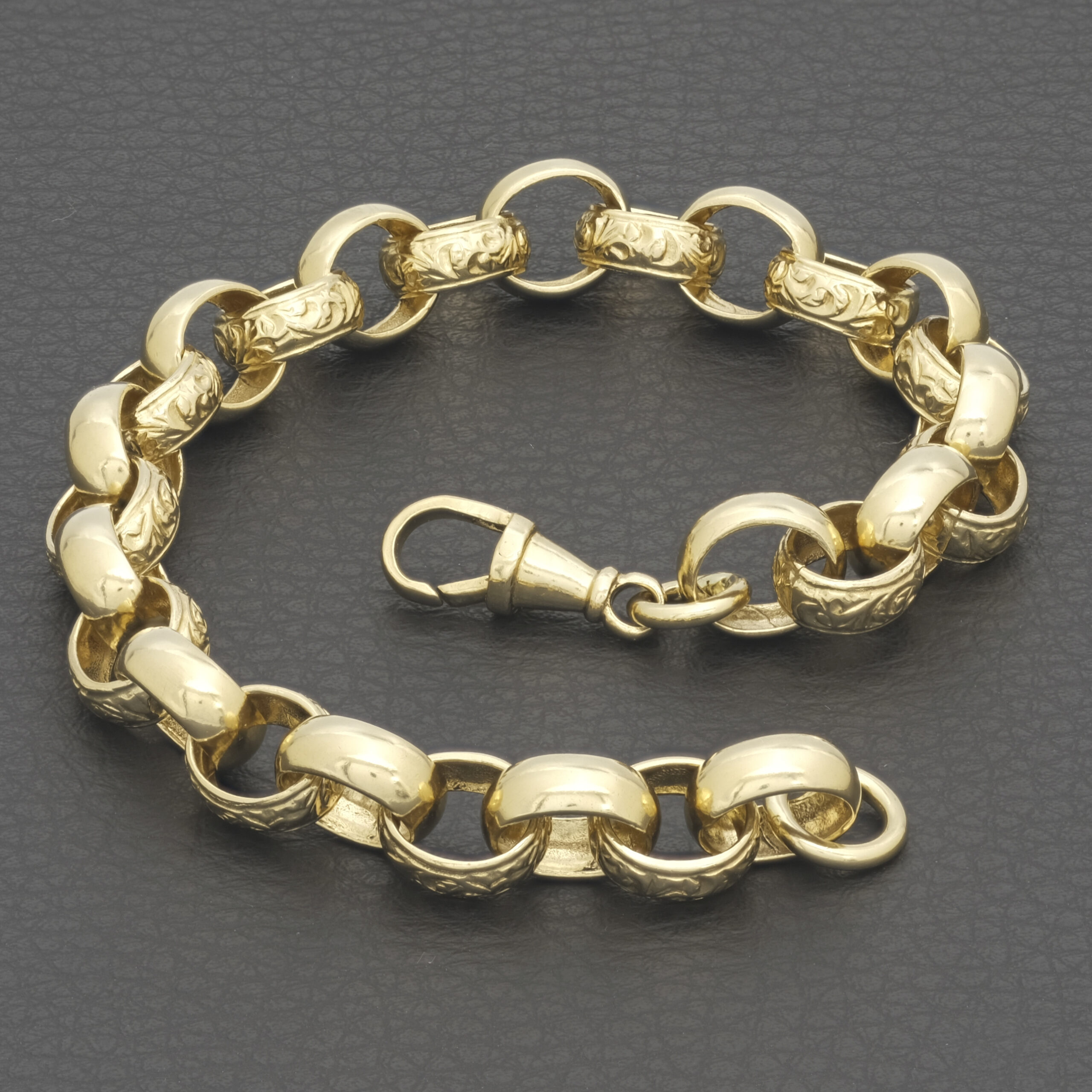 Made from solid 9ct yellow gold, this pre owned belcher is perfect for occasional or everyday wear. This 9.5-inch belcher features 10.5mm patterned and plain alternating links giving a classic look. Fastening with an albert clasp, this is a perfect gift.
