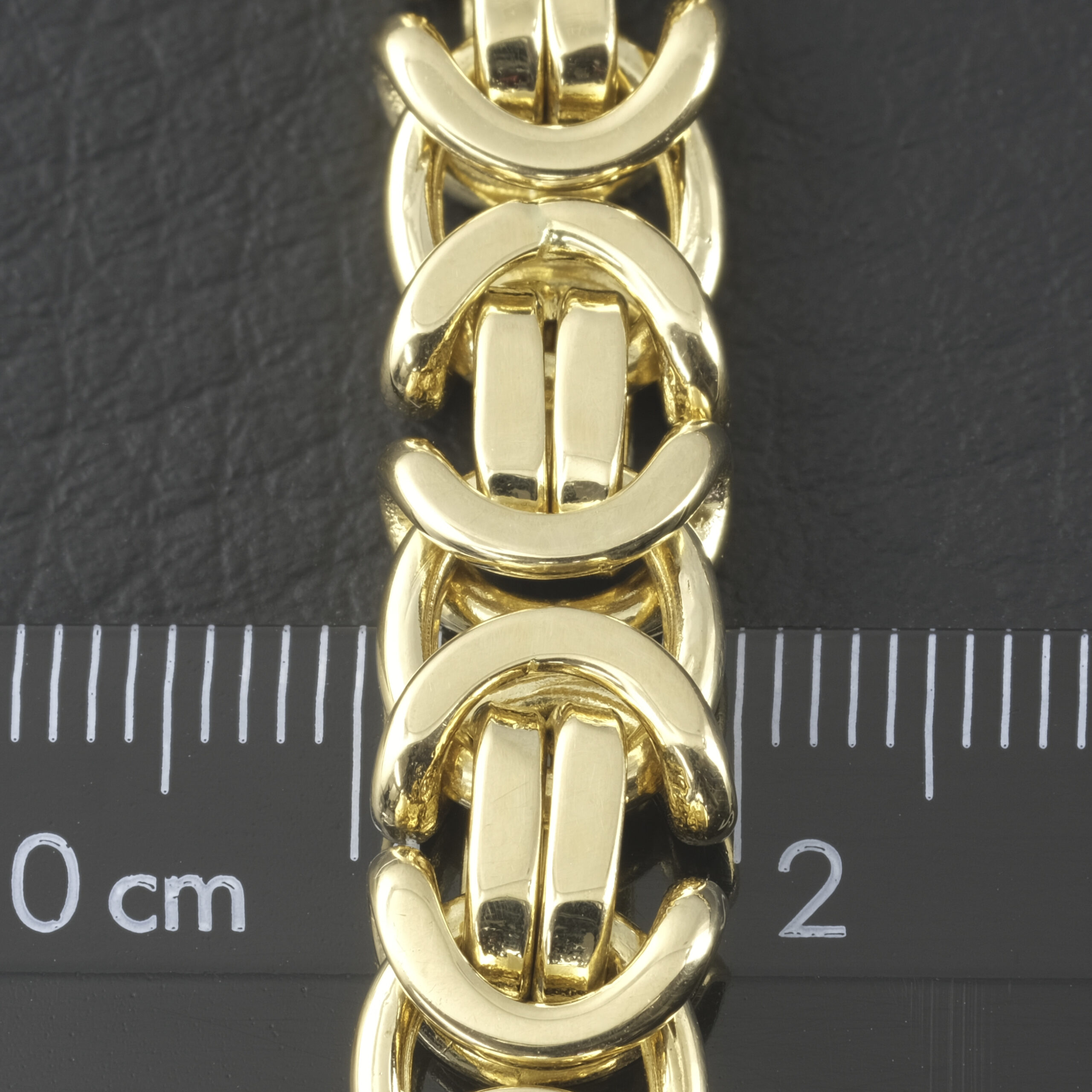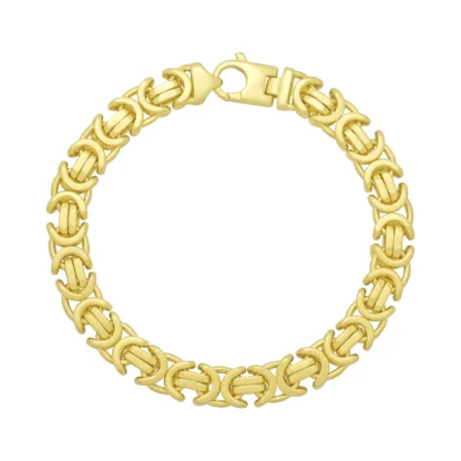 A modern-day European classic design the byzantine is unique and classy. This solid 18ct yellow gold pre-owned polished byzantine bracelet is great for everyday wear. This byzantine has a length of 9 inches and a width of 9.5mm fastening with a lobster claw clasp.