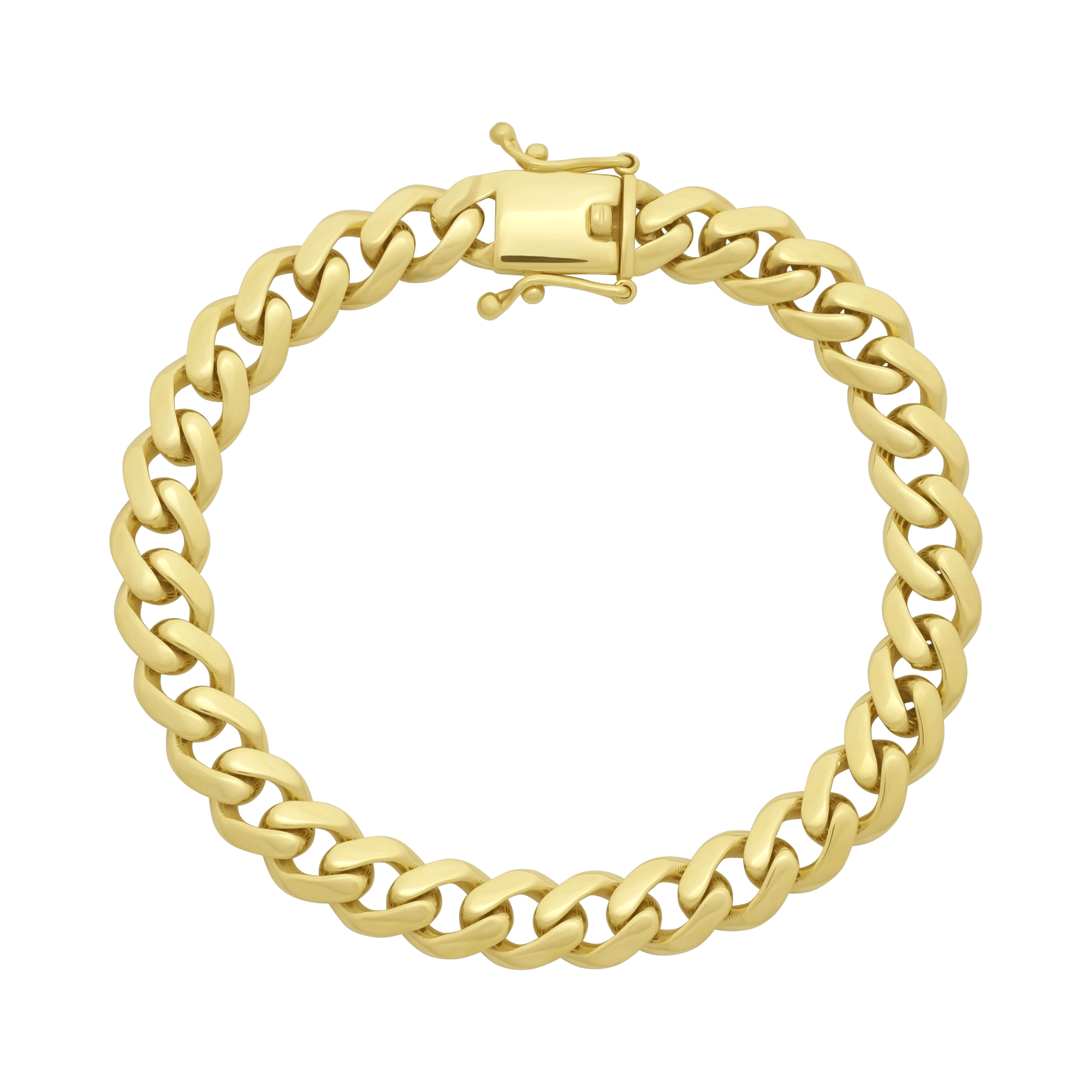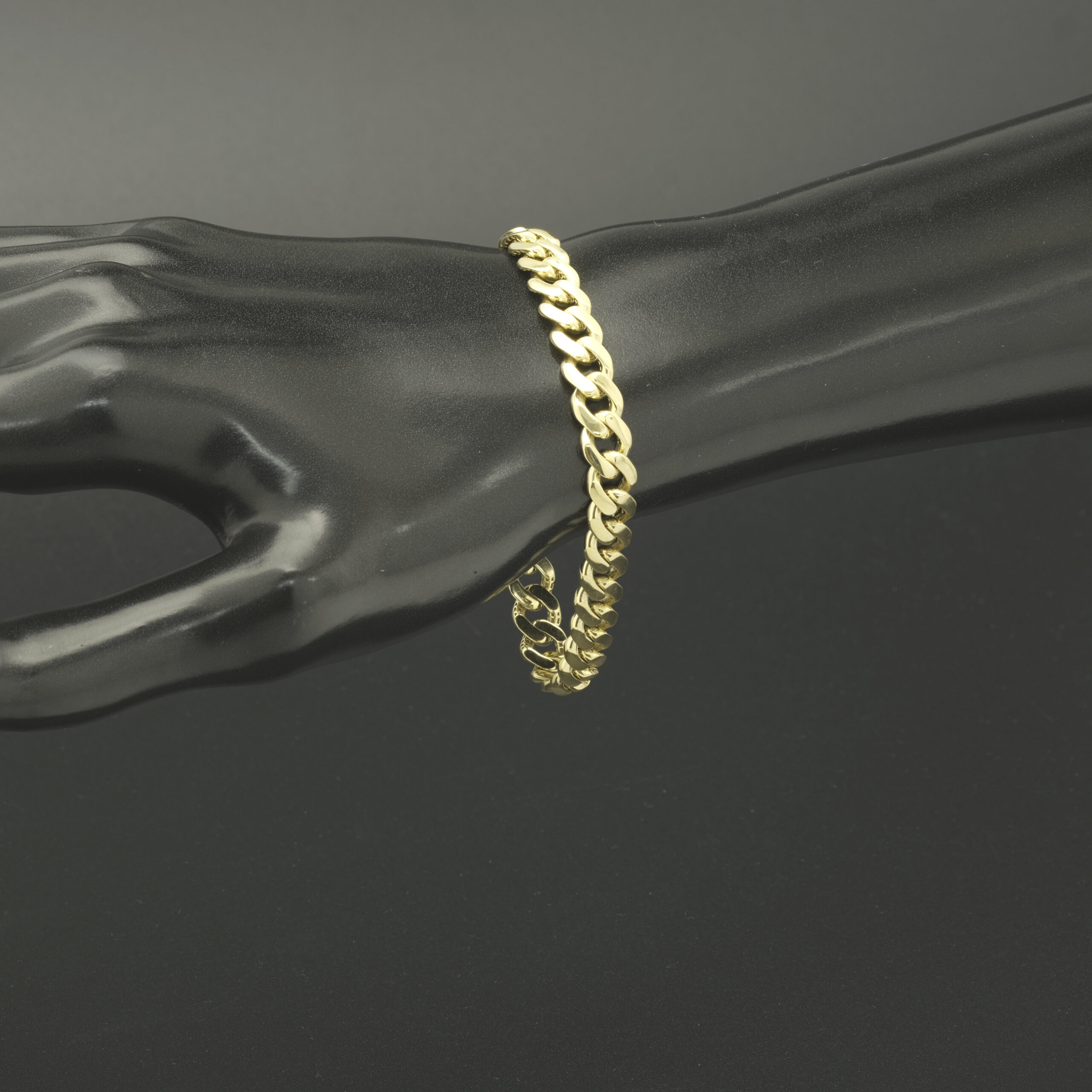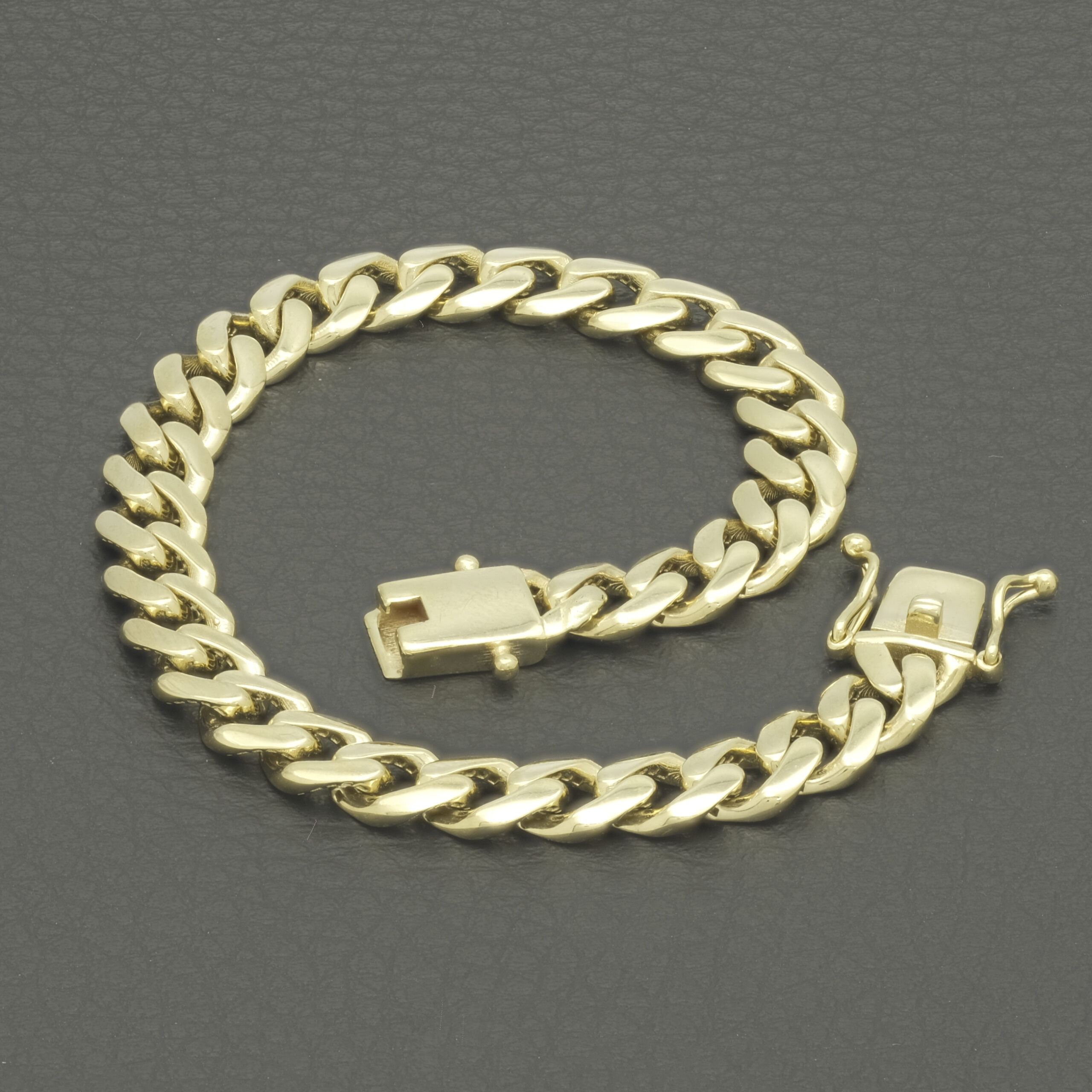 This hollow pre-owned, cuban bracelet is made from 9ct yellow gold and is perfect for occasional or everyday wear. This highly-polished bracelet features 7.5mm links and measures 7 inches in length, securing with a box clasp with safety catches on both sides. This bracelet would make a great accessory for all occasions.