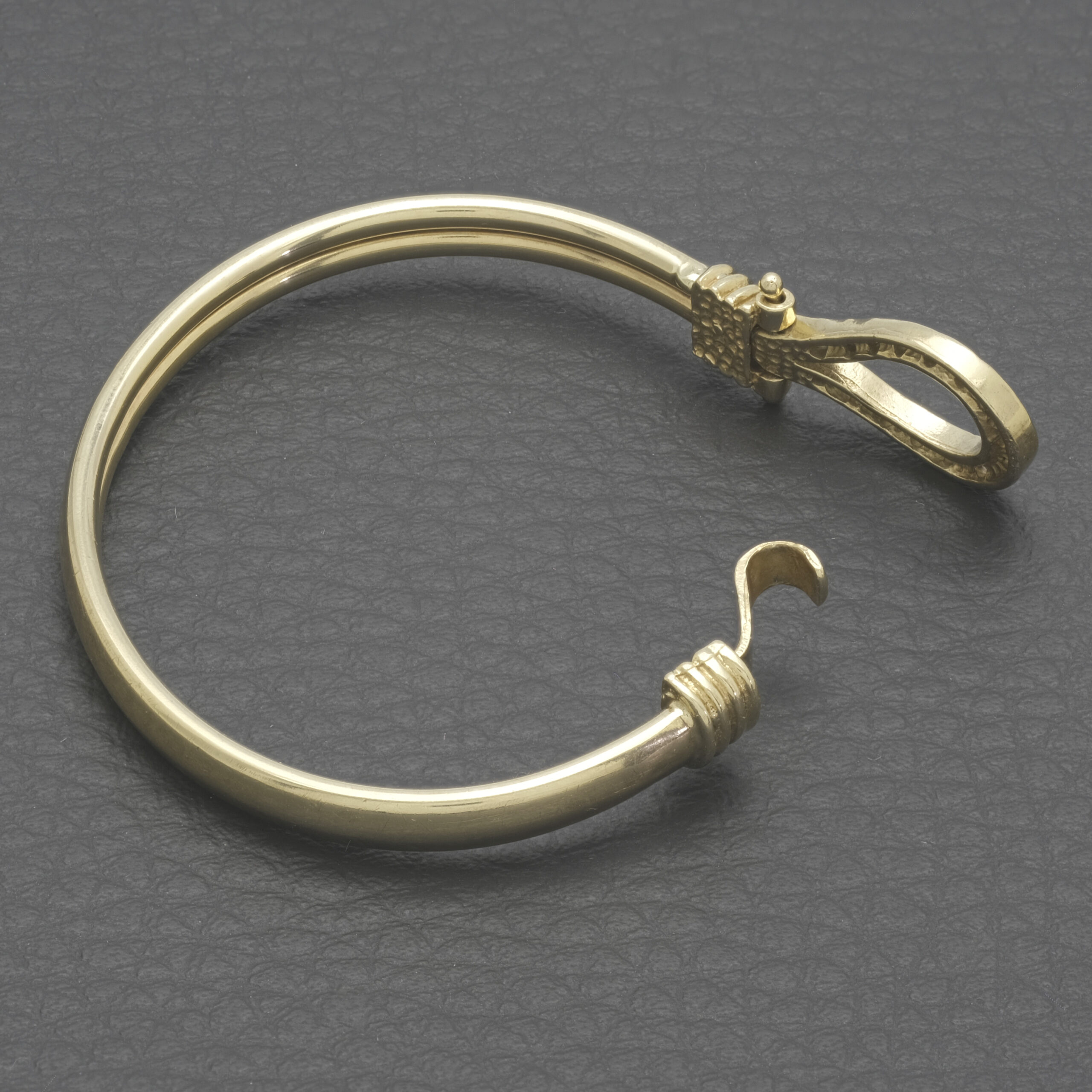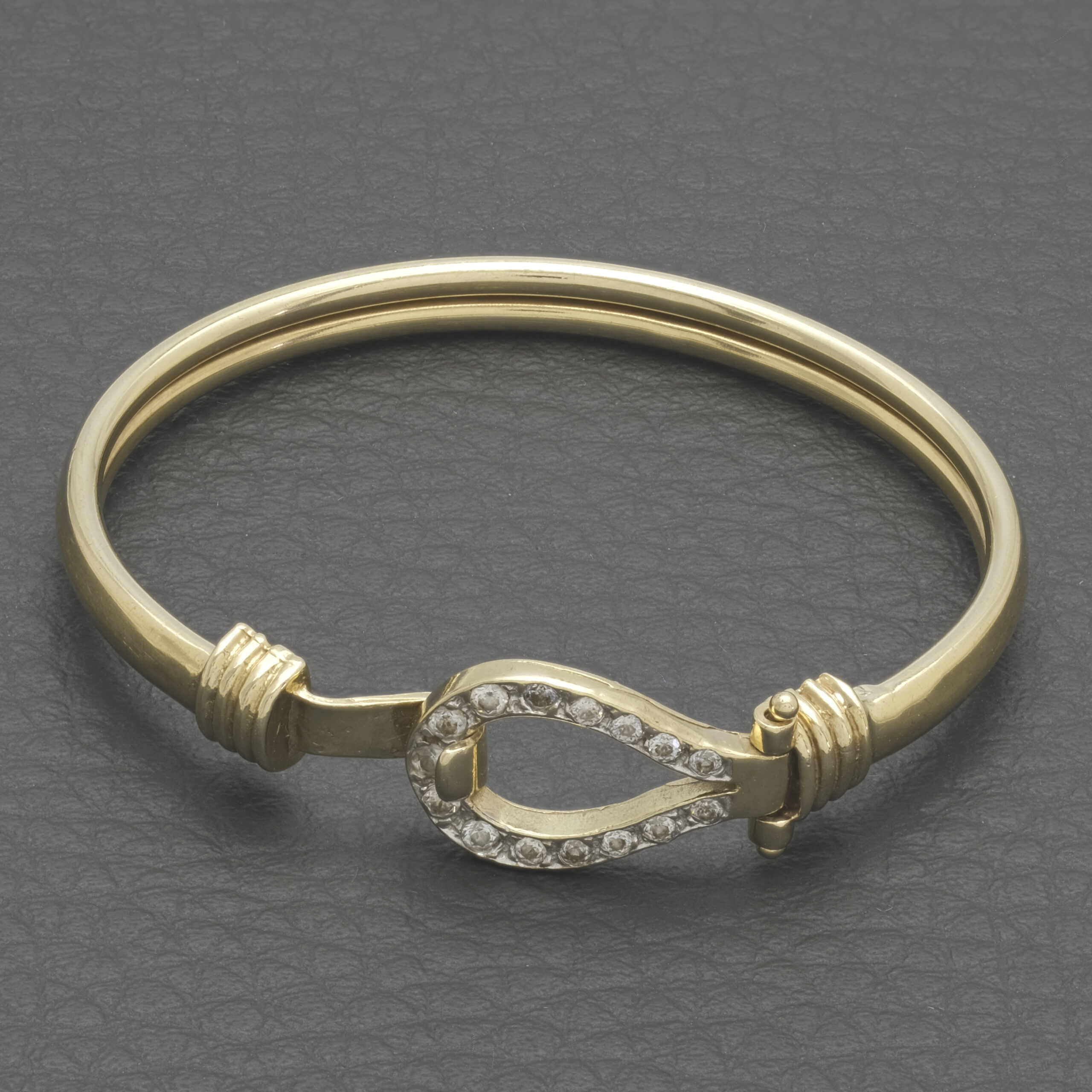 A beautiful semi-solid pre-owned children’s 9ct yellow gold gemstone loop bangle measuring 41.5mm in width and and 4mm thickness. This bangle has a weight of 6.7g. Perfect for occasional or everyday wear.