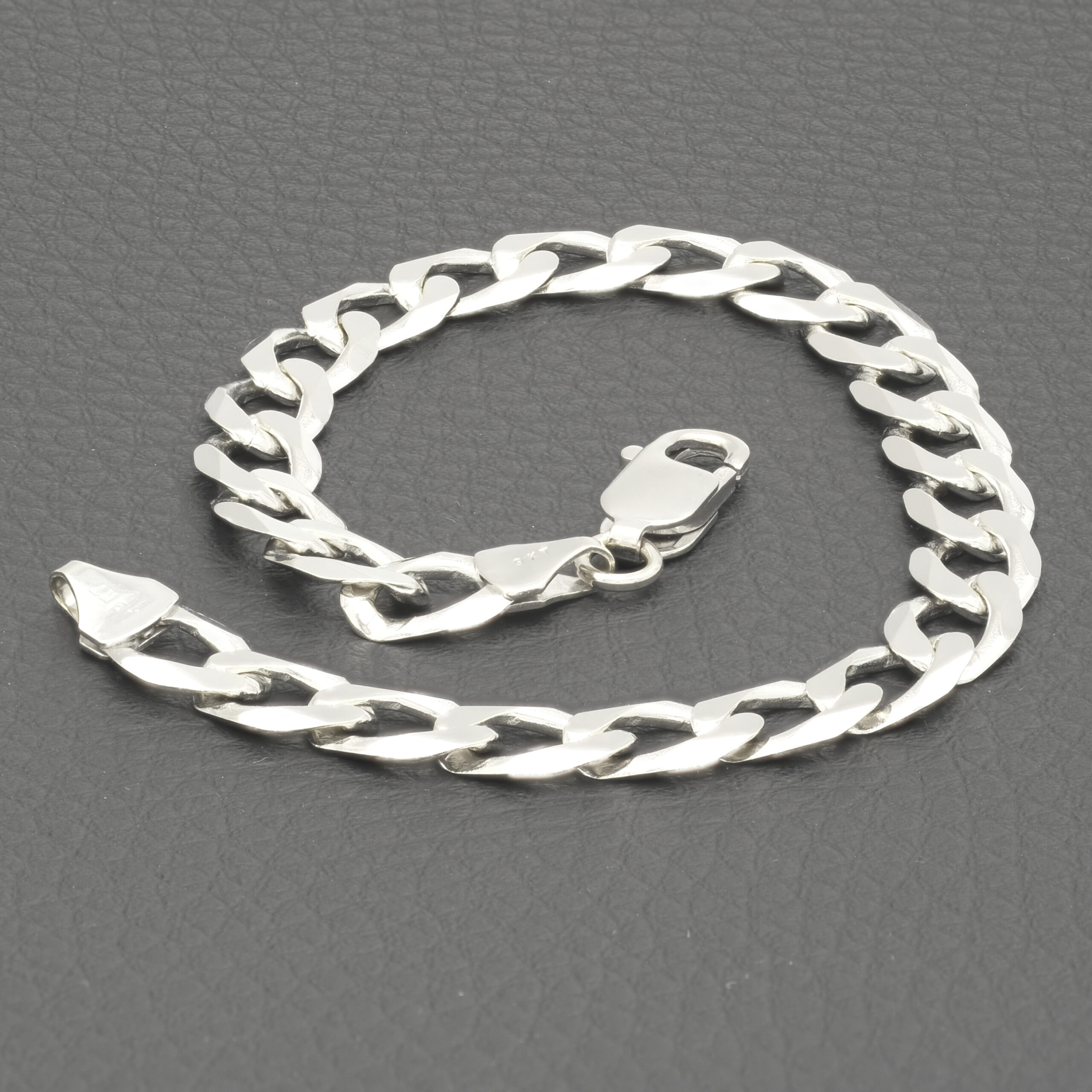 This stunning highly polished pre-owned 9ct solid white gold curb bracelet is sure to get you noticed. Measuring 8.5 inches in length and 8mm wide, this Curb fastens with a lobster claw clasp for comfort and security.