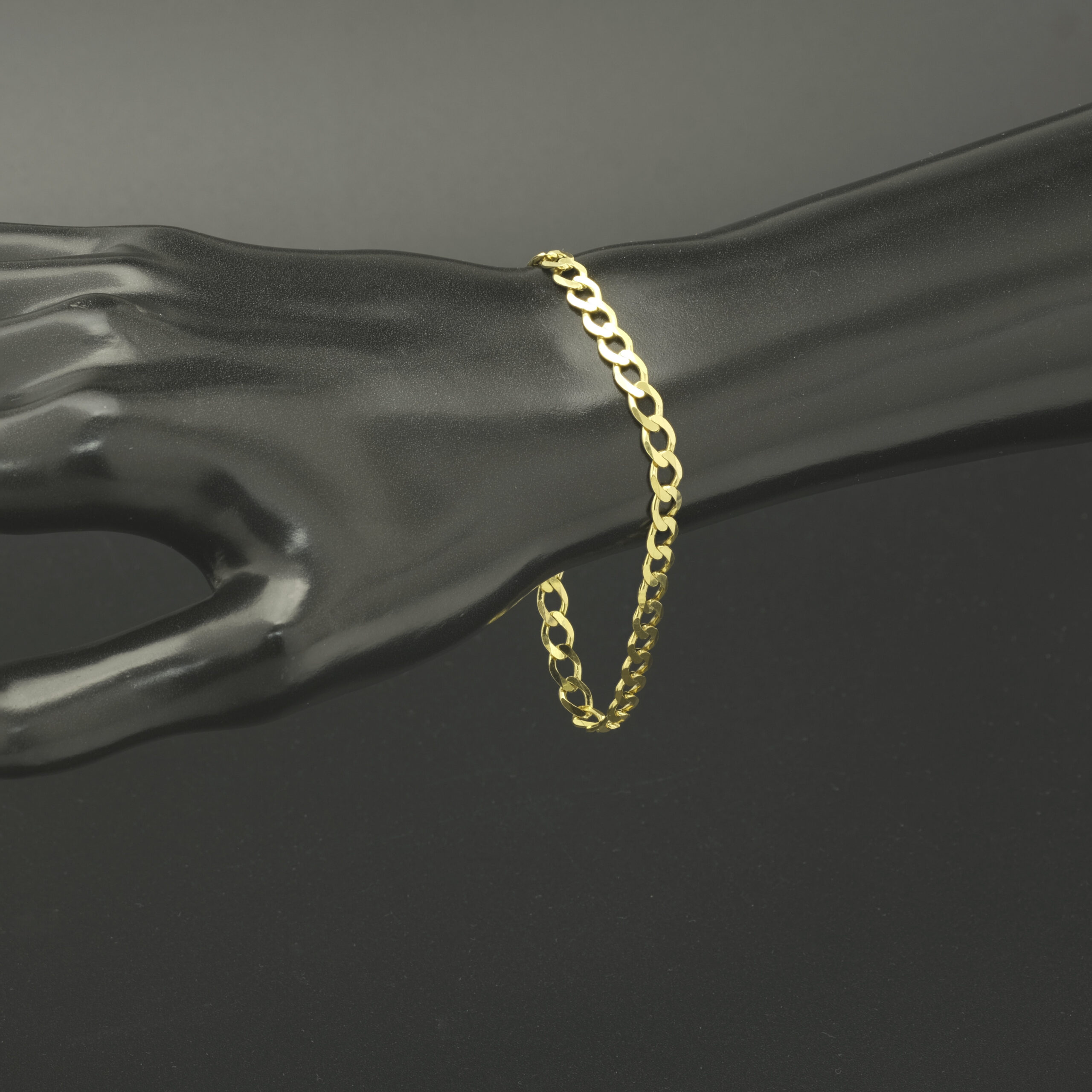 This stunning highly polished pre-owned 9ct solid yellow gold Curb bracelet is sure to get you noticed. Measuring 7.5 inches in length and 5mm wide, this Curb fastens with a lobster claw clasp for comfort and security.