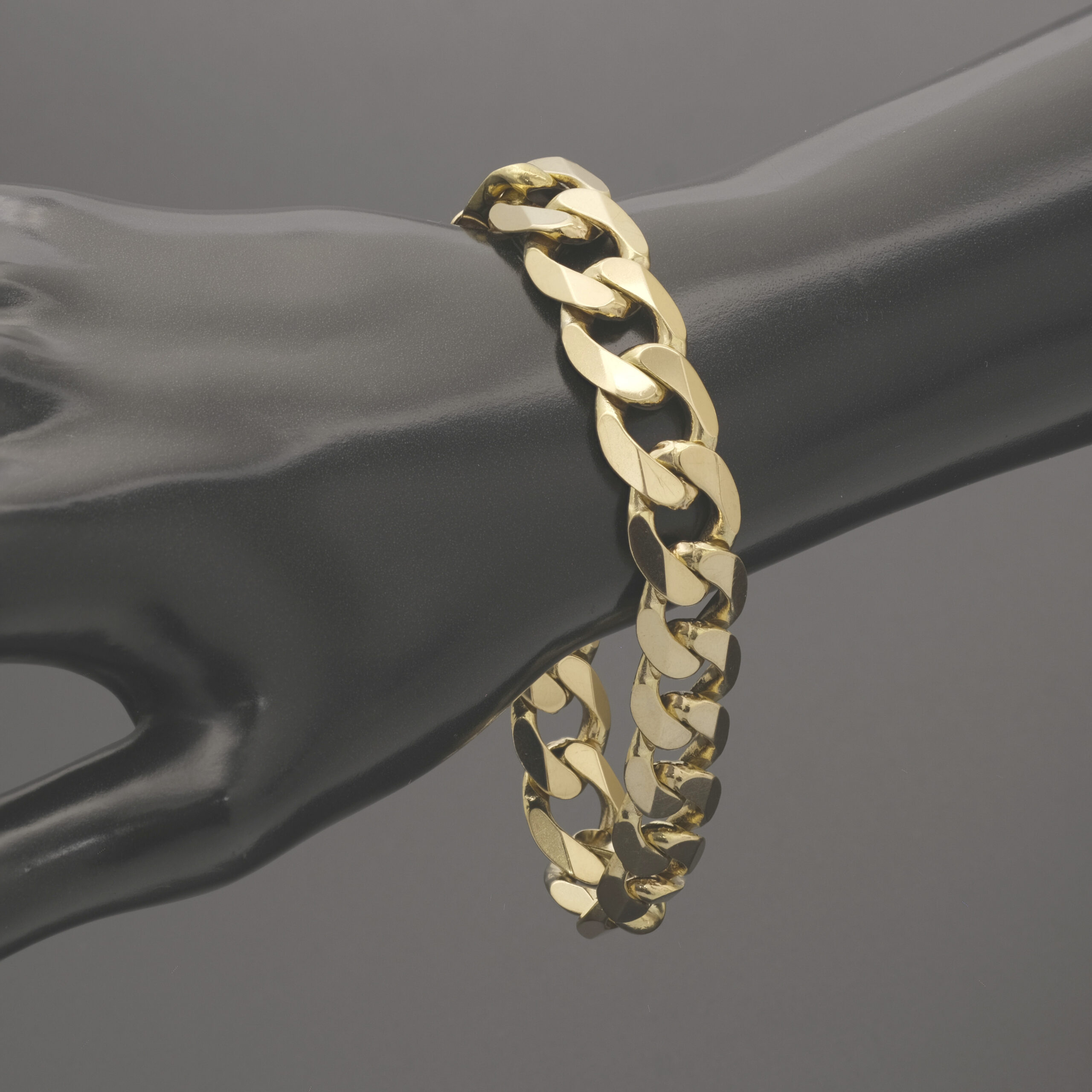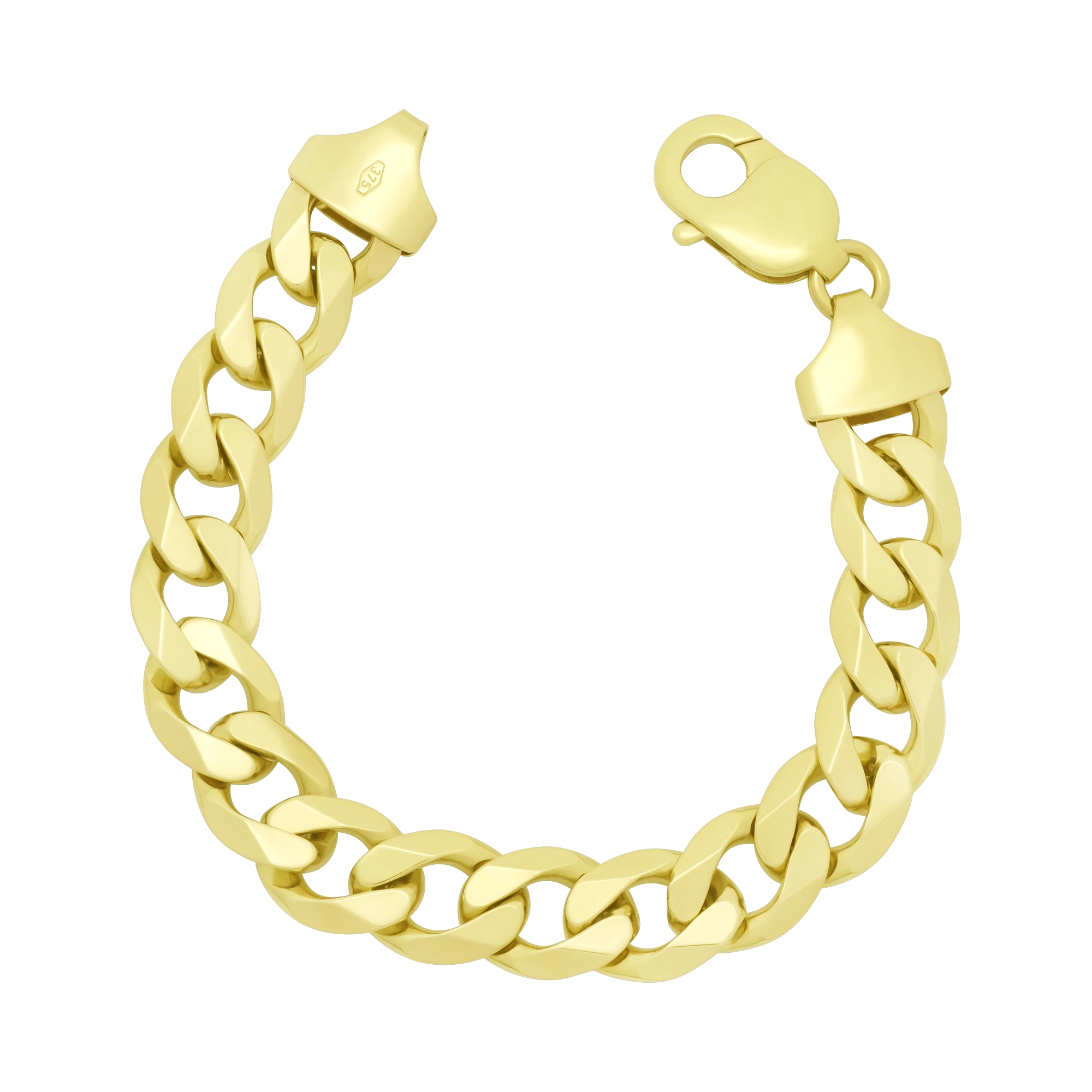 This stunning highly polished pre-owned 9ct solid yellow gold Curb bracelet is sure to get you noticed. Measuring 8.5 inches in length and 13mm wide, this Curb fastens with a lobster claw clasp for comfort and security.