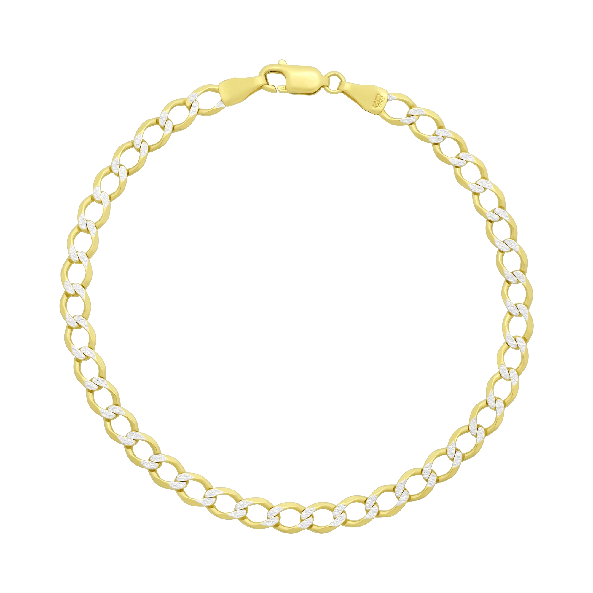 A pre-owned, beautifully polished 9ct yellow gold diamond cut curb bracelet that is sure to get you noticed. Measuring 7.5 inches in length and 4.5mm wide, this curb bracelet fastens with a lobster claw clasp for comfort and security.