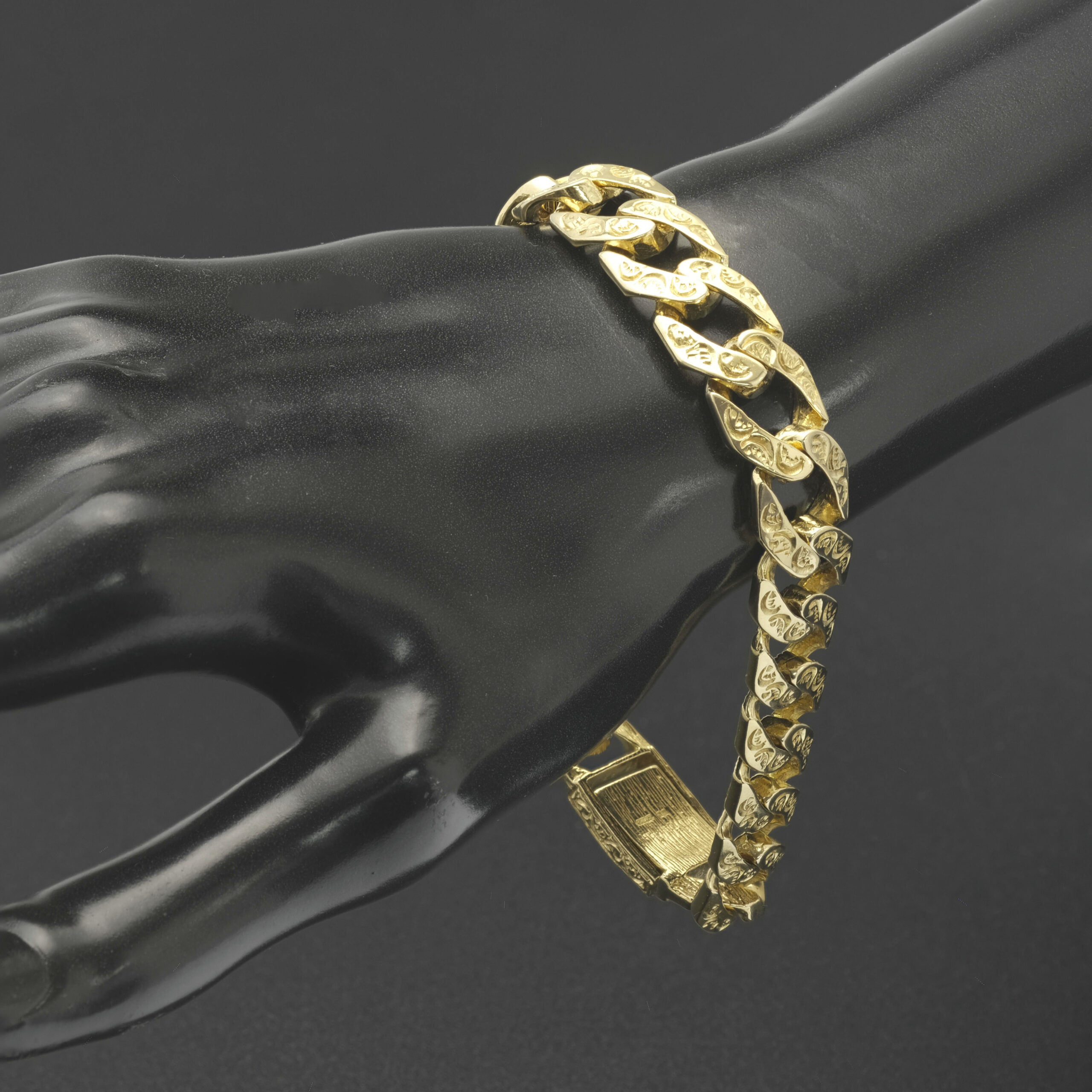 This stunning highly polished pre-owned solid 9ct yellow gold Curb bracelet is sure to get you noticed. Measuring 8.5 inches in length and 12.5mm wide, this Cuban fastens with a box clasp with safety catches on either side for that extra security.