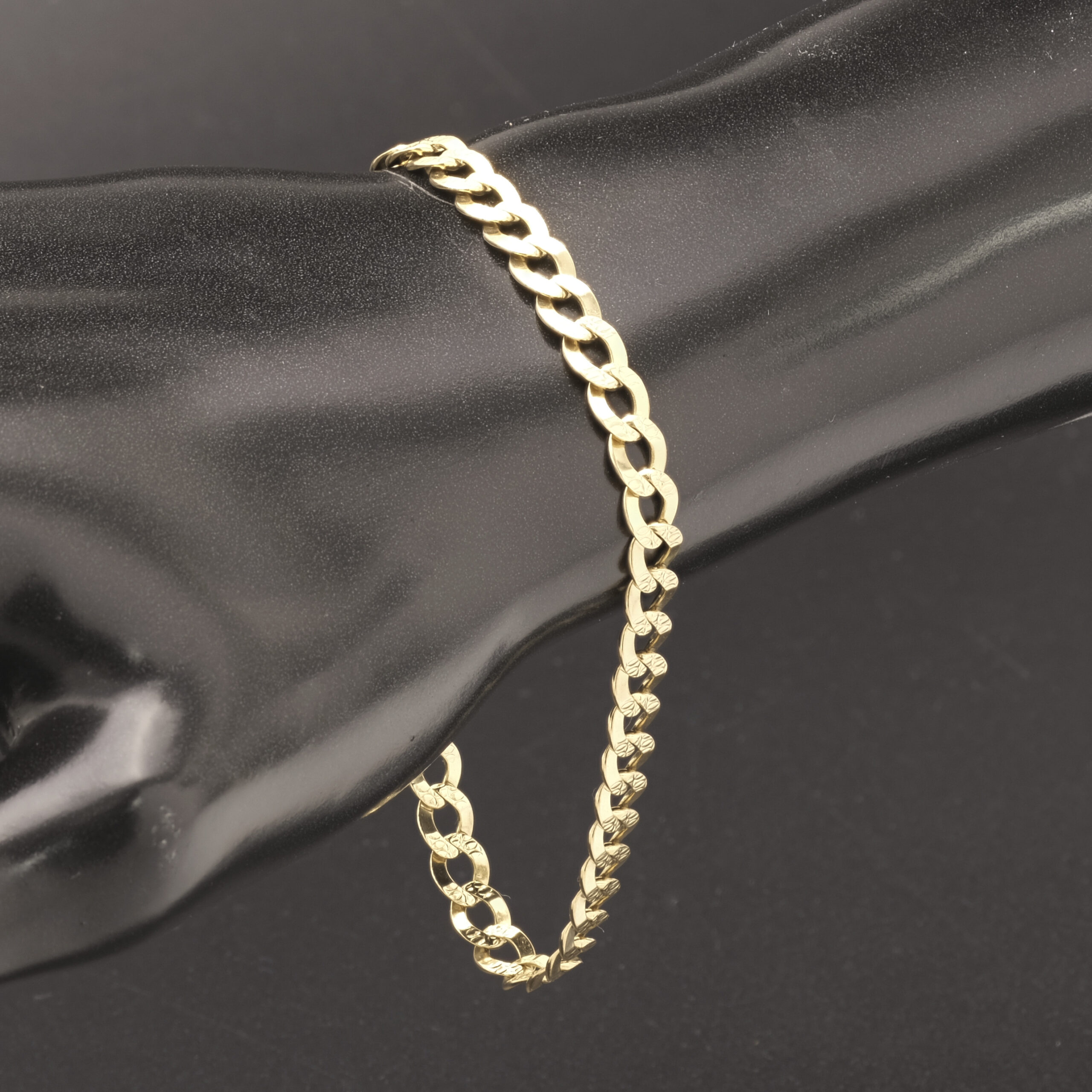 This stunning highly polished pre-owned 9ct solid yellow gold curb bracelet is sure to get you noticed. Measuring 8 inches in length and 5.5mm wide, this Curb fastens with a lobster claw clasp for comfort and security.