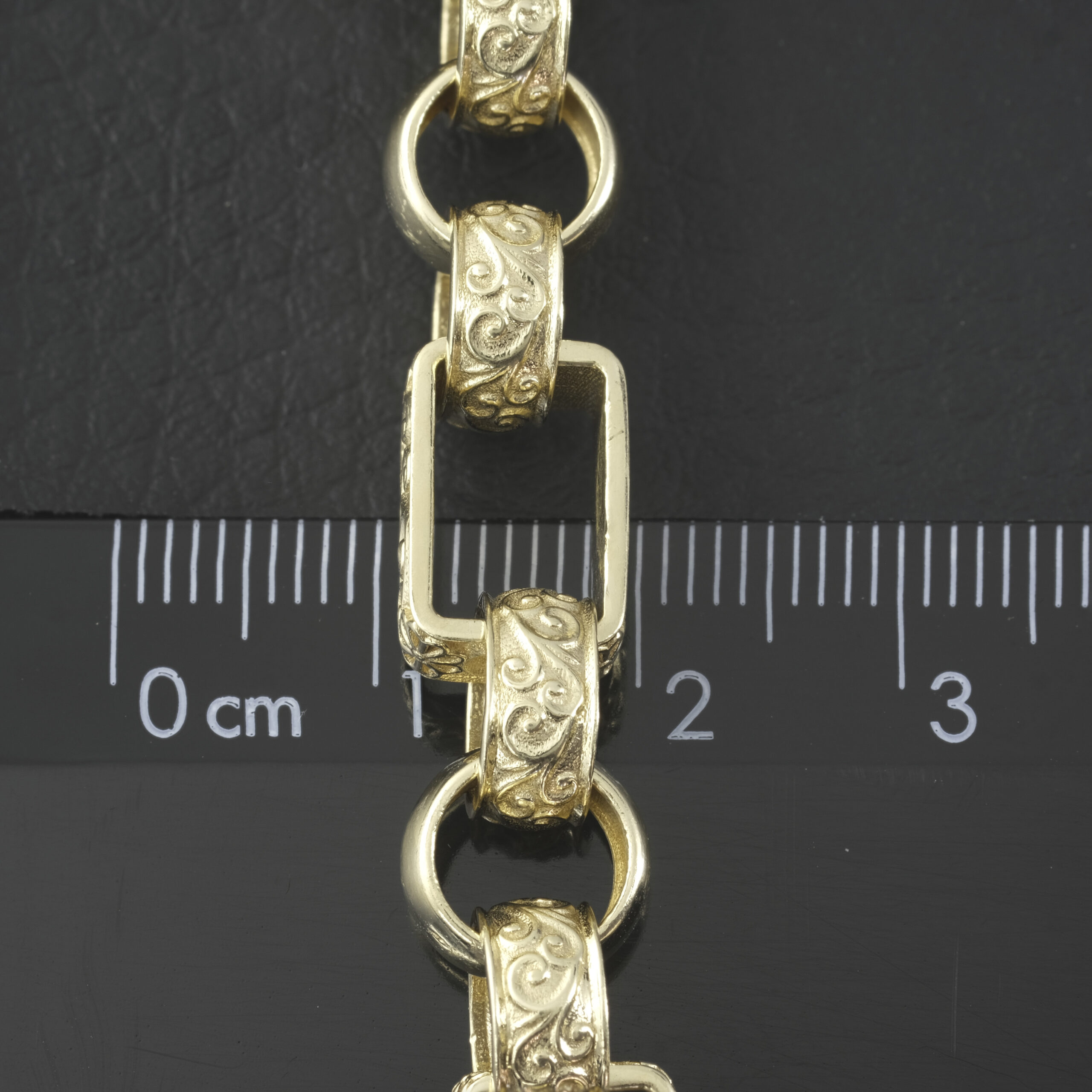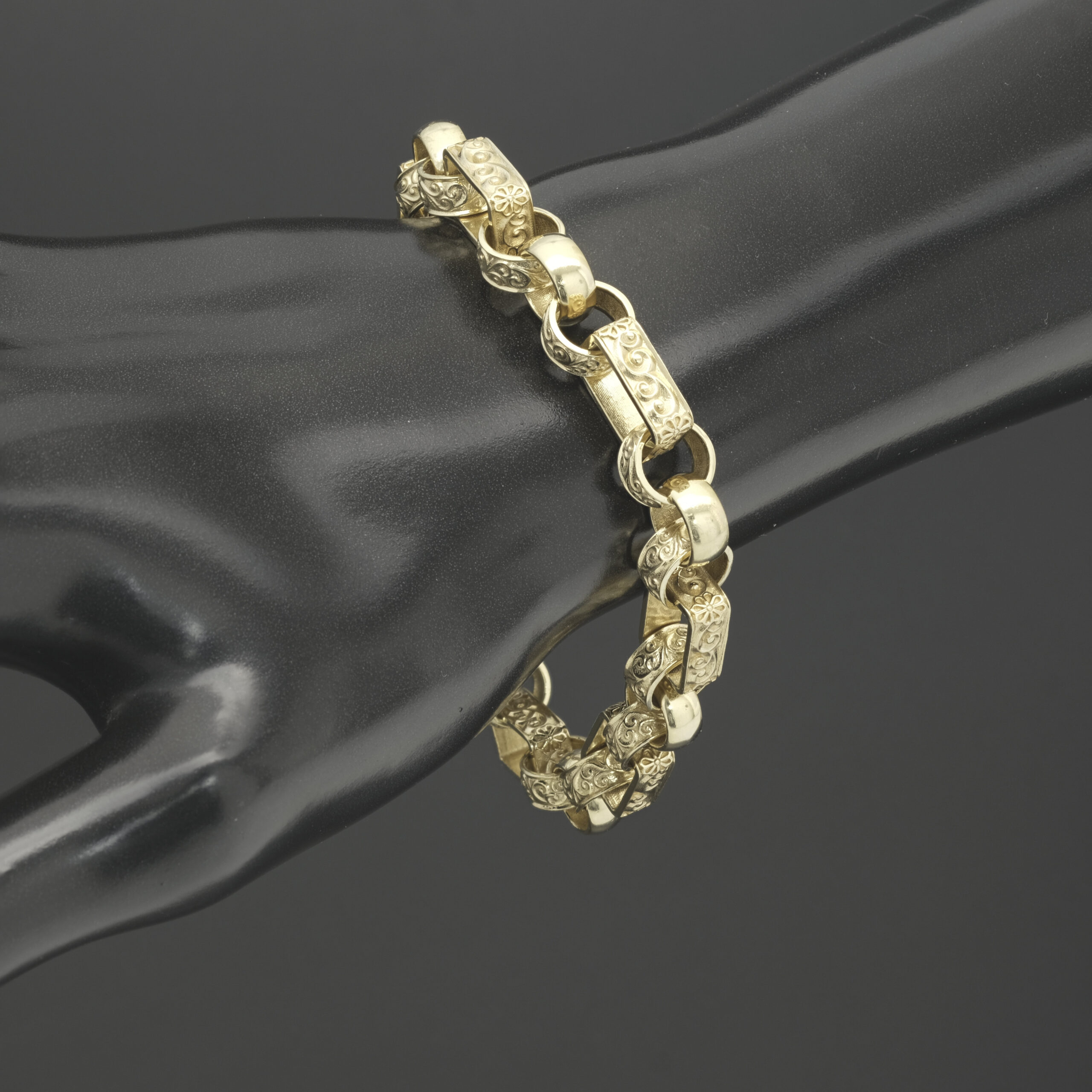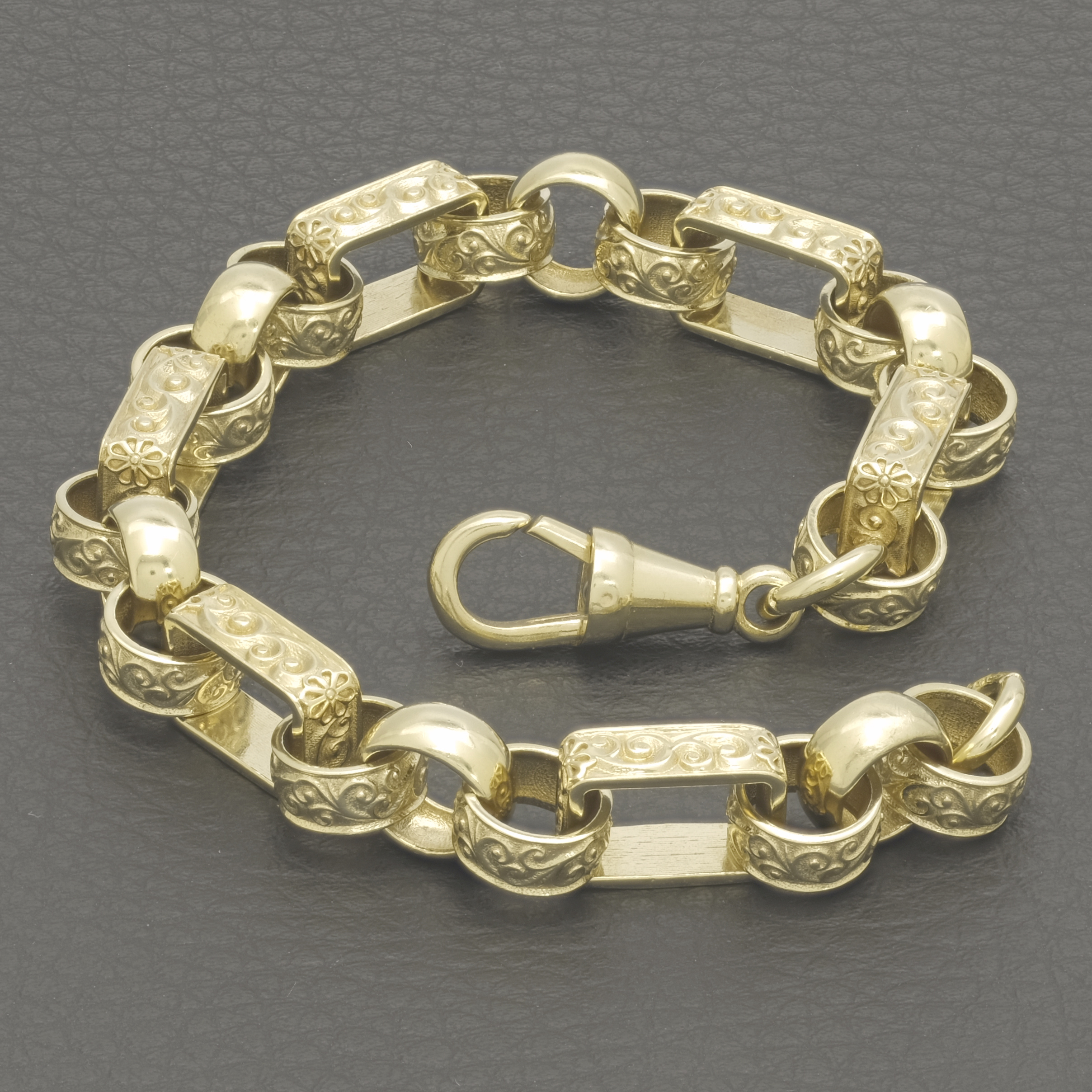 A change from the standard belcher, the gypsy link is a fantastic design. Made from solid 9ct yellow gold, this pre-owned gypsy link bracelet is perfect for occasional and everyday wear. This bracelet measures 8.5 inches in length and 9mm in width, featuring patterned/plain links. This beautifully polished bracelet securely fastens with an Albert clasp for comfortable wear.