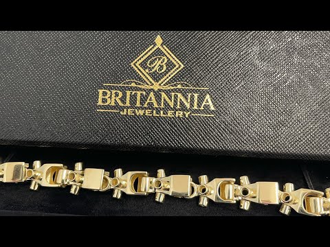 A brand new 9ct yellow gold Lego link bracelet. This bracelet is a serious statement piece with the links measuring 9mm in width and measuring 9 inches in length. The links are beautifully polished and definitely catches the eye. This Lego fastens with an albert clasp for comfort and security.