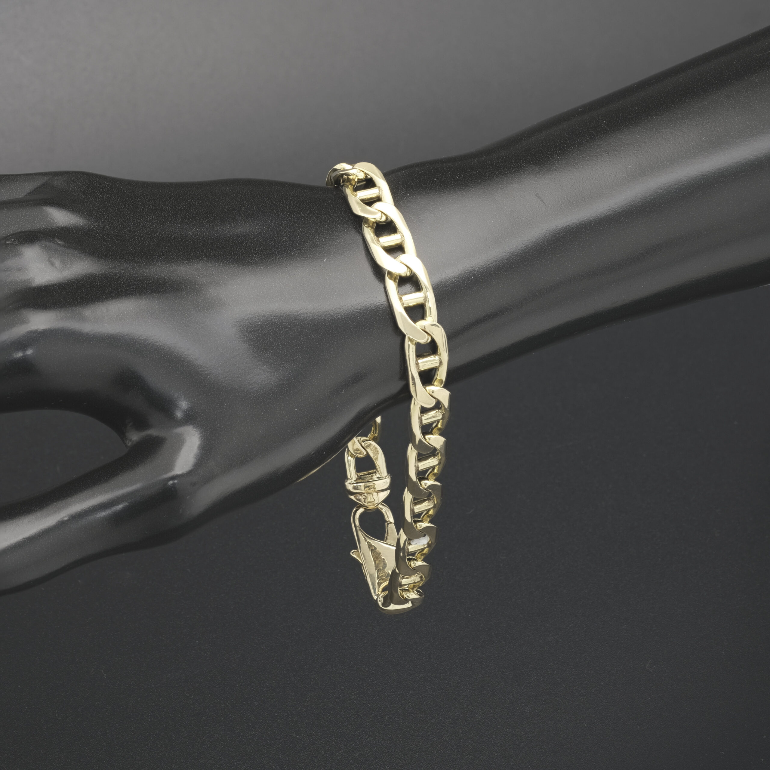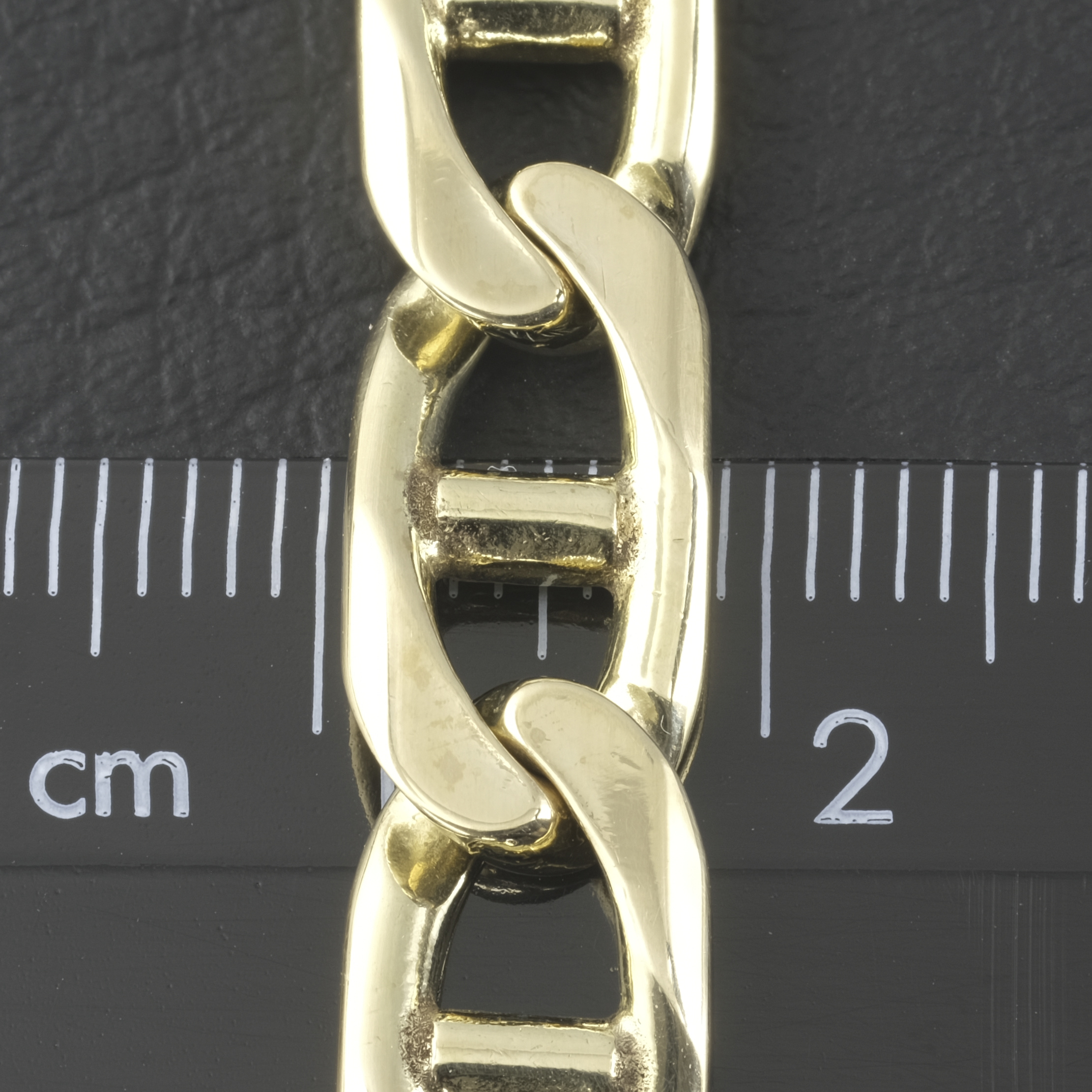 This solid pre-owned, marina bracelet is made from 9ct yellow gold and is perfect for occasional or everyday wear. This highly-polished chain features 8mm links and measures 9 inches in length, securing with a lobster claw clasp. This chain would make a great accessory for all occasions.