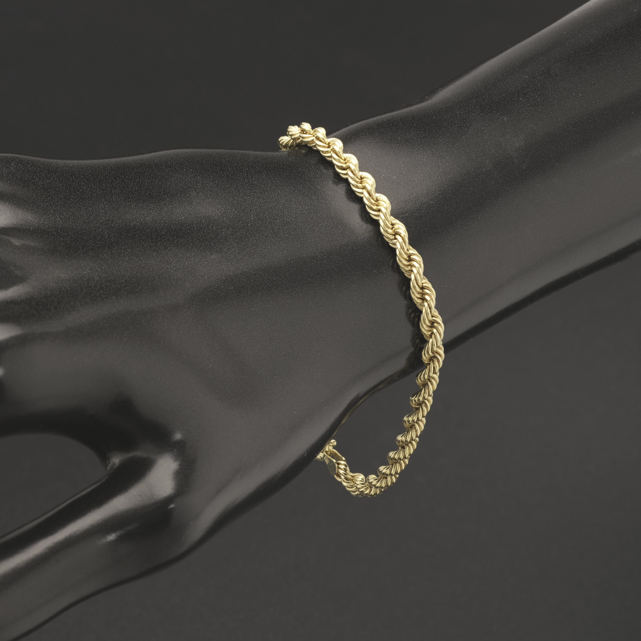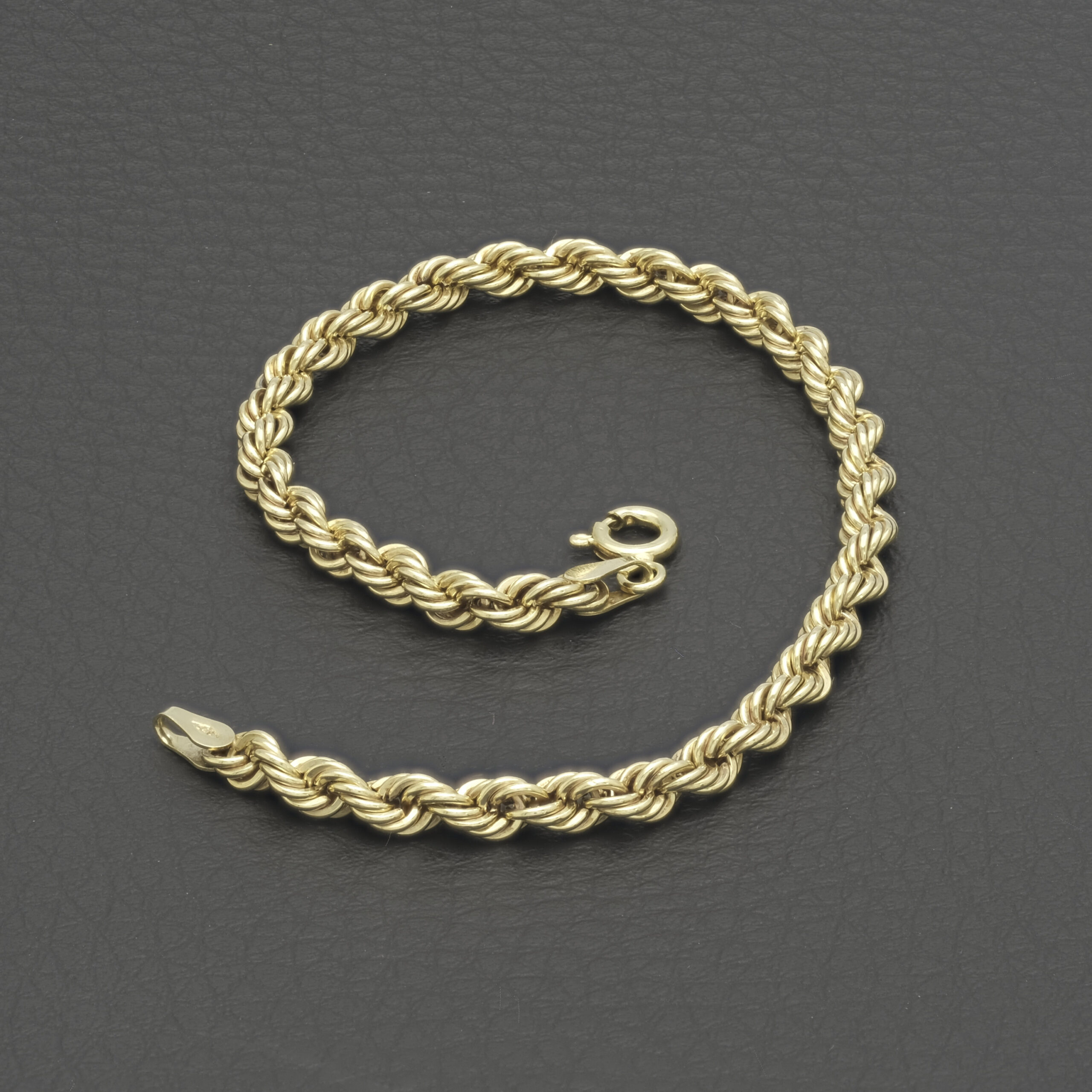 Made from 9ct yellow gold, this pre-owned rope bracelet is perfect for occasional or everyday wear. This beautifully polished bracelet measures seven inches in length and 4mm in width, fastening with an spring ring clasp for secure and comfortable wear.