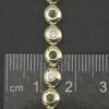A beautiful, pre-owned 14ct yellow gold emerald and diamond tennis bracelet. This bracelet is set with over ten diamonds which total 0.45ct and over ten emeralds in alternating links. This bracelet fastens with a push-tongue box clasp, featuring a safety catch for additional security.