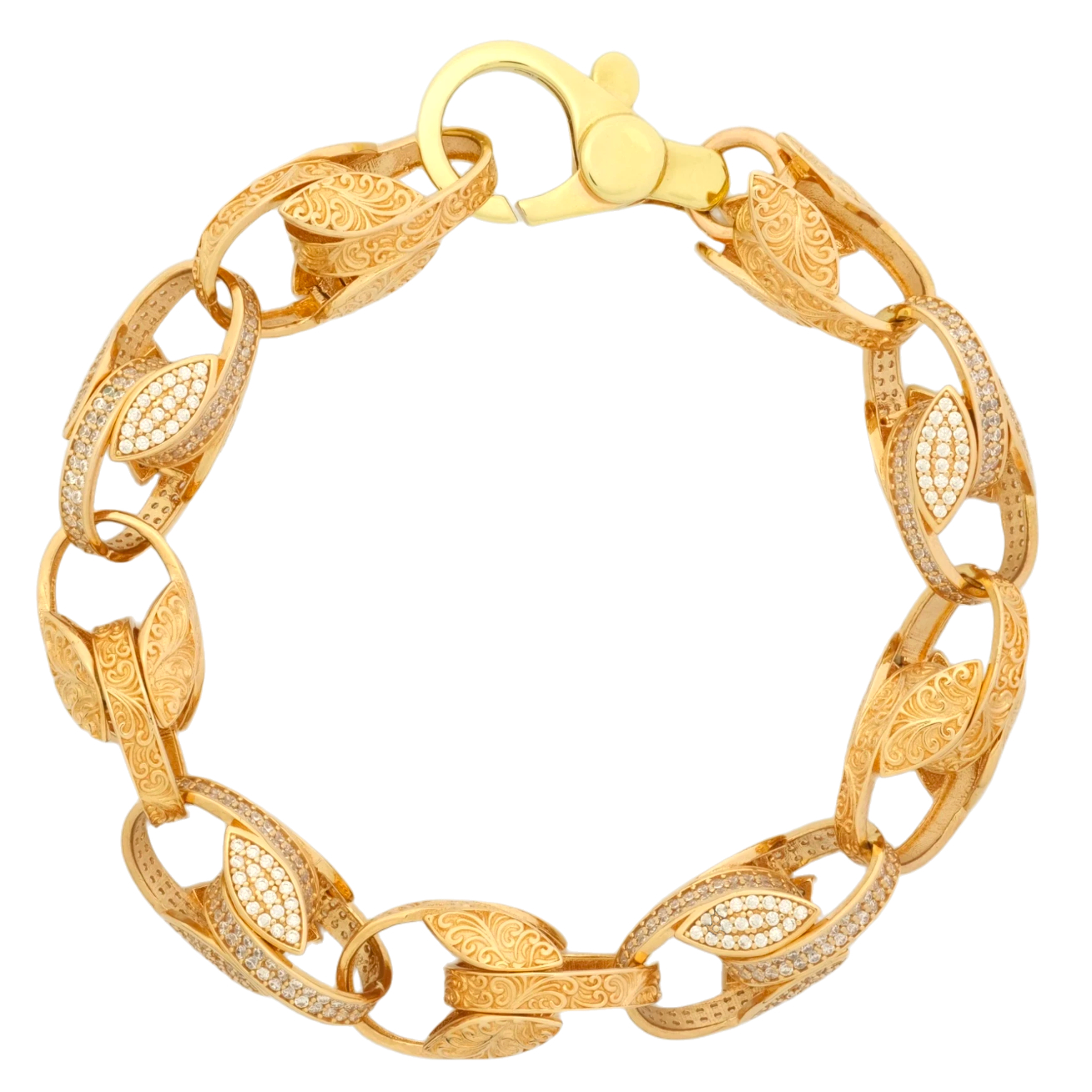 Crafted from 9ct rose gold, this pre-owned, highly polished gemstone tulip bracelet is great for occasional or everyday wear. Featuring alternating gemstone and patterned links for a classic look. Measuring 12mm in width and 8.5 inches in length, this stylish tulip secures with a lobster clasp for comfortable wear.