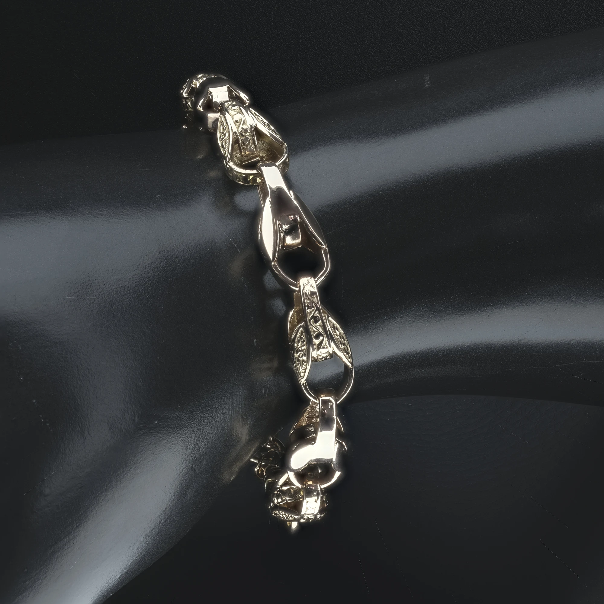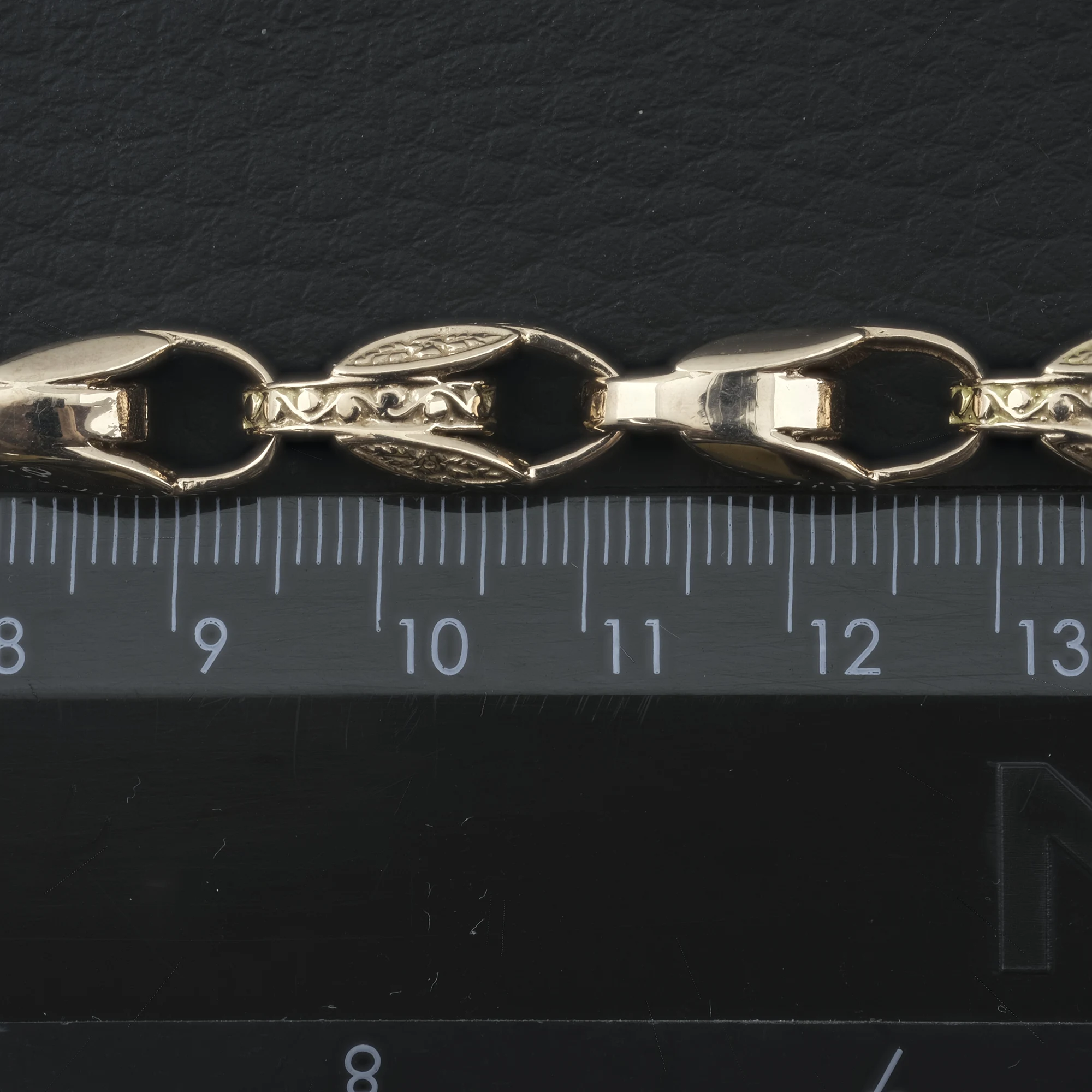 Crafted from 9ct rose gold, this pre-owned, highly polished tulip bracelet is great for occasional or everyday wear. Featuring alternating plain and patterned links for a classic look. Measuring 9.5mm in width and 8.5 inches in length, this stylish tulip secures with an Albert clasp for comfortable wear.