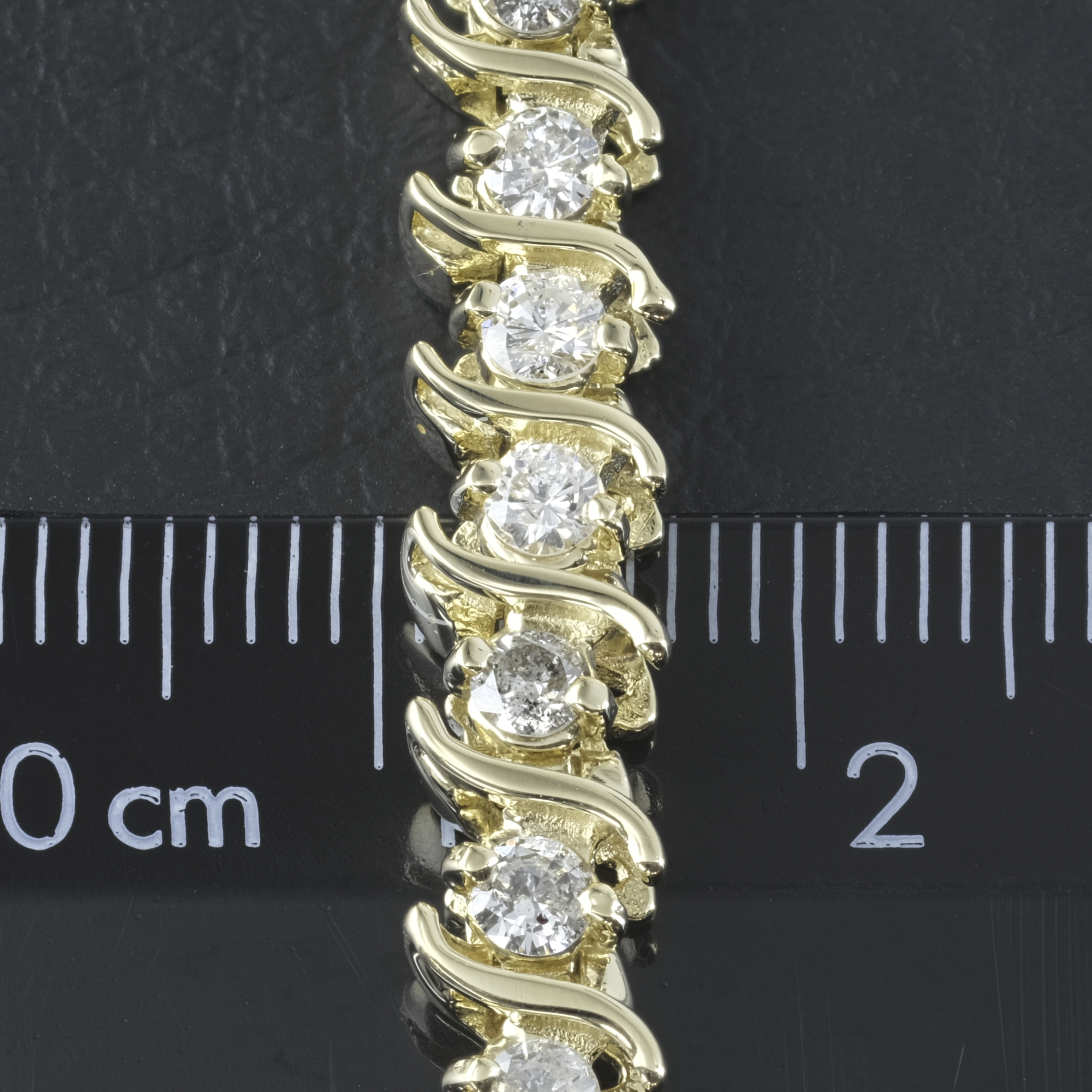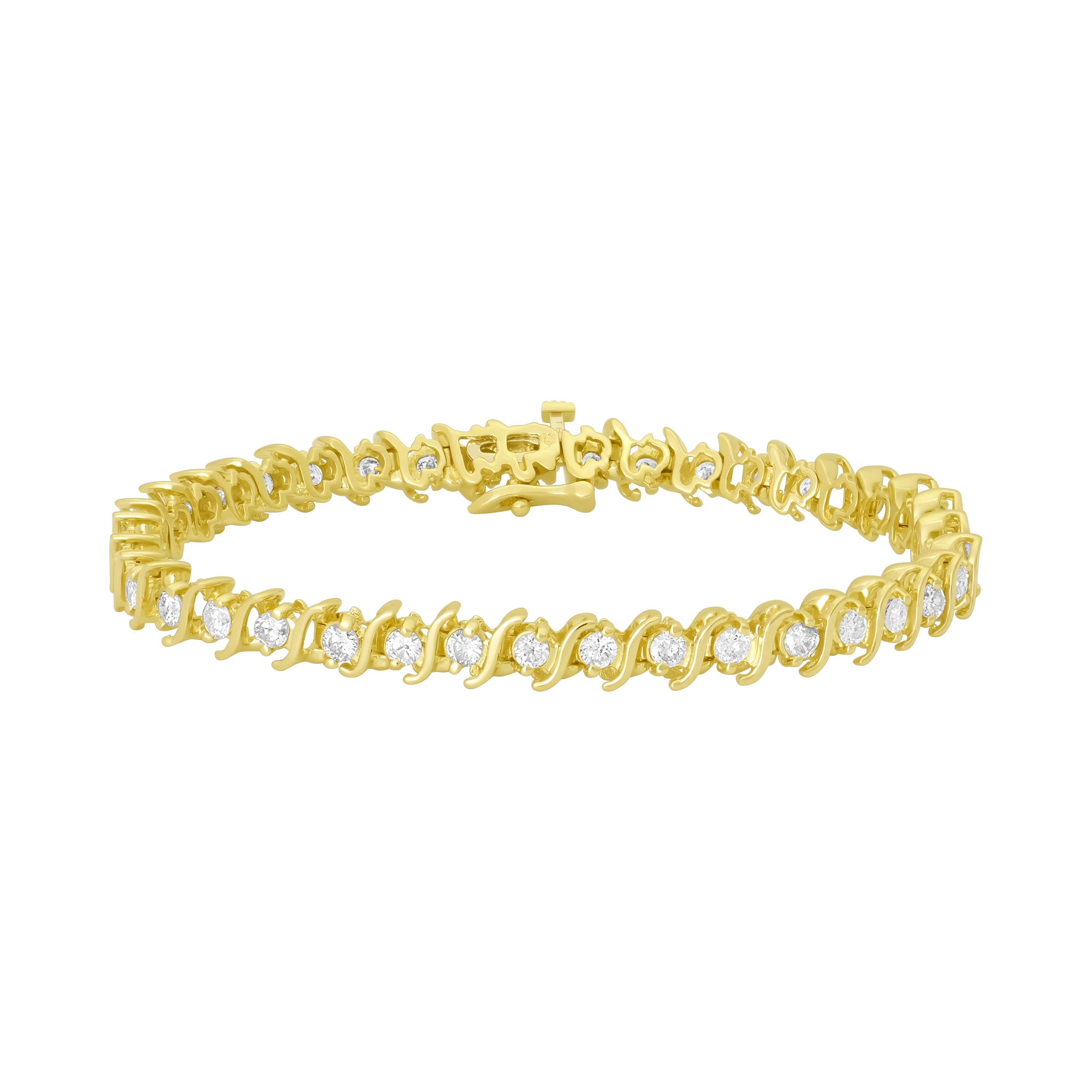 This exquisite pre-owned 14ct yellow gold diamond bracelet is a timeless piece of elegance and sophistication. Featuring a stunning arrangement of brilliant-cut diamonds, each meticulously set to maximize their sparkle, this bracelet exudes luxury and charm. The warm glow of the yellow gold perfectly complements the dazzling brilliance of the diamonds, creating a harmonious blend of classic and contemporary design. These diamonds have a total carat weight of 2.66ct, with a colour of H-I and a clarity of I1-I2. Ideal for special occasions or as a statement accessory, this bracelet is a testament to refined craftsmanship and enduring style. A secure box clasp with a safety catch on one ensures both comfort and peace of mind, making it a perfect addition to any jewellery collection.
