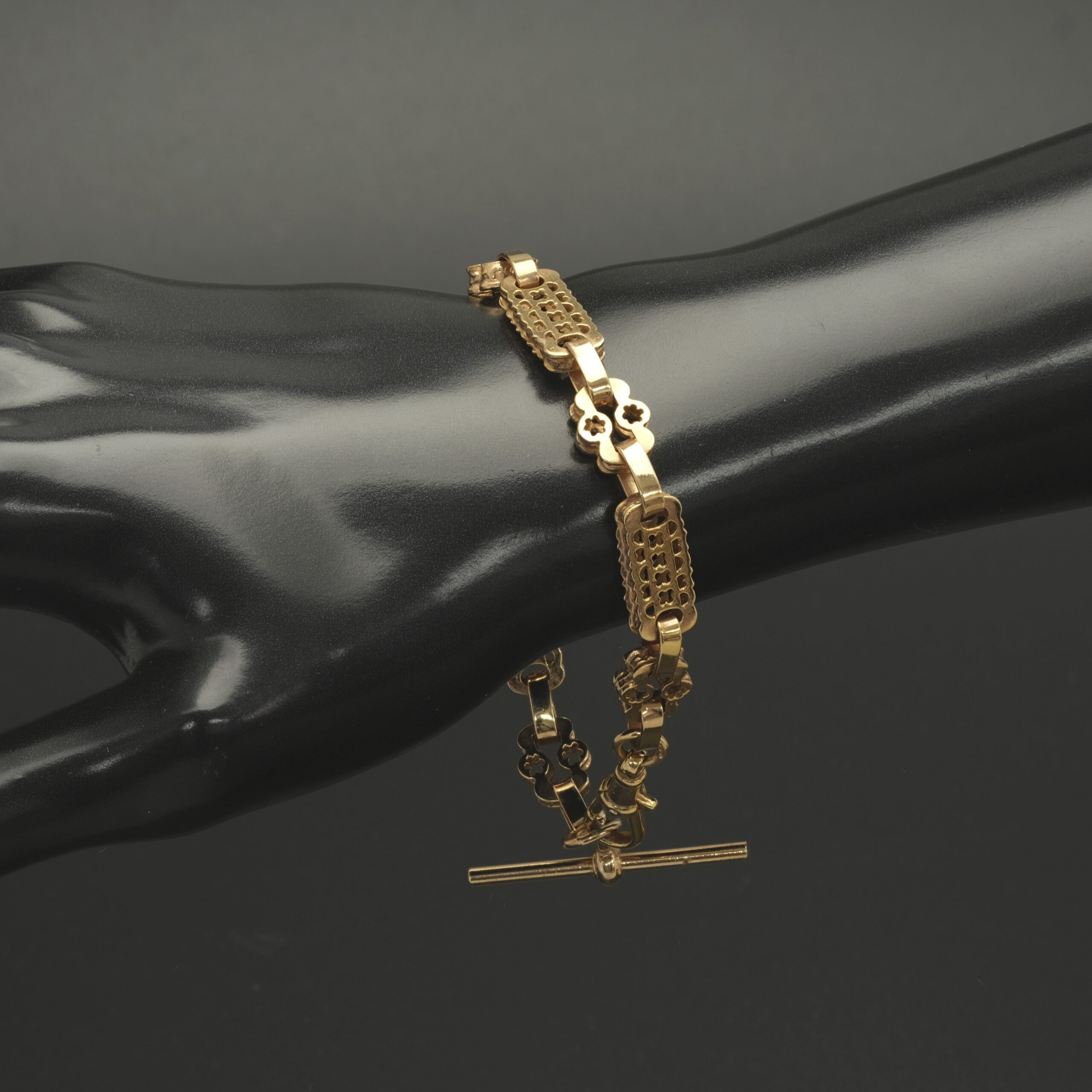 A pre-owned, 9ct rose gold stars & bars bracelet that is perfect for occasional or everyday wear. This bracelet measures 7.5 inches in length and 9mm in width, fastening with an Albert clasp and a T-Bar for secure and comfortable wear.