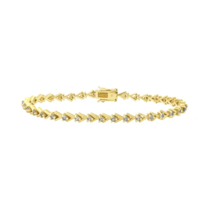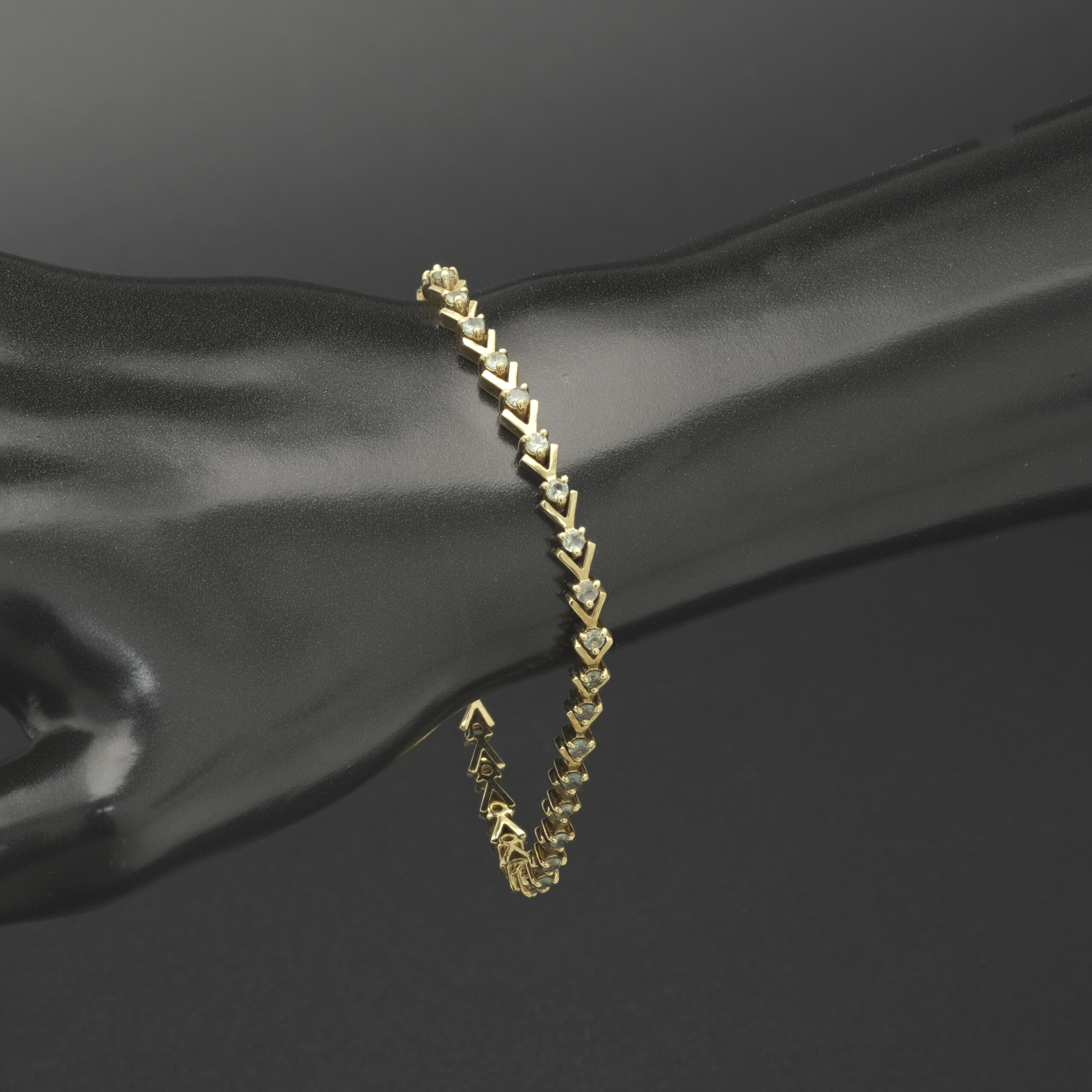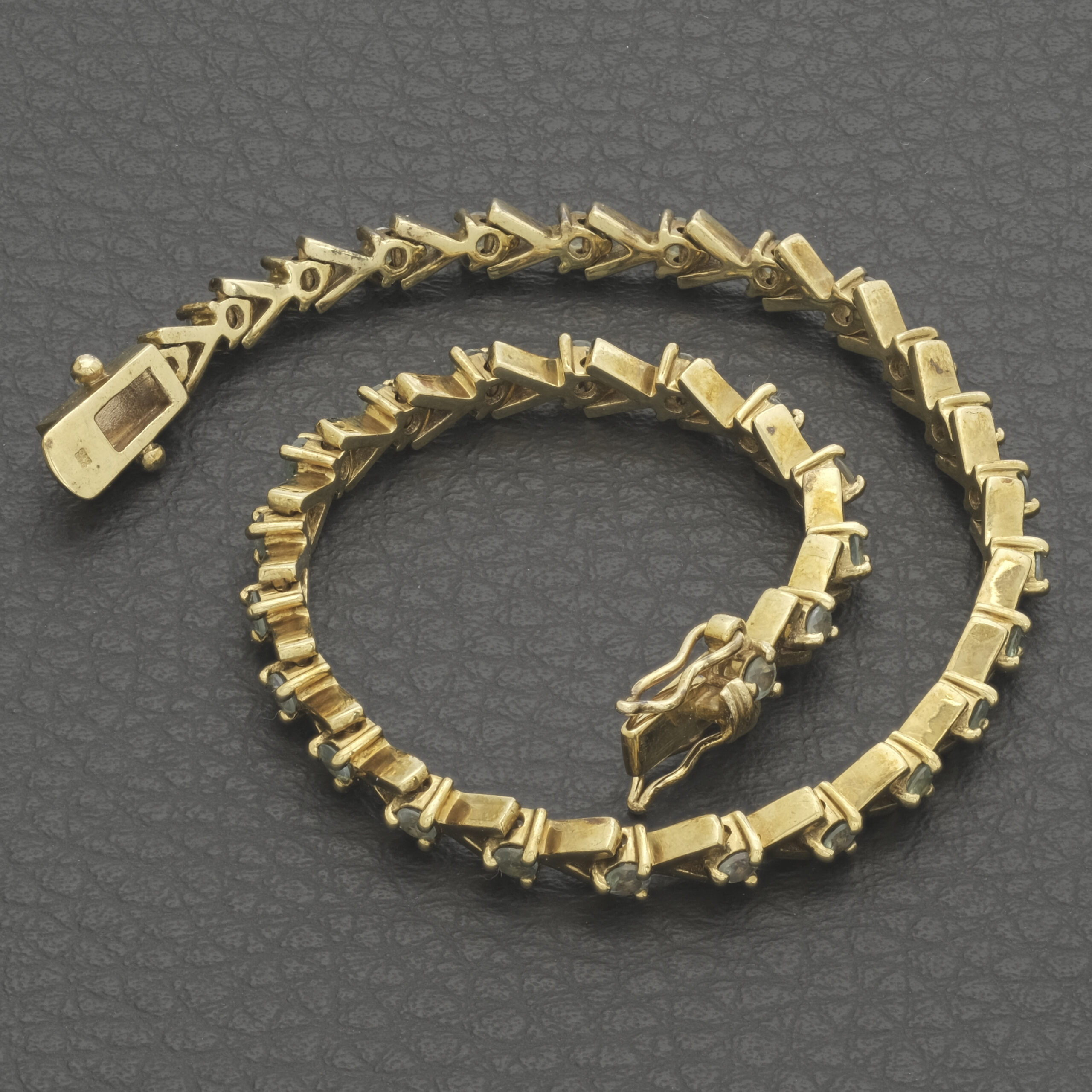 A stunning pre-owned 9ct yellow gold Alexandrite line bracelet. A line bracelet is the epitome of refined elegance, featuring a continuous row of meticulously cut alexandrite stones that exude brilliance and sophistication. Each stone is precisely set in a delicate yet sturdy framework, ensuring maximum sparkle and durability. This bracelet has a total carat weight of 2.39ct. The seamless design creates a graceful silhouette that perfectly adorns the wrist, making it an ideal choice for any special occasion or as an everyday statement of luxury. Securing with a box style setting for that added extra security.