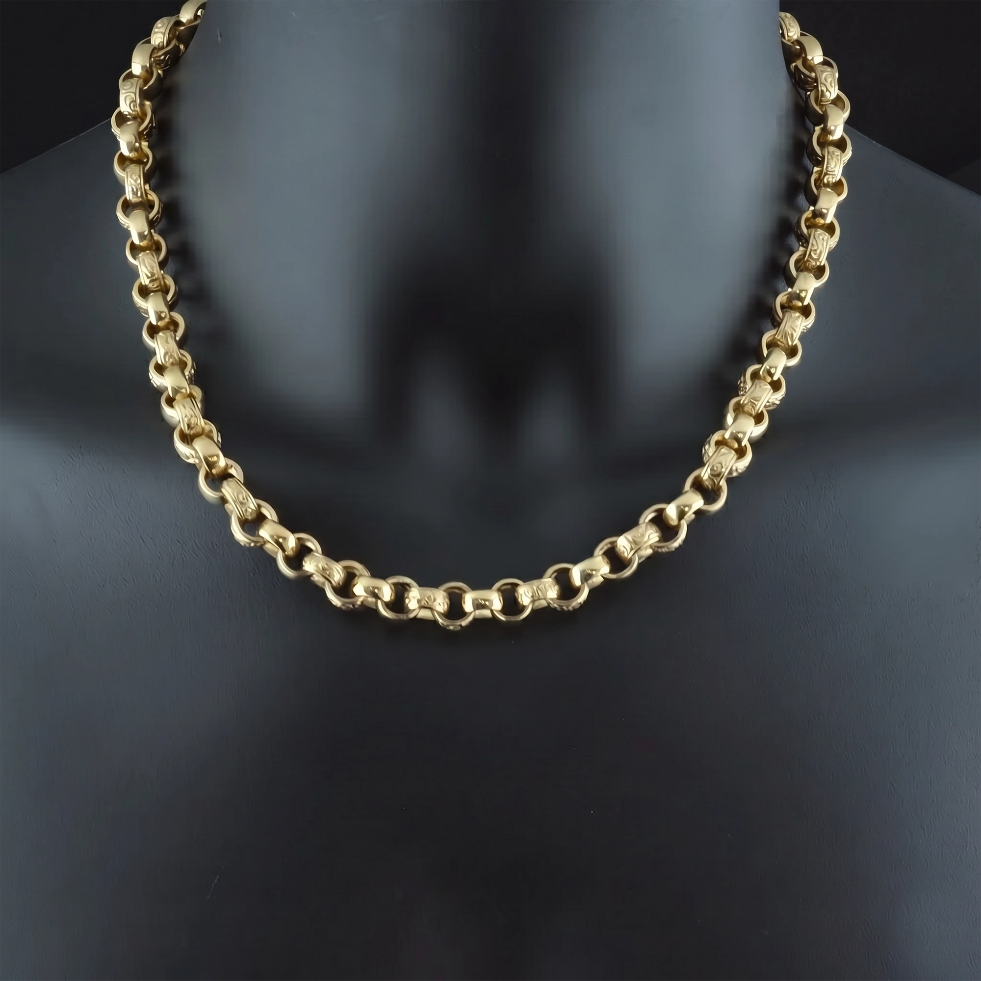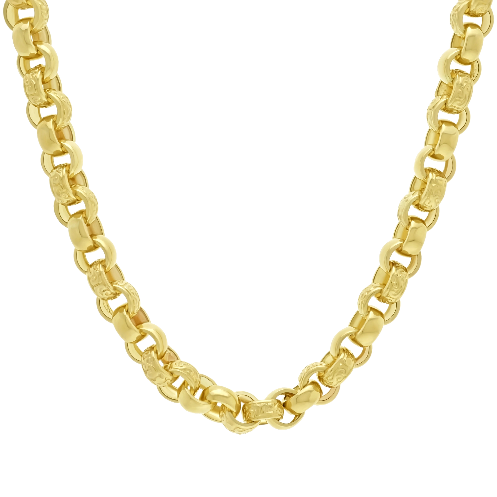 Made from solid 9ct yellow gold, this pre owned patterned belcher chain is perfect for occasional or everyday wear. This 20-inch belcher features 9.5mm links all set in a unique patterned design. Fastening with a lobster claw clasp for extra security. This is a perfect gift.