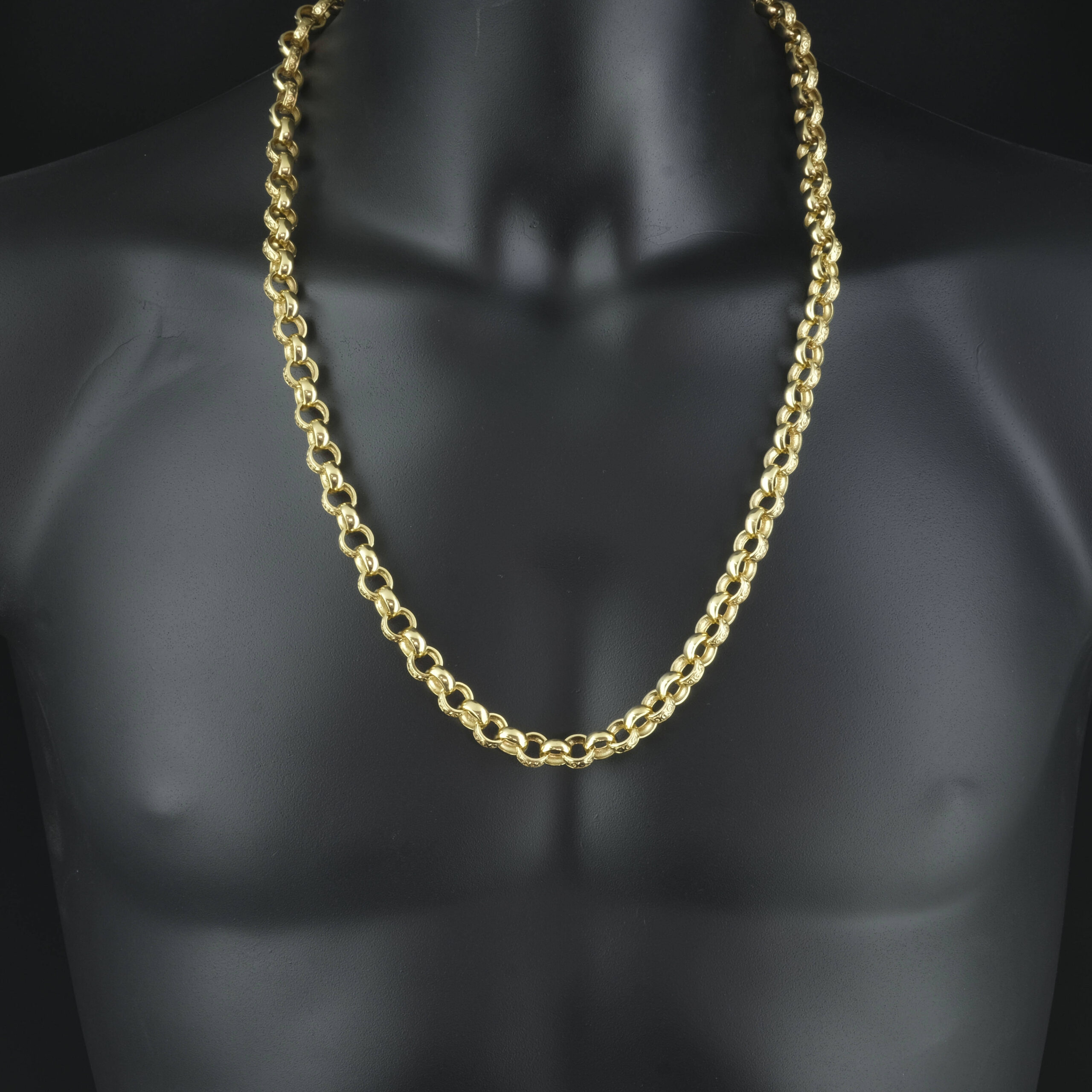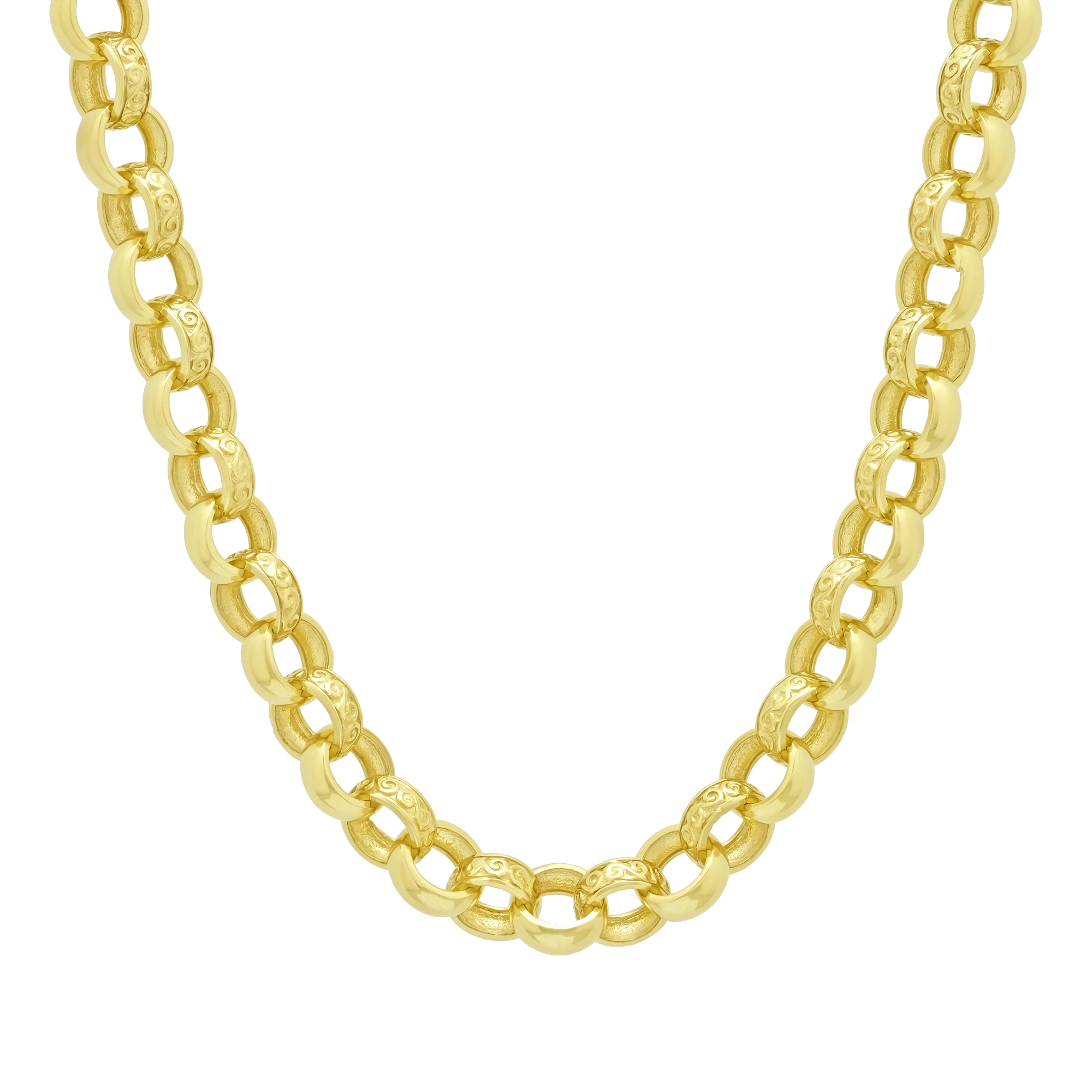 Made from solid 9ct yellow gold, this pre owned patterned and plain belcher chain is perfect for occasional or everyday wear. This 28-inch belcher features 10mm links that are set in a plain and patterned design that alternate. Fastening with a lobster claw for extra security. This is a perfect gift.