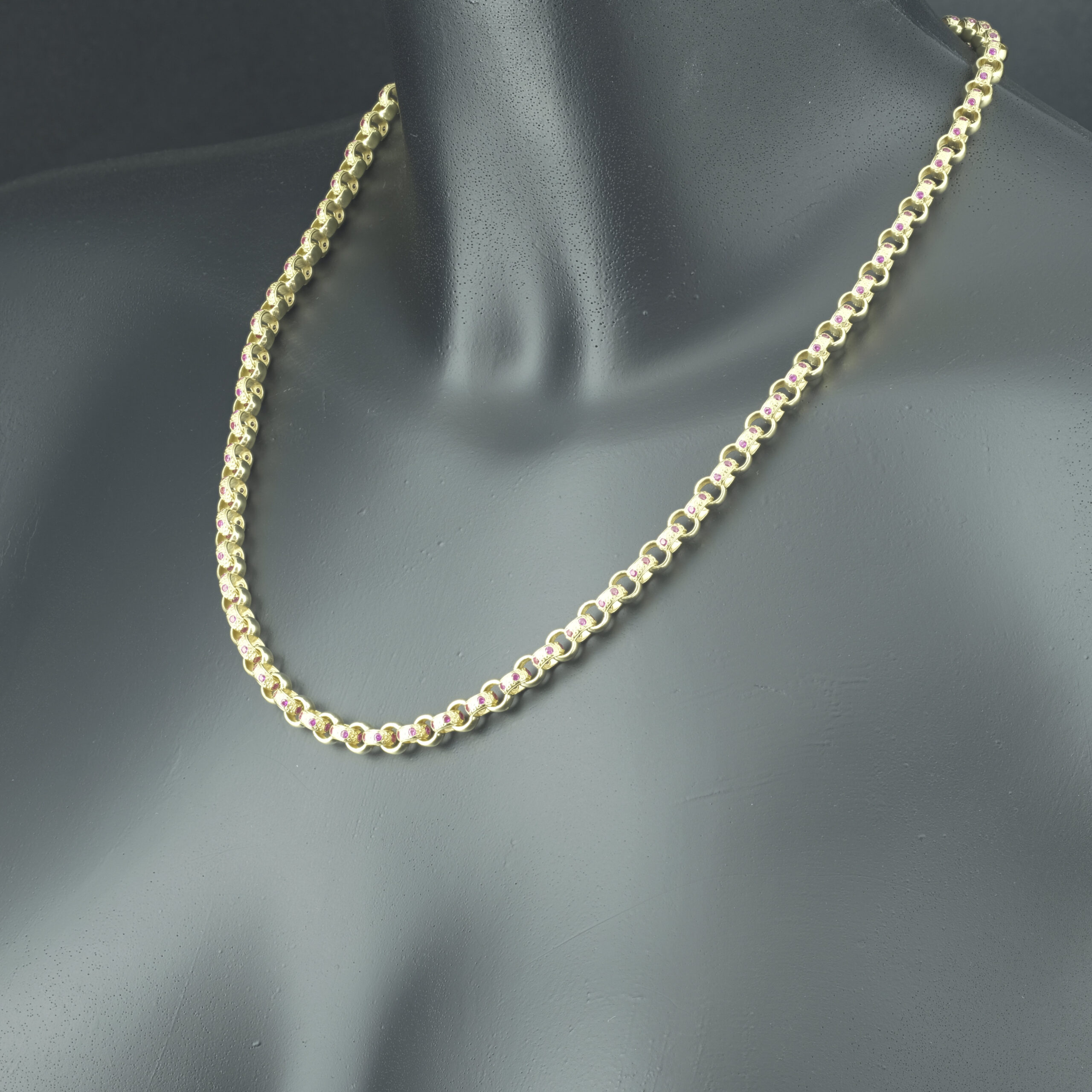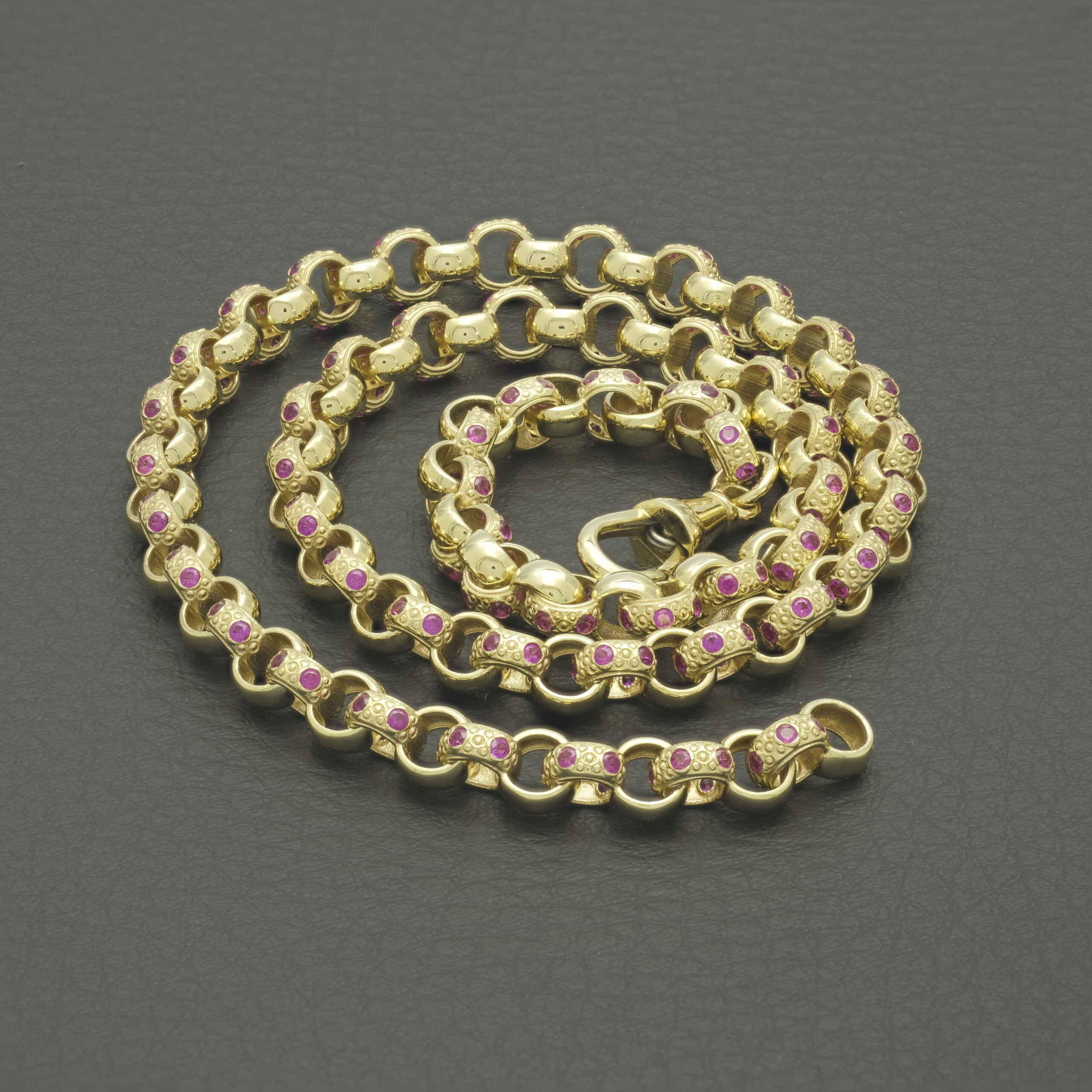 Made from 9ct yellow gold, this brand-new pink gemstone belcher chain is perfect for occasional or everyday wear. This 16-inch belcher features 6mm pink gemstone and plain alternating links for a classic look. Fastening with an Albert clasp ensures secure and comfortable wear.