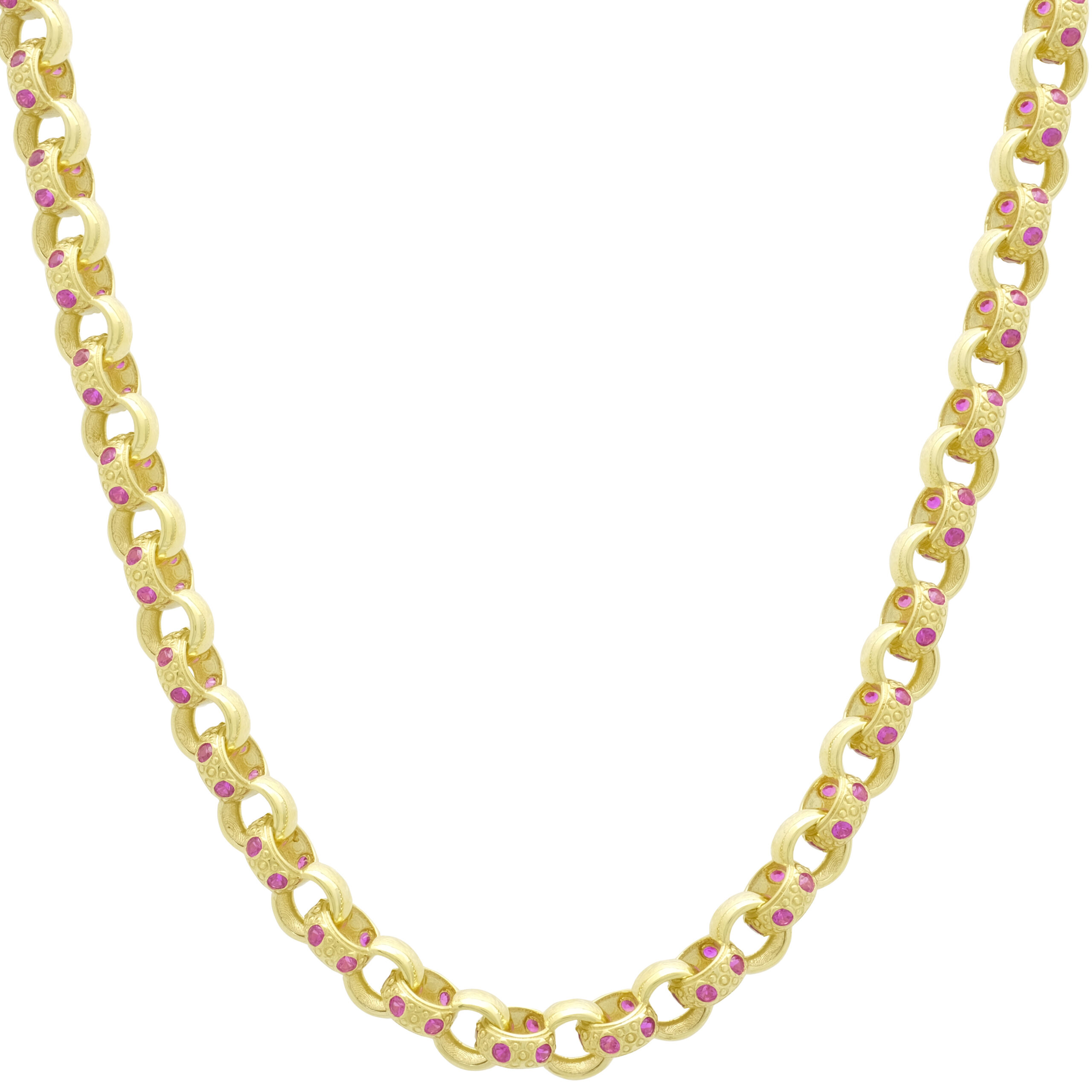 Made from 9ct yellow gold, this brand-new pink gemstone belcher chain is perfect for occasional or everyday wear. This 20-inch belcher features 6mm pink gemstone and plain alternating links for a classic look. Fastening with an Albert clasp ensures secure and comfortable wear.