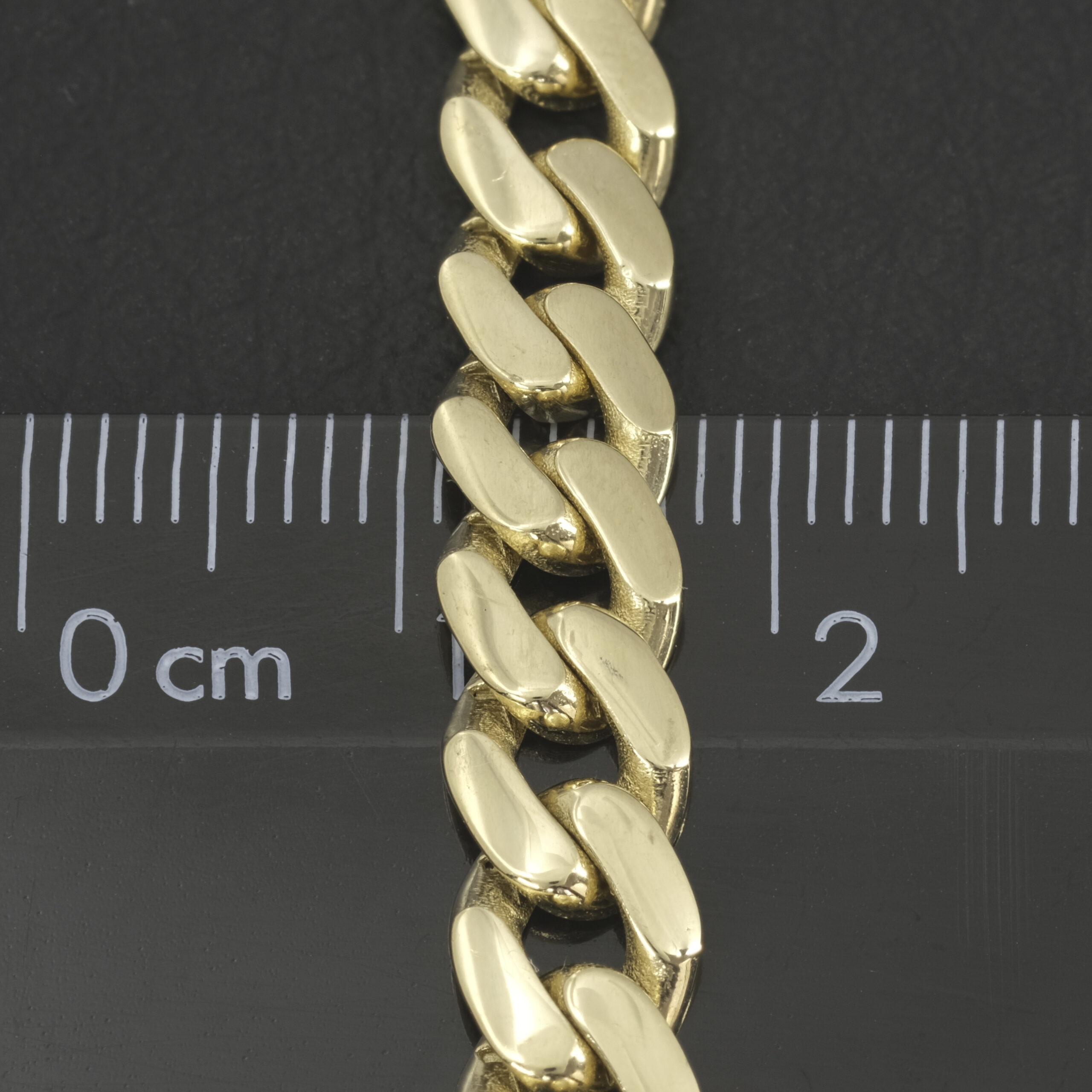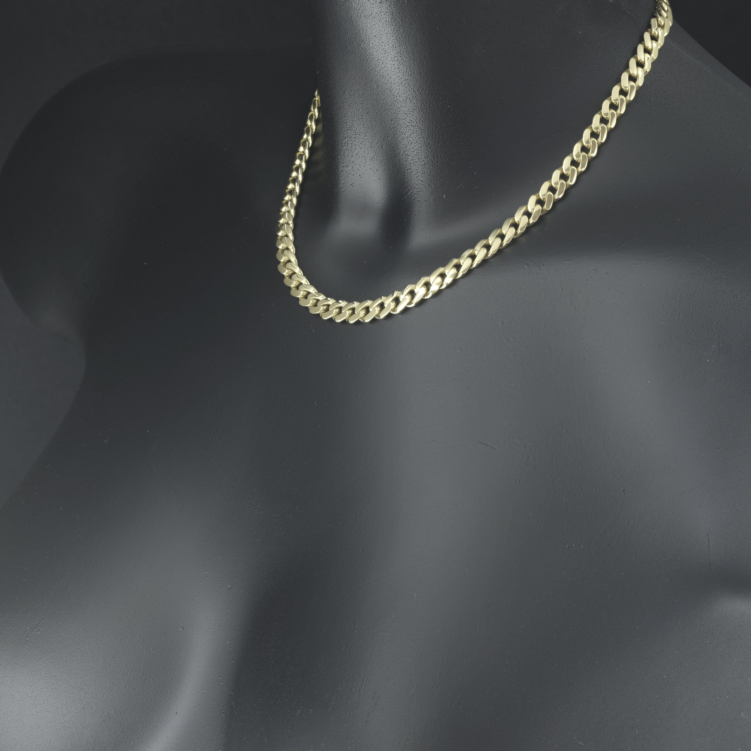 Crafted from 14ct yellow gold, this pre-owned Cuban chain is made using vacuum casting allowing this hollow Cuban to be lightweight with the strength for everyday wear with cubic zirconia gemstones on the clasp. Measuring 15.5 inches in length and 6.5mm in width, this Cuban fastens with a box clasp with safety catches on either side for added security.
