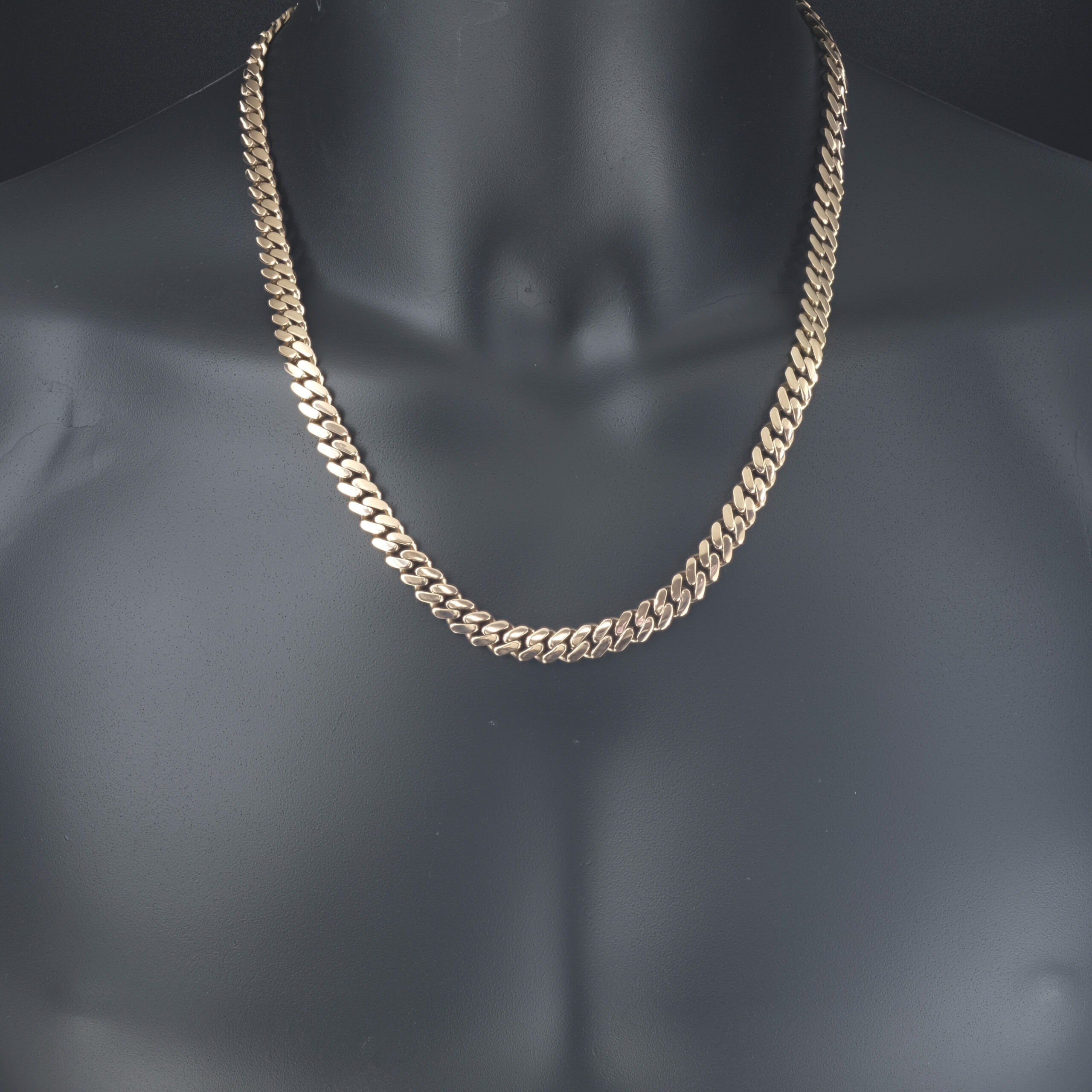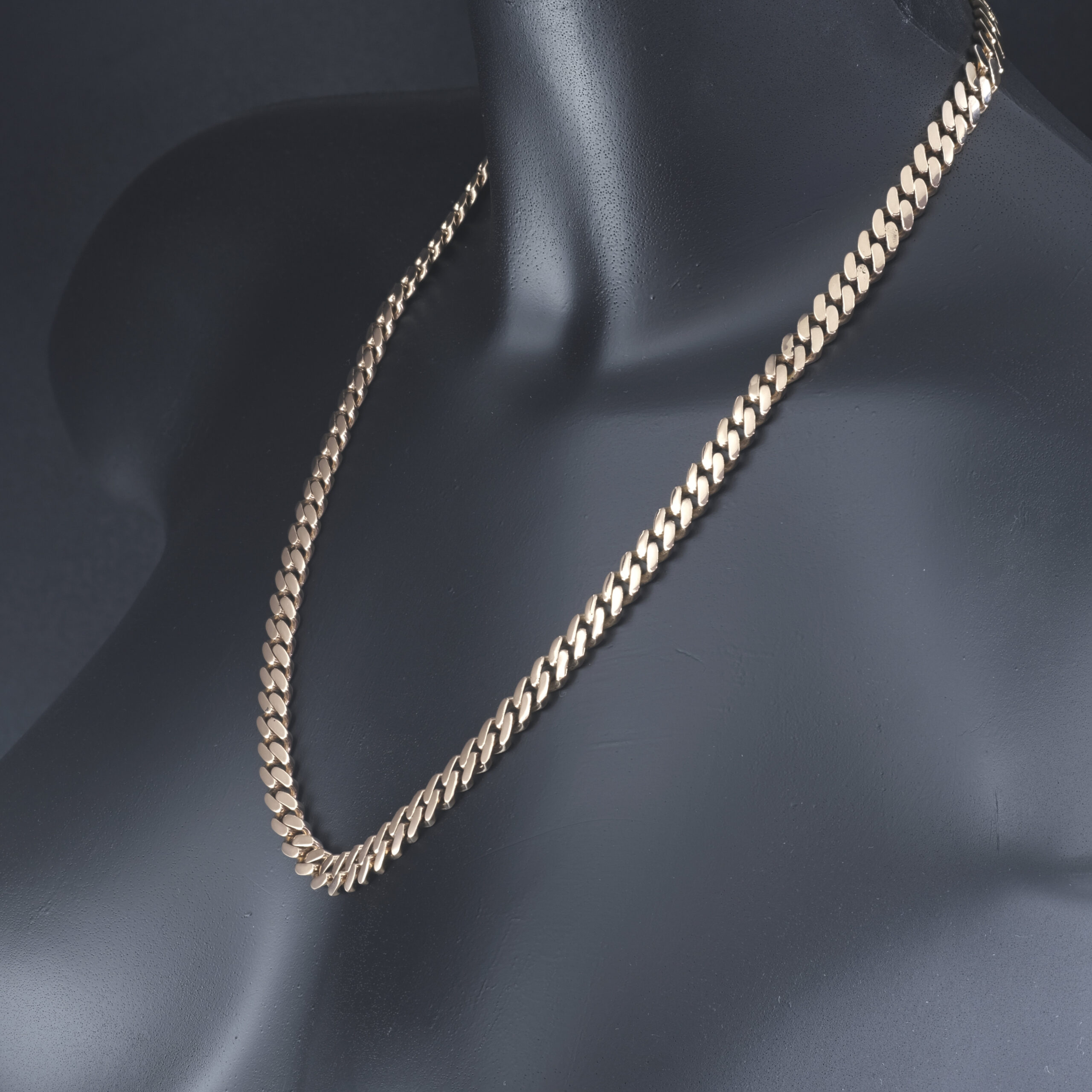 This solid pre-owned, cuban chain is made from 9ct rose gold and is perfect for occasional or everyday wear. This highly-polished chain features 8mm links and measures 22 inches in length, securing with a box clasp with safety catches on both sides. This chain would make a great accessory for all occasions.