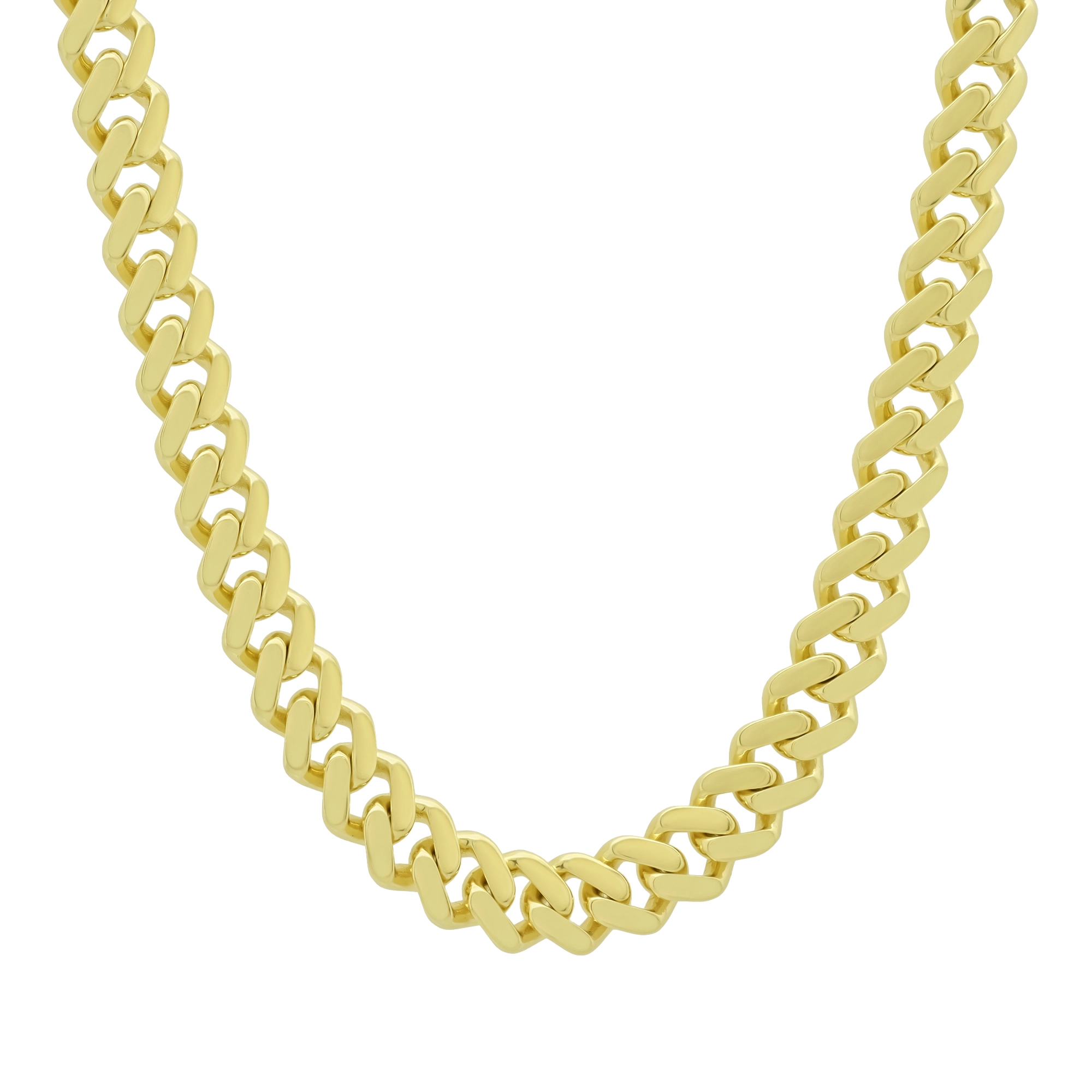 Crafted from 9ct yellow gold, this pre-owned highly polished solid Cuban chain is perfect for occasional or everyday wear. Measuring 24 inches in length and 11mm in width, this Cuban fastens with a box clasp with safety catches on either side for added security.