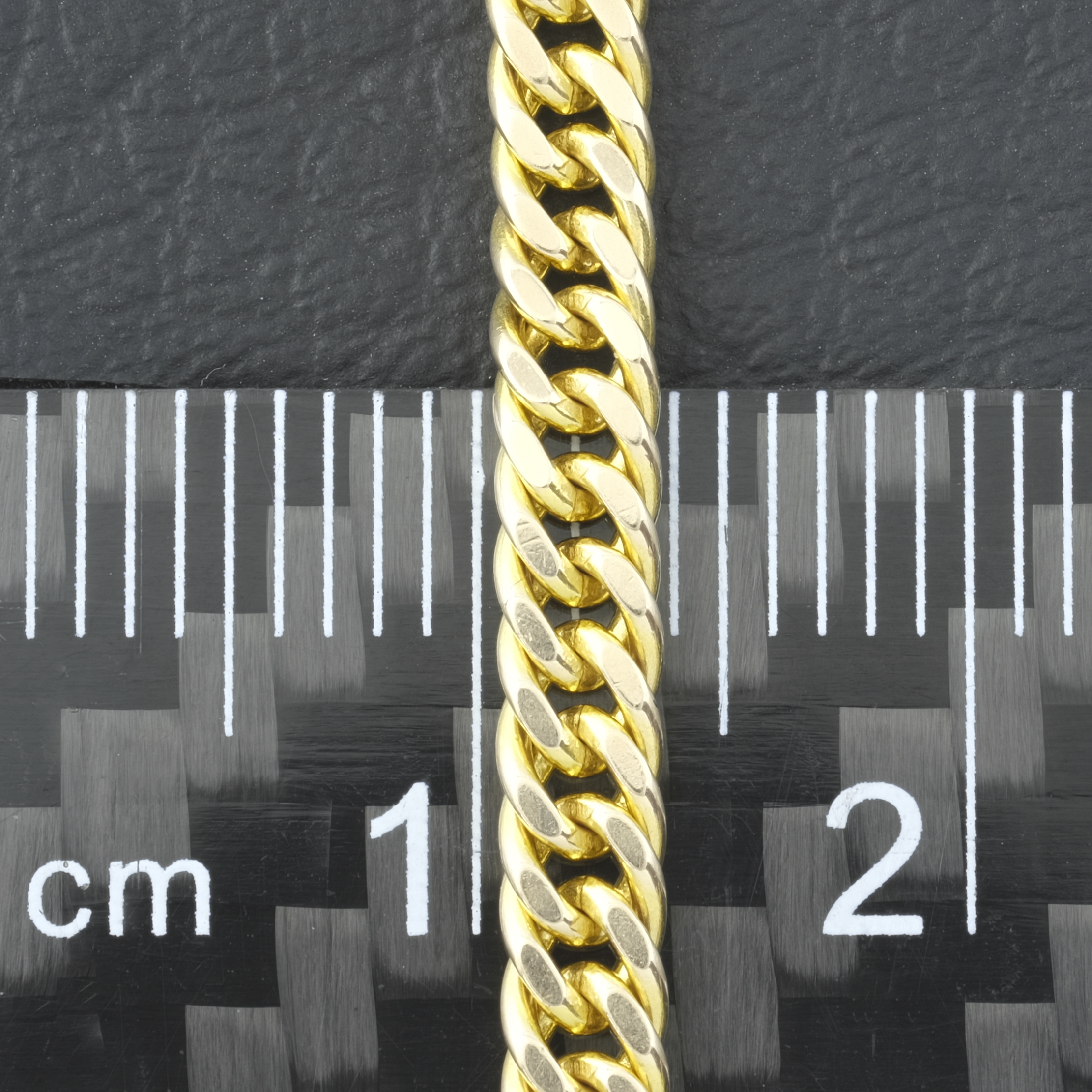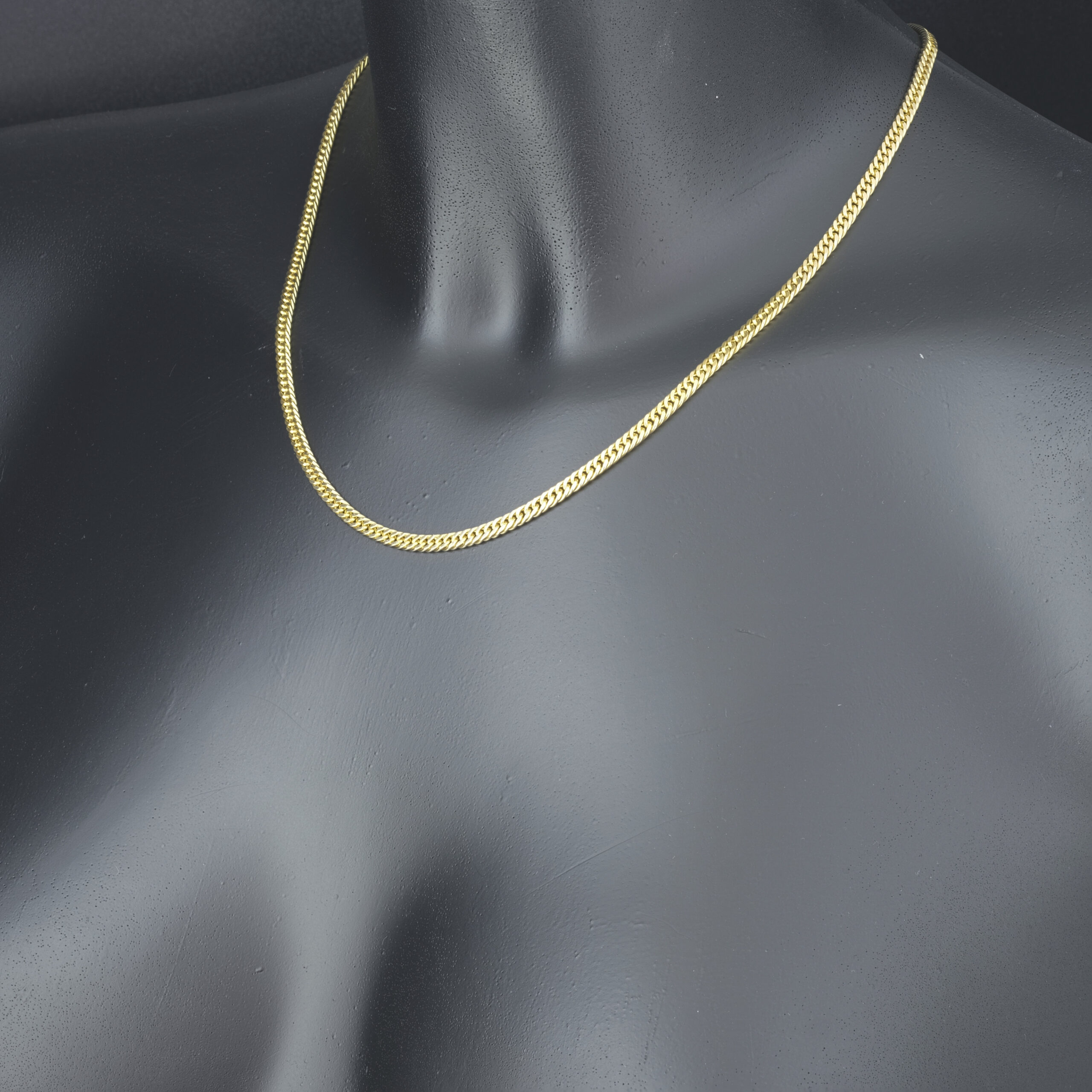 This pre-owned solid gold curb chain is a timeless and versatile piece of jewellery, characterised by its interlocking, uniform links that lie flat against the skin. Known for its durability and sleek design, this curb chain is crafted from 9ct yellow gold, offering a luxurious and polished finish. This curb has a length of 18 inches and a width of 3.5mm. Its classic style makes it a popular choice for both men and women, whether worn as a standalone statement piece or paired with a pendant. This gold curb chain seamlessly blends elegance with everyday wearability, making it a staple accessory for any jewellery collection. This chain fastens with a lobster claw clasp for comfort and security.