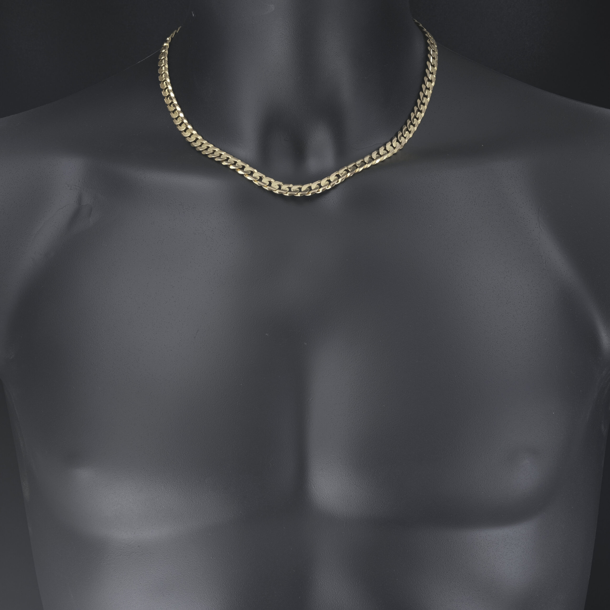 Crafted from 9ct yellow gold, this solid pre-owned curb chain exudes a classic yet contemporary charm. It’s sleek, interlocking design reflects a subtle sophistication, making it a versatile accessory for both everyday wear and special occasions. The sturdy construction ensures durability and lasting quality. Measuring at 18 inches in length and 7.5mm in width, this curb chain fastens with a lobster claw clasp for comfort and security.
