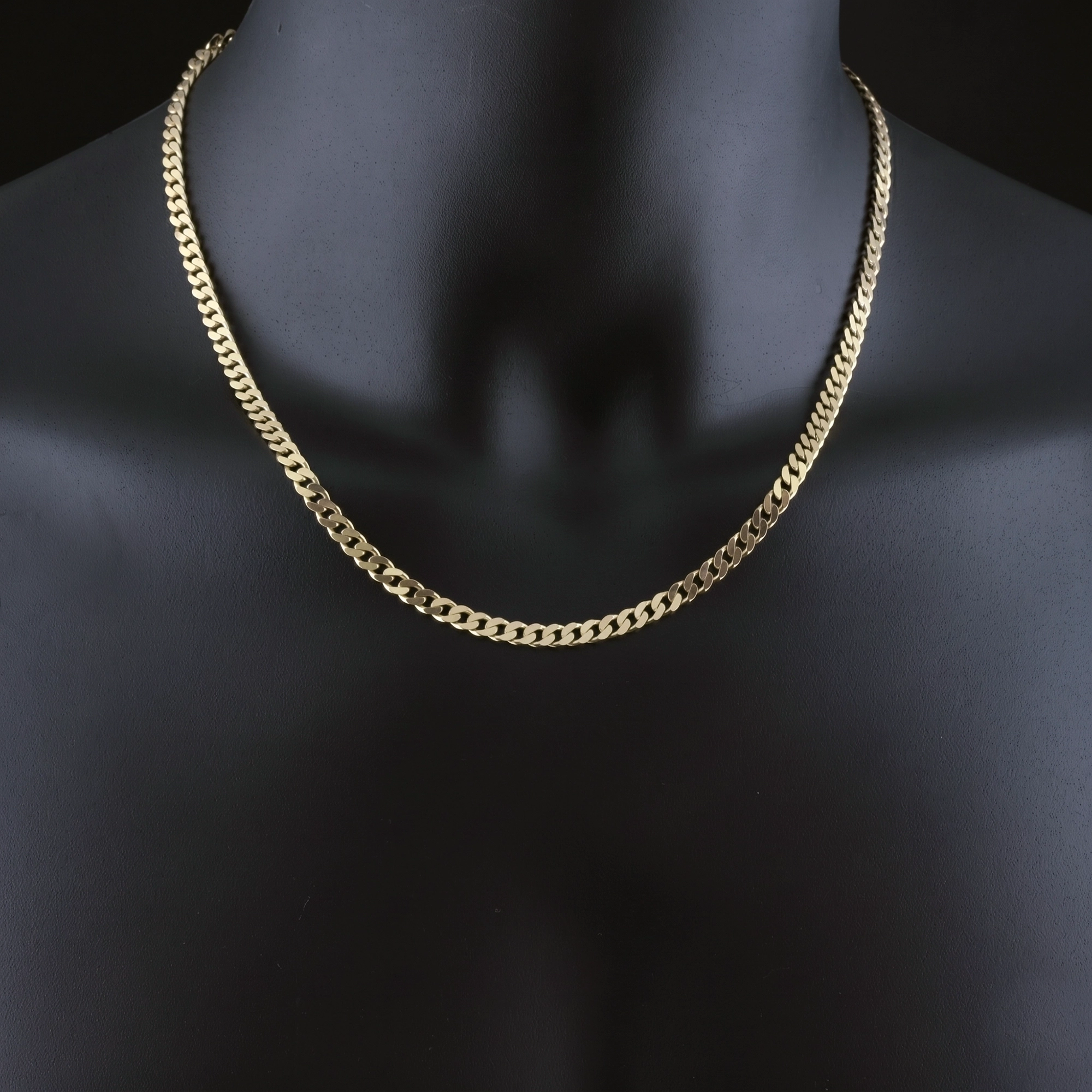 This pre-owned solid gold curb chain is a timeless and versatile piece of jewellery, characterised by its interlocking, uniform links that lie flat against the skin. Known for its durability and sleek design, this curb chain is crafted from 9ct yellow gold, offering a luxurious and polished finish. This curb has a length of 20 inches and a width of 5mm. Its classic style makes it a popular choice for both men and women, whether worn as a standalone statement piece or paired with a pendant. This gold curb chain seamlessly blends elegance with everyday wearability, making it a staple accessory for any jewellery collection. This chain fastens with a lobster claw clasp for comfort and security.