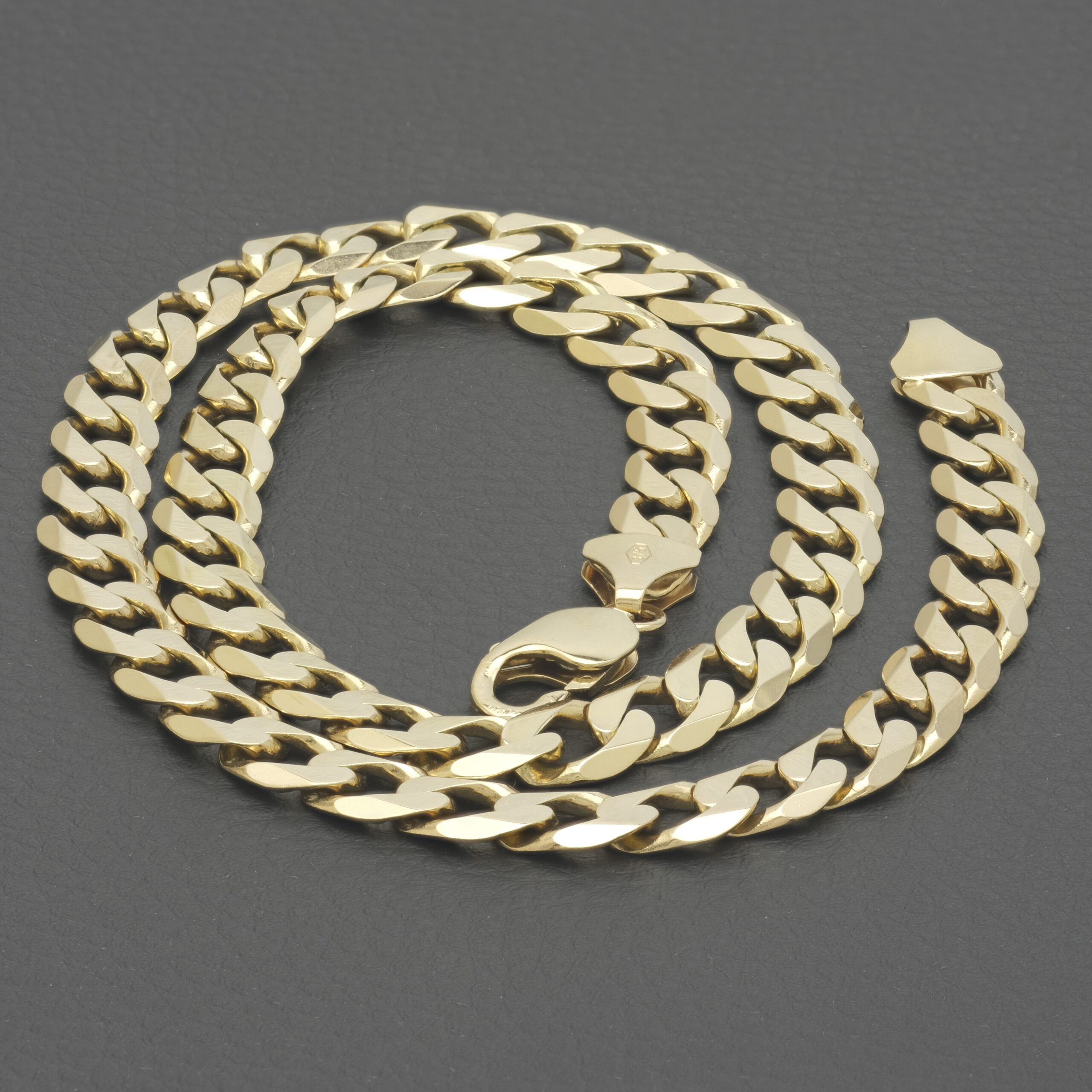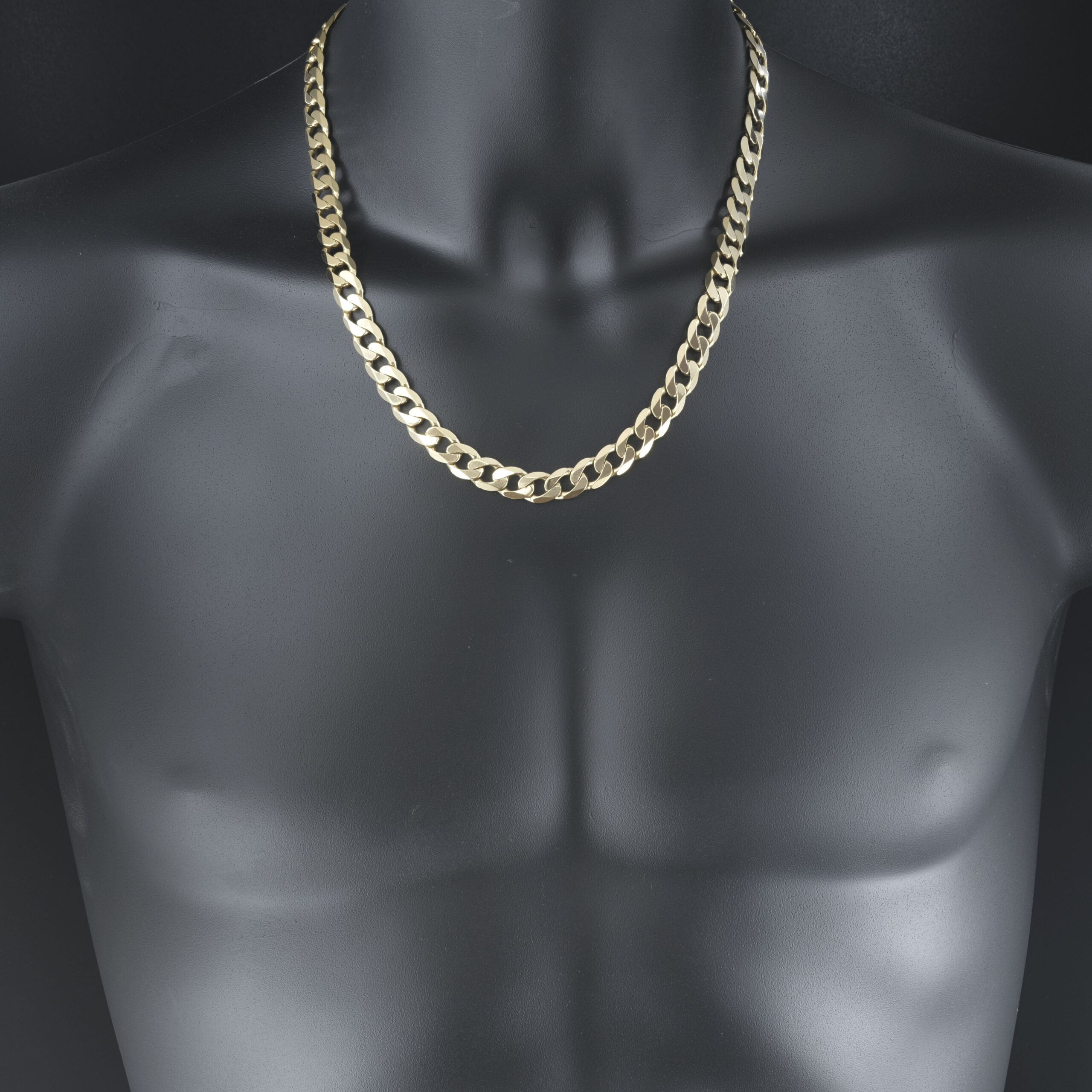 This pre-owned solid gold curb chain is a timeless and versatile piece of jewellery, characterised by its interlocking, uniform links that lie flat against the skin. Known for its durability and sleek design, this curb chain is crafted from 9ct yellow gold, offering a luxurious and polished finish. This curb has a length of 22 inches and a width of 9.5mm. Its classic style makes it a popular choice for both men and women, whether worn as a standalone statement piece or paired with a pendant. This gold curb chain seamlessly blends elegance with everyday wearability, making it a staple accessory for any jewellery collection. This chain fastens with a lobster claw clasp for comfort and security.