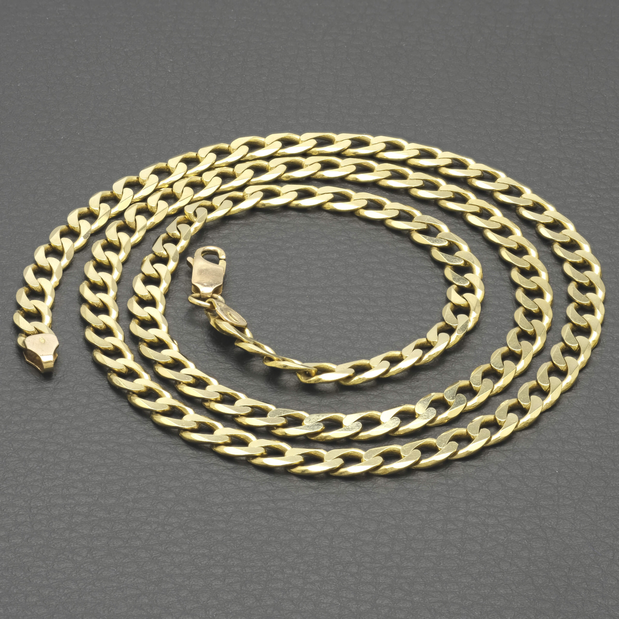 This pre-owned solid gold curb chain is a timeless and versatile piece of jewellery, characterised by its interlocking, uniform links that lie flat against the skin. Known for its durability and sleek design, this curb chain is crafted from 9ct yellow gold, offering a luxurious and polished finish. This curb has a length of 26.5 inches and a width of 6.5mm. Its classic style makes it a popular choice, whether worn as a standalone statement piece or paired with a pendant. This gold curb chain seamlessly blends elegance with everyday wearability, making it a staple accessory for any jewellery collection. This chain fastens with a lobster claw clasp for comfort and security.