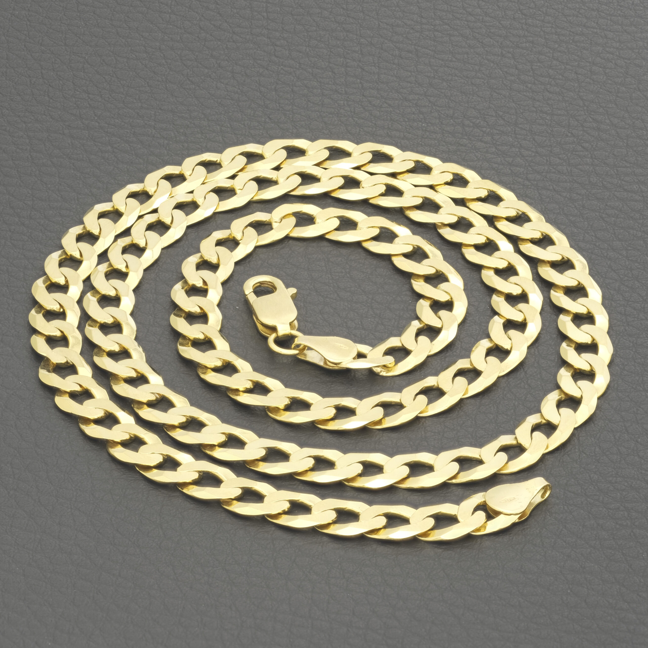 Crafted from 9ct yellow gold, this solid pre-owned curb chain exudes a classic yet contemporary charm. It’s sleek, interlocking design reflects a subtle sophistication, making it a versatile accessory for both everyday wear and special occasions. The warm, lustrous glow of the 9ct yellow gold enhances its timeless appeal, while the sturdy construction ensures durability and lasting quality. Measuring at 26 inches in length and 8mm in width, this curb chain fastens with a lobster claw clasp for comfort and security.
