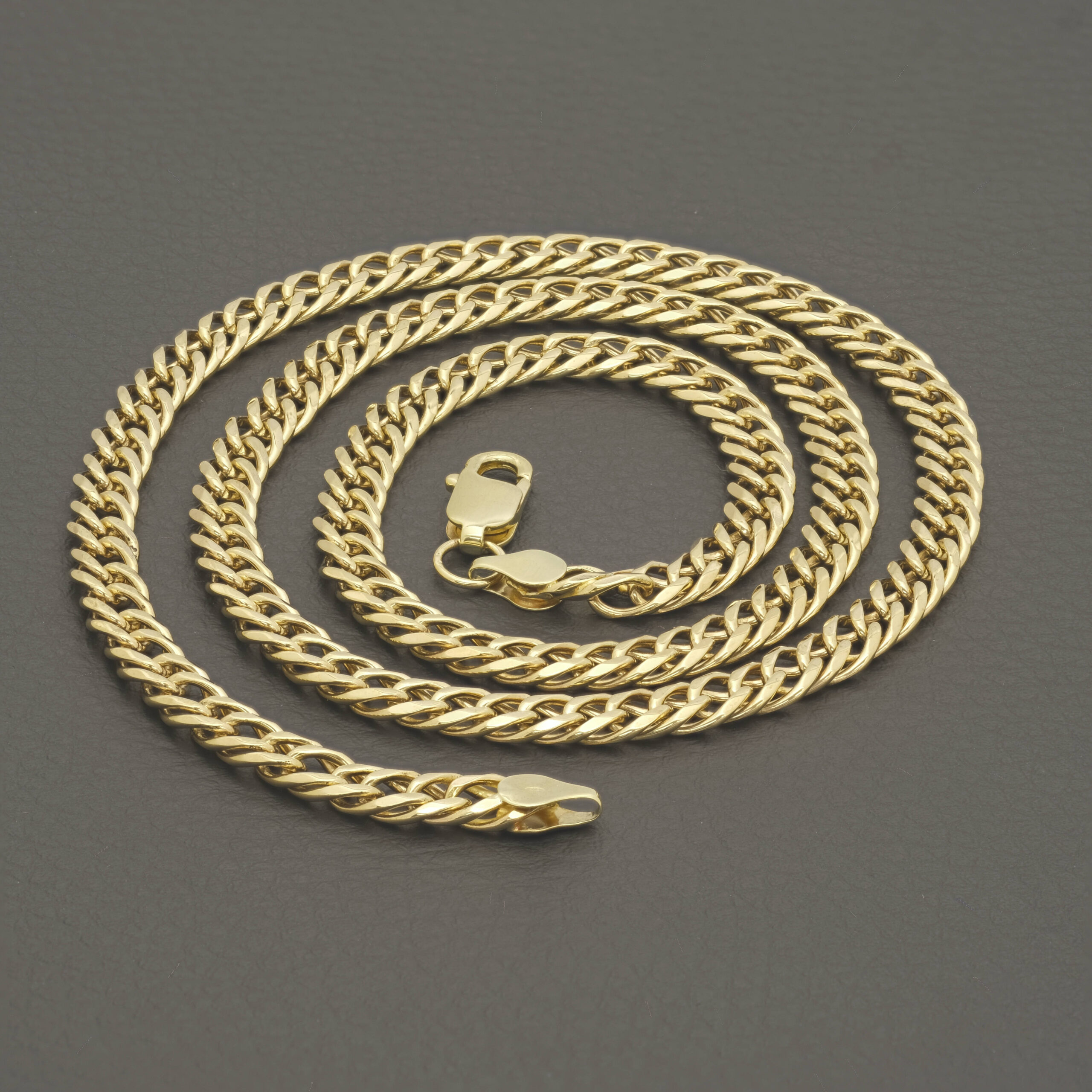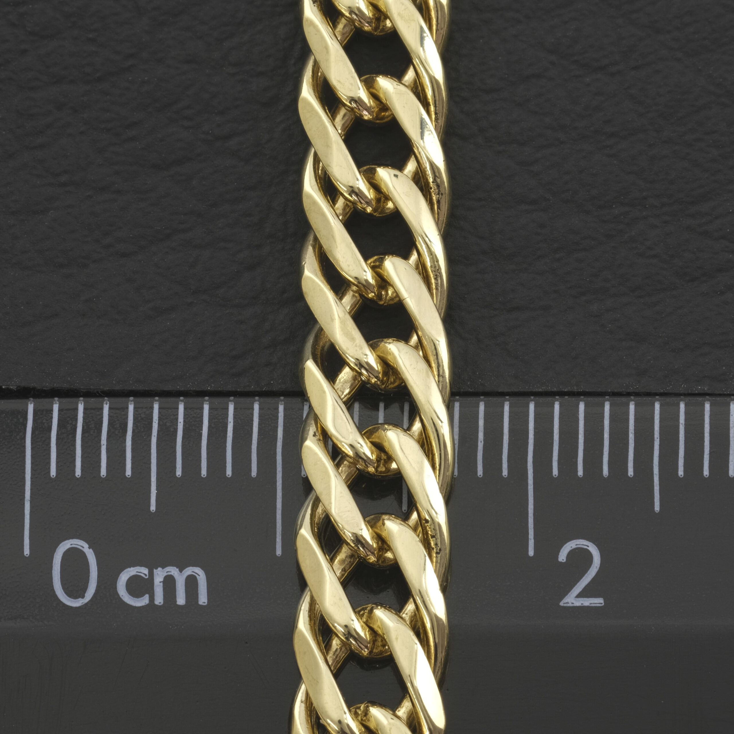 Crafted from 9ct yellow gold, this solid pre-owned double curb chain exudes a classic yet contemporary charm. It’s sleek, interlocking design reflects a subtle sophistication, making it a versatile accessory for both everyday wear and special occasions. The sturdy construction ensures durability and lasting quality. Measuring at 24 inches in length and 6.5mm in width, this double curb chain fasten with a lobster claw clasp for comfort and security.
