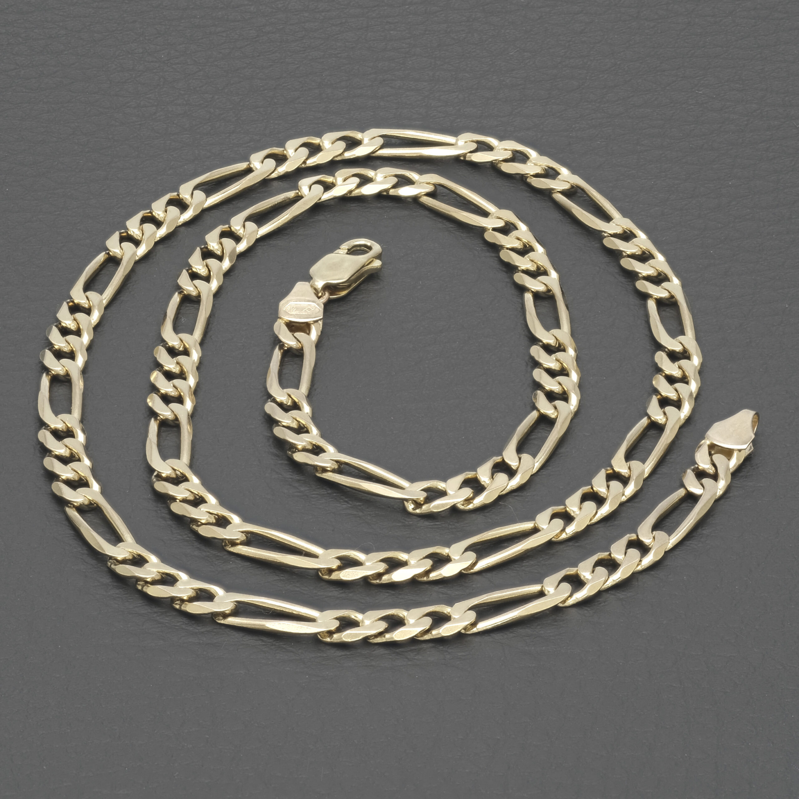 This solid pre-owned figaro chain is crafted from 9ct yellow gold, suitable for occasional or everyday wear. It measures 5mm in width and 20 inches in length, making it a perfect accessory for any occasion. This chain is beautifully polished and fastens with a lobster claw clasp for secure and comfortable wear.