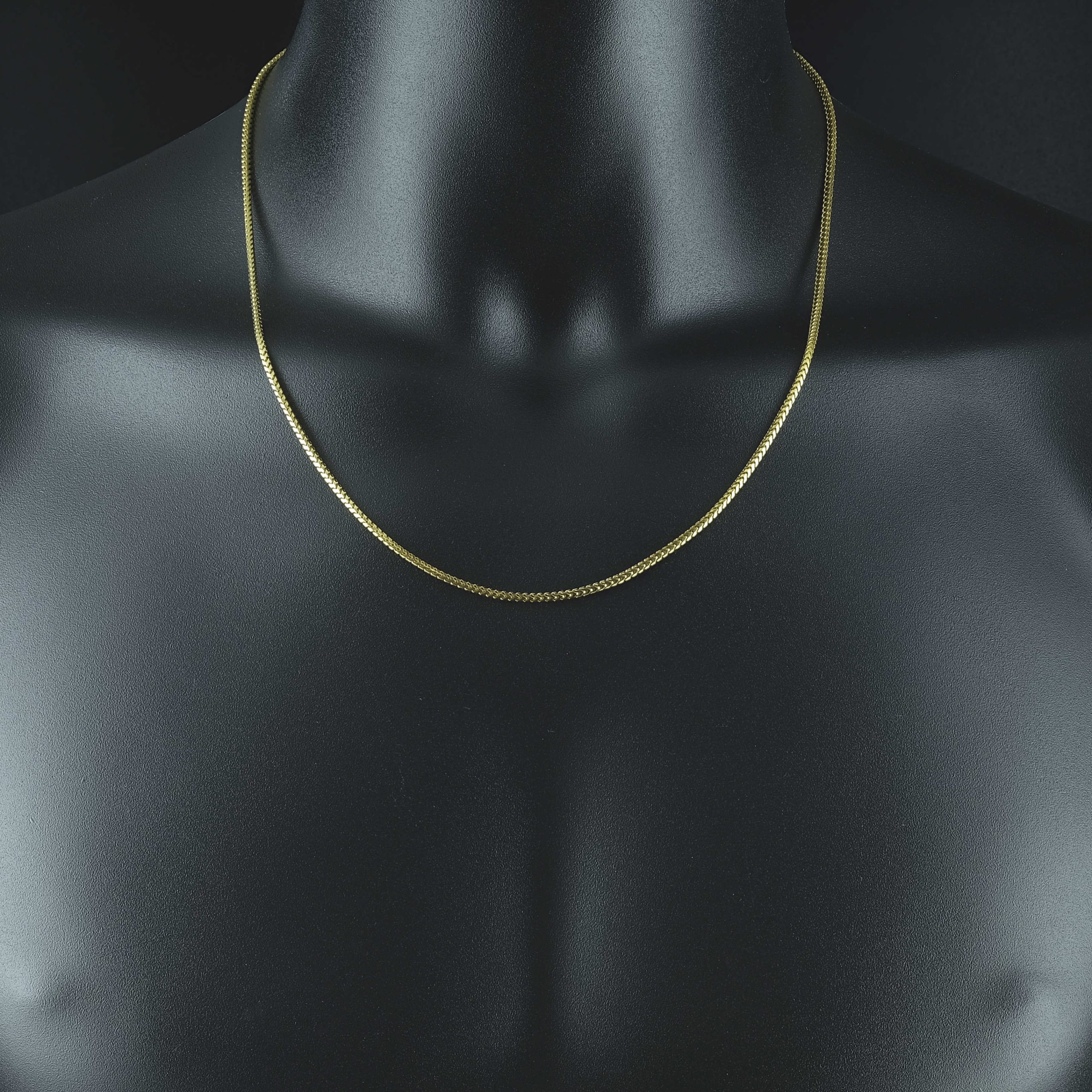 This pre-owned franco chain is made from 18ct yellow gold and has a highly polished finish guaranteed to catch the eye. This franco chain is strong enough for everyday wear. Being 21.5inch long and 2mm wide makes it perfect for stand-alone wear or to hang a pendant. This franco chain fastens with a bolt ring clasp for secure and comfortable wear.