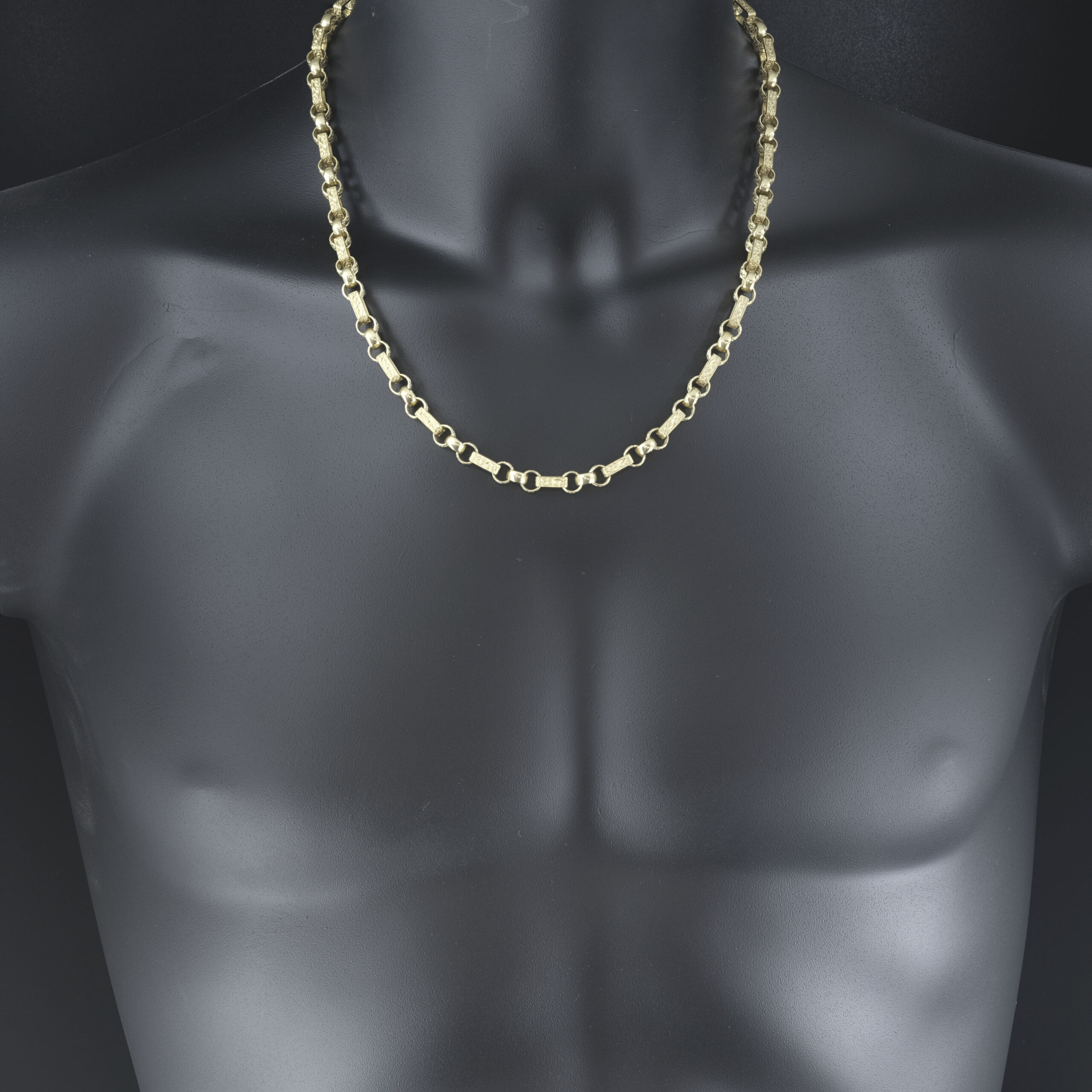 A change from the standard belcher, the gypsy link is a fantastic design. Made from solid 9ct yellow gold, This brand-new gypsy link chain is perfect for occasional and everyday wear. This chain measures 22 inches in length and 7mm in width, featuring patterned and plain alternating links. This beautifully polished chain securely fastens with an Albert clasp for comfortable wear.