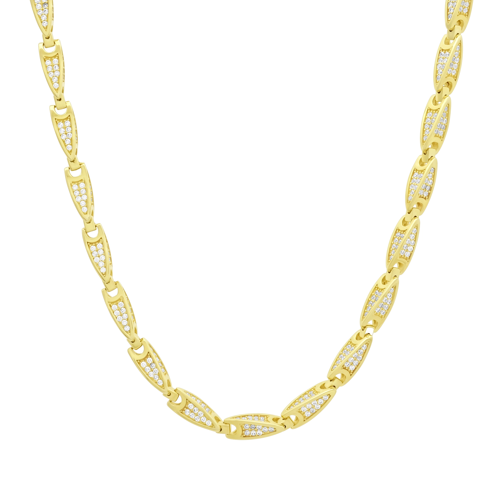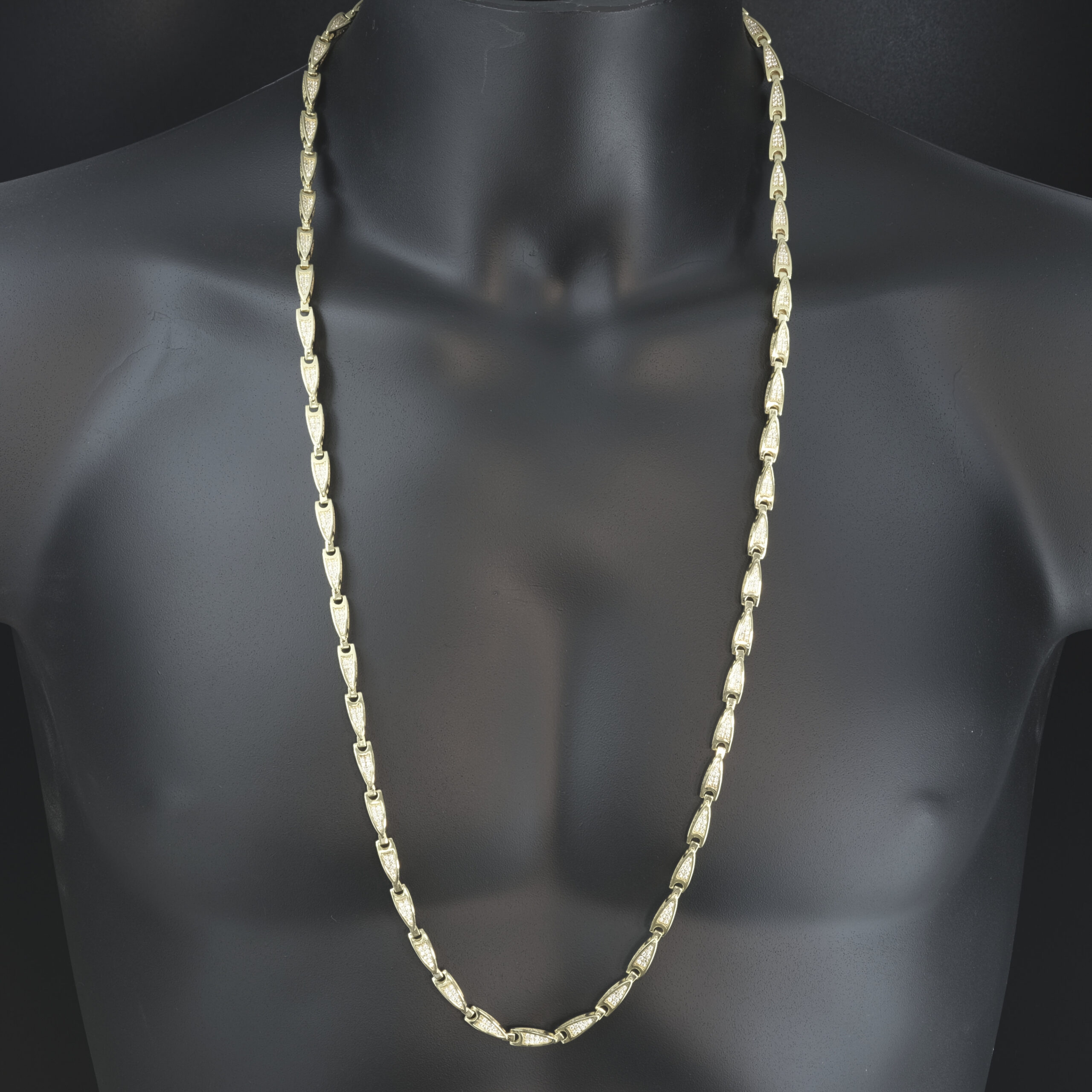 A pre-owned gemstone fancy link chain crafted from 9ct yellow gold that is perfect for occasional or everyday wear. This stylish chain measures 33.5 inches in length and 10mm in width with gemstone links running the length of the chain, fastens with a lobster claw clasp for comfortable wear. This chain has a highly polished finish guaranteed to catch the eye.