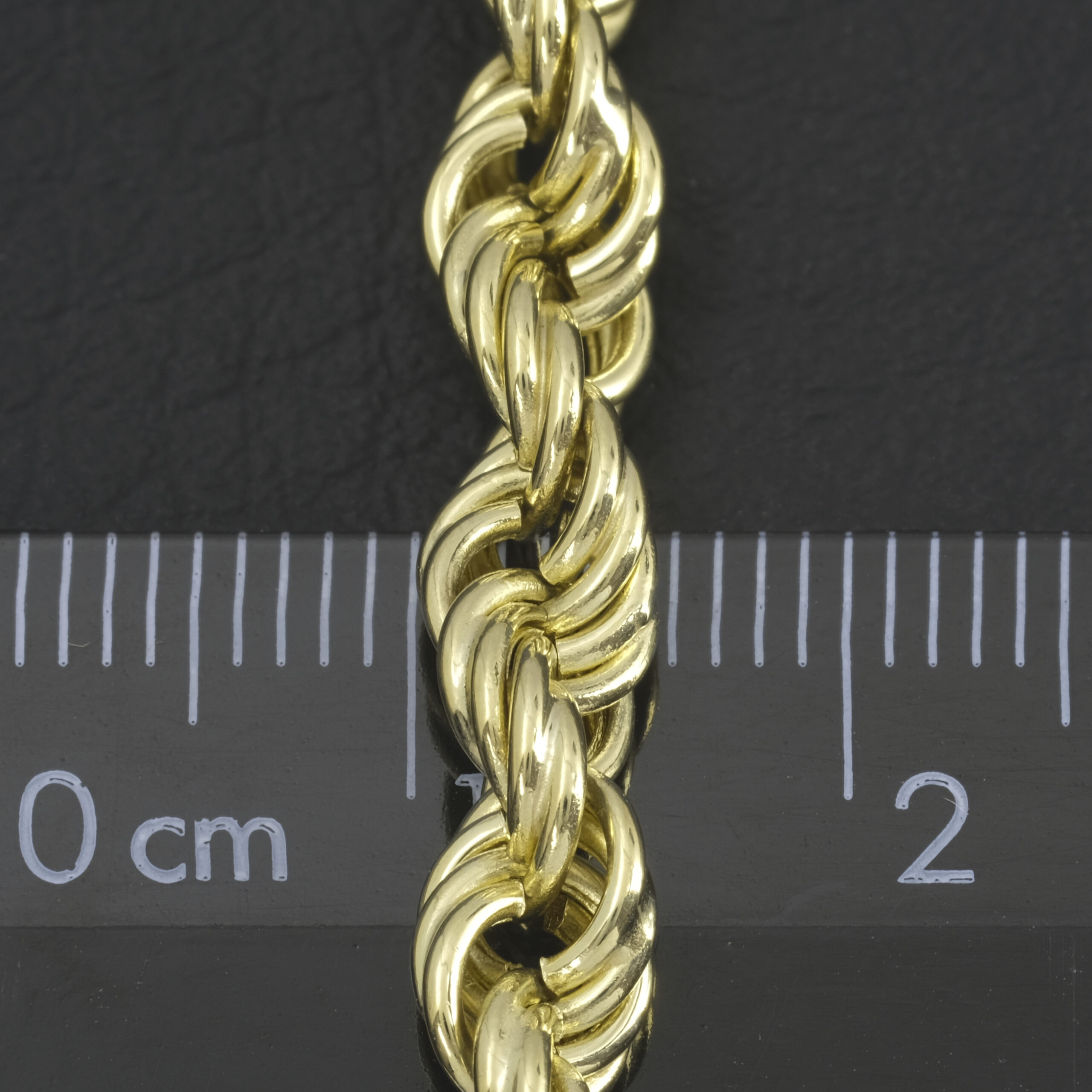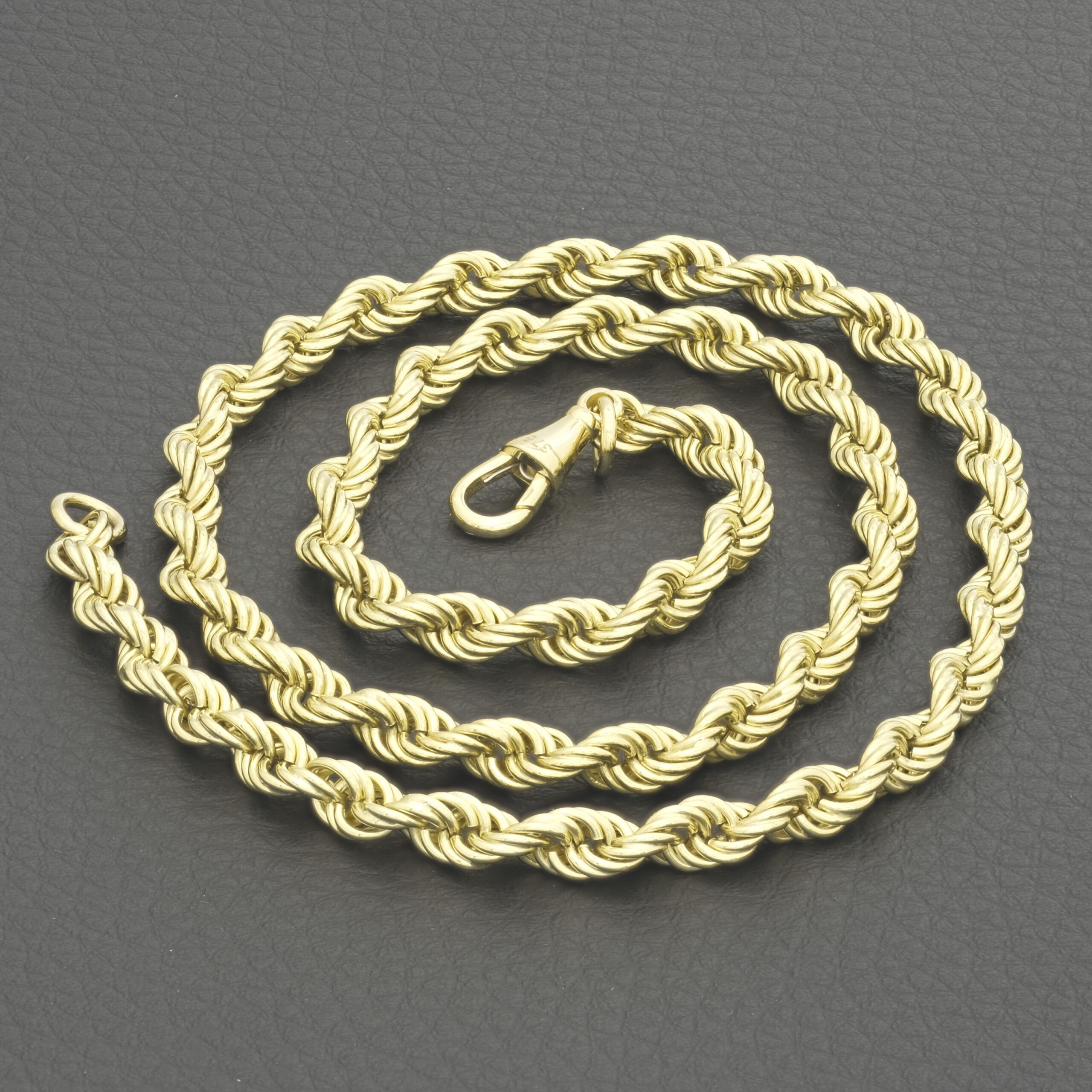 This stylish, pre-owned hollow rope chain is made from 9ct yellow gold and is perfect for occasional or everyday wear. Measuring 5.5mm in width and 20 inches in length, this chain makes a great accessory for any outfit. This beautiful chain has a highly polished finish, securely fastening with an Albert clasp for comfortable wear.