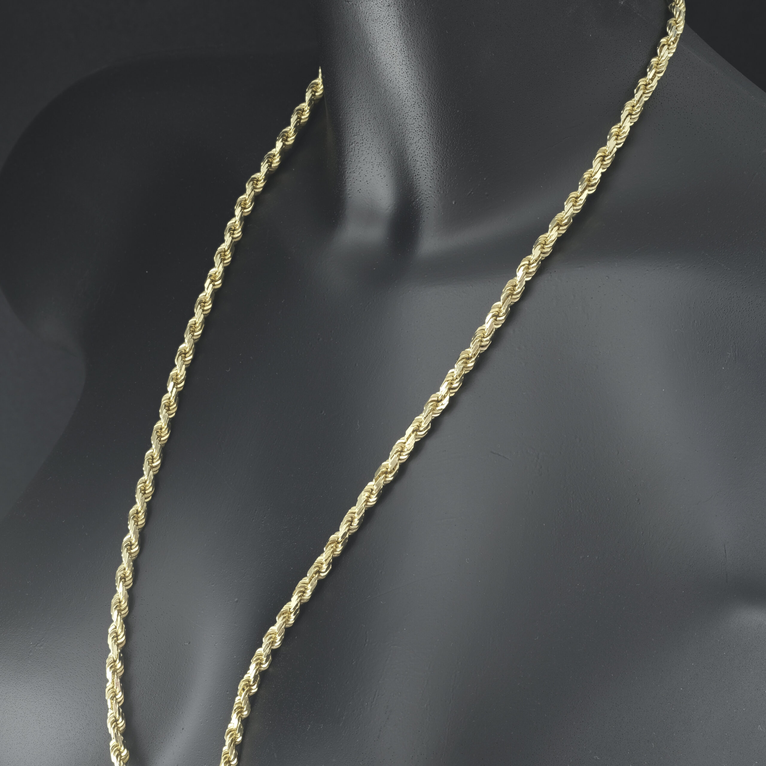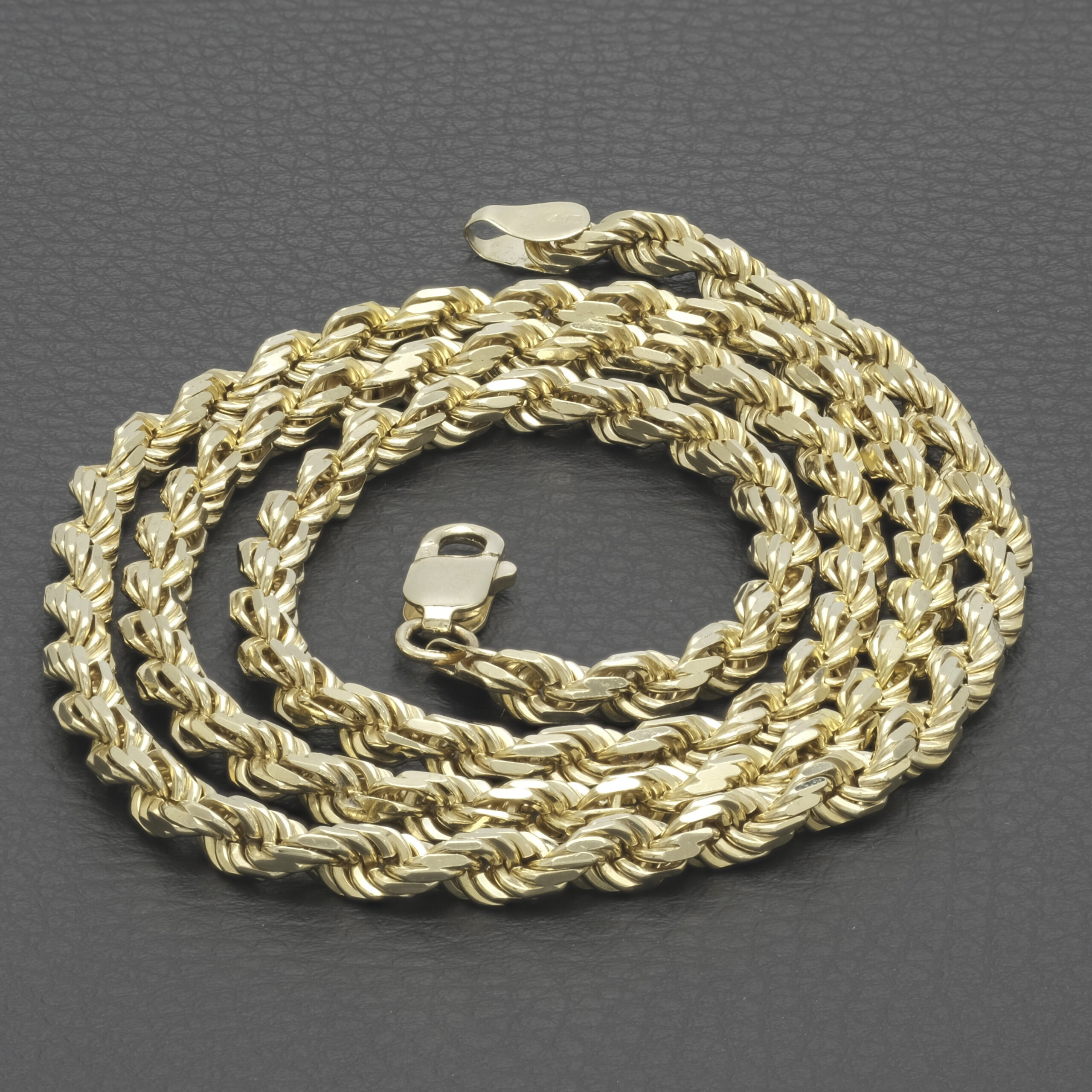 This stylish, pre owned solid rope chain is made from 9ct yellow gold and is perfect for occasional or everyday wear. Measuring 5.5mm in width and 28 inches in length, this chain makes a great accessory for any outfit. This beautiful chain has a highly polished finish, securely fastening with a lobster claw for comfortable wear and security.