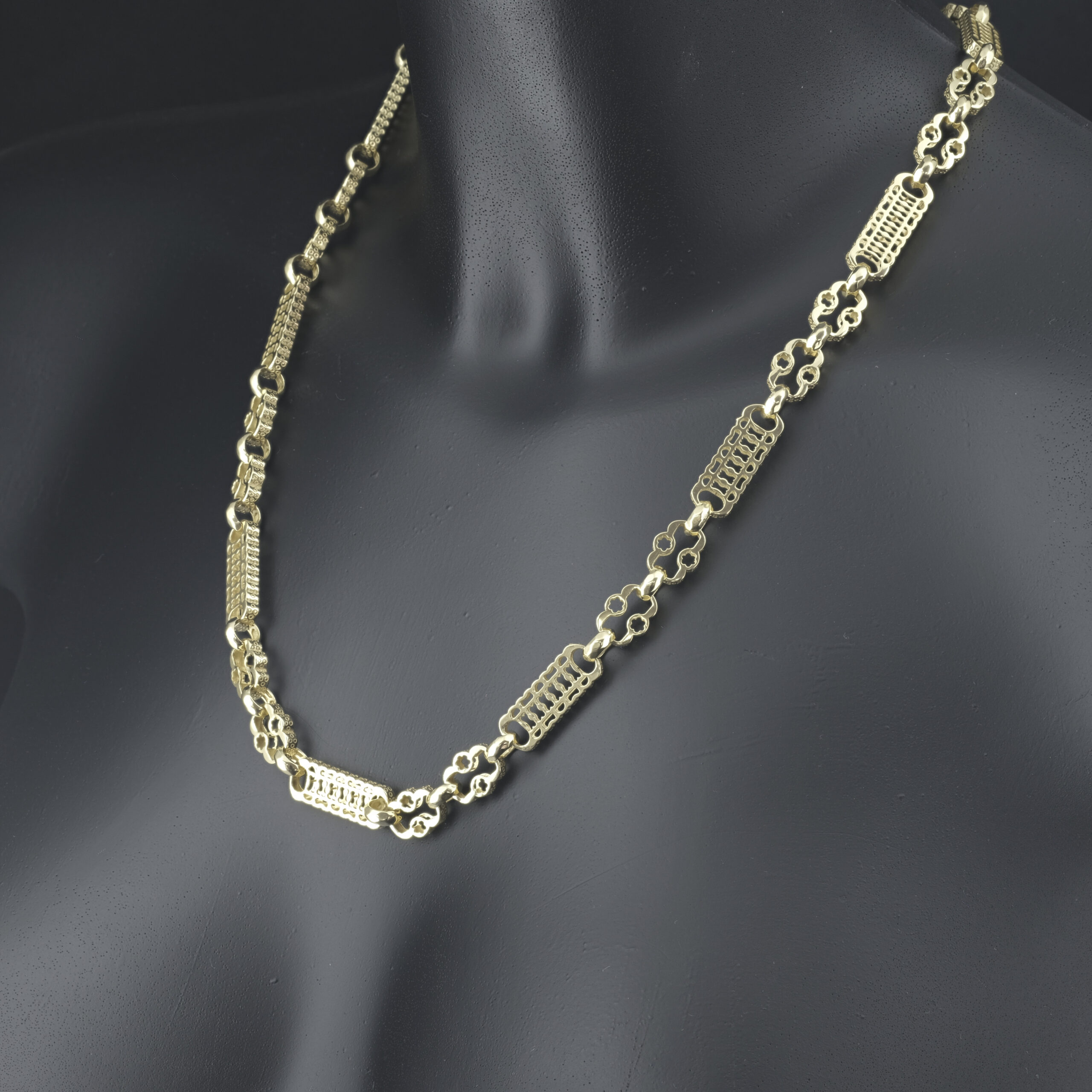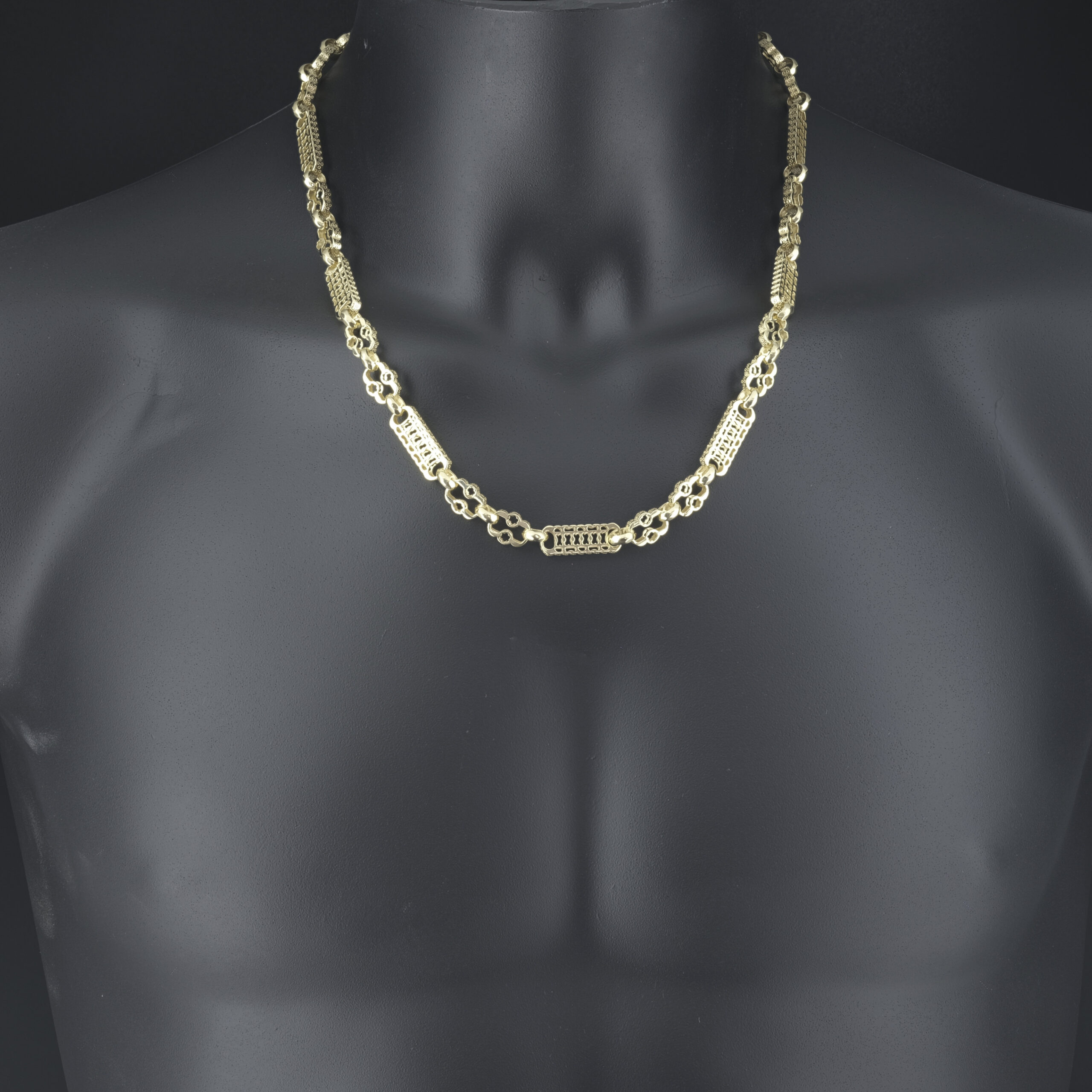 A pre owned, 9ct yellow gold stars & bars chain that is perfect for occasional or everyday wear. This chain measures 22 inches in length and 9.5mm in width, fastening with an Albert clasp for secure, comfortable wear.