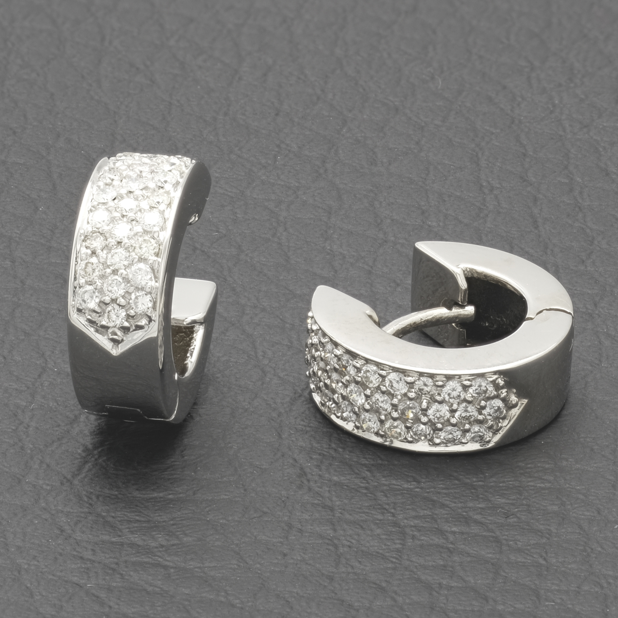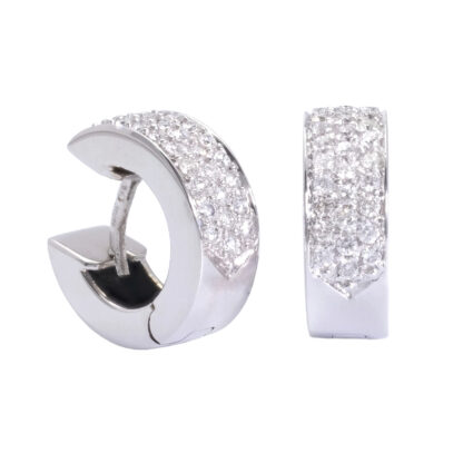 This exquisite pair of pre-owned earrings are crafted from 14ct white gold, exuding timeless elegance and sophistication. Each earring features stunning cluster, weighing a total of 0.60ct, with a colour of G-H and a clarity of VS1-VS2. These hoop earrings offer both comfort and peace of mind, ensuring they stay in place throughout the day or evening. Perfect for adding a touch of luxury to your jewellery collection, these earrings are a testament to refined craftsmanship and enduring style.
