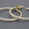 A stunning pre-owned modern pair of 14ct yellow gold hoop earrings, these exquisite pieces are set with a total of 0.70ct of dazzling diamonds. The diamonds boast a remarkable G-H colour grade and impressive clarity, ensuring they radiate a brilliant sparkle with every movement. Designed for both elegance and practicality, these earrings feature secure fancy push-on backs, providing comfort and peace of mind during wear. Their timeless design and exceptional craftsmanship make them a perfect choice for any occasion, effortlessly combining sophistication with contemporary style.